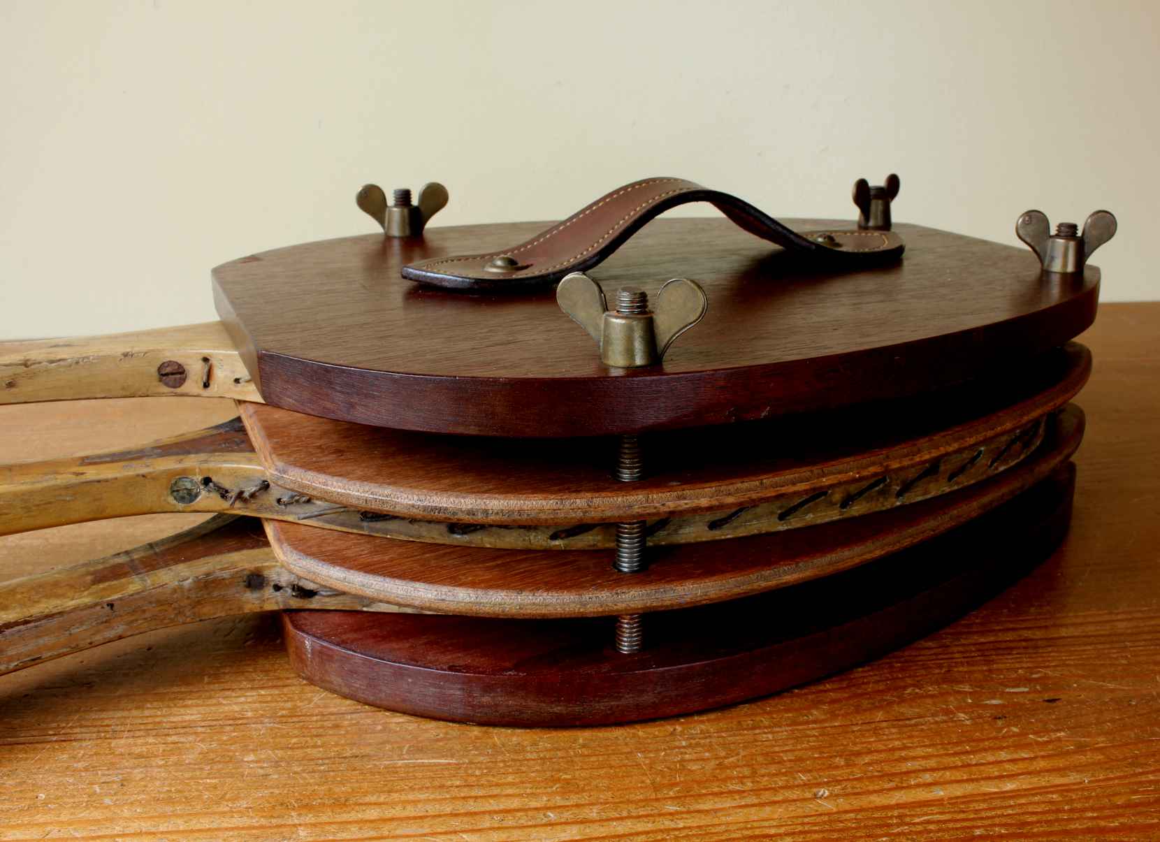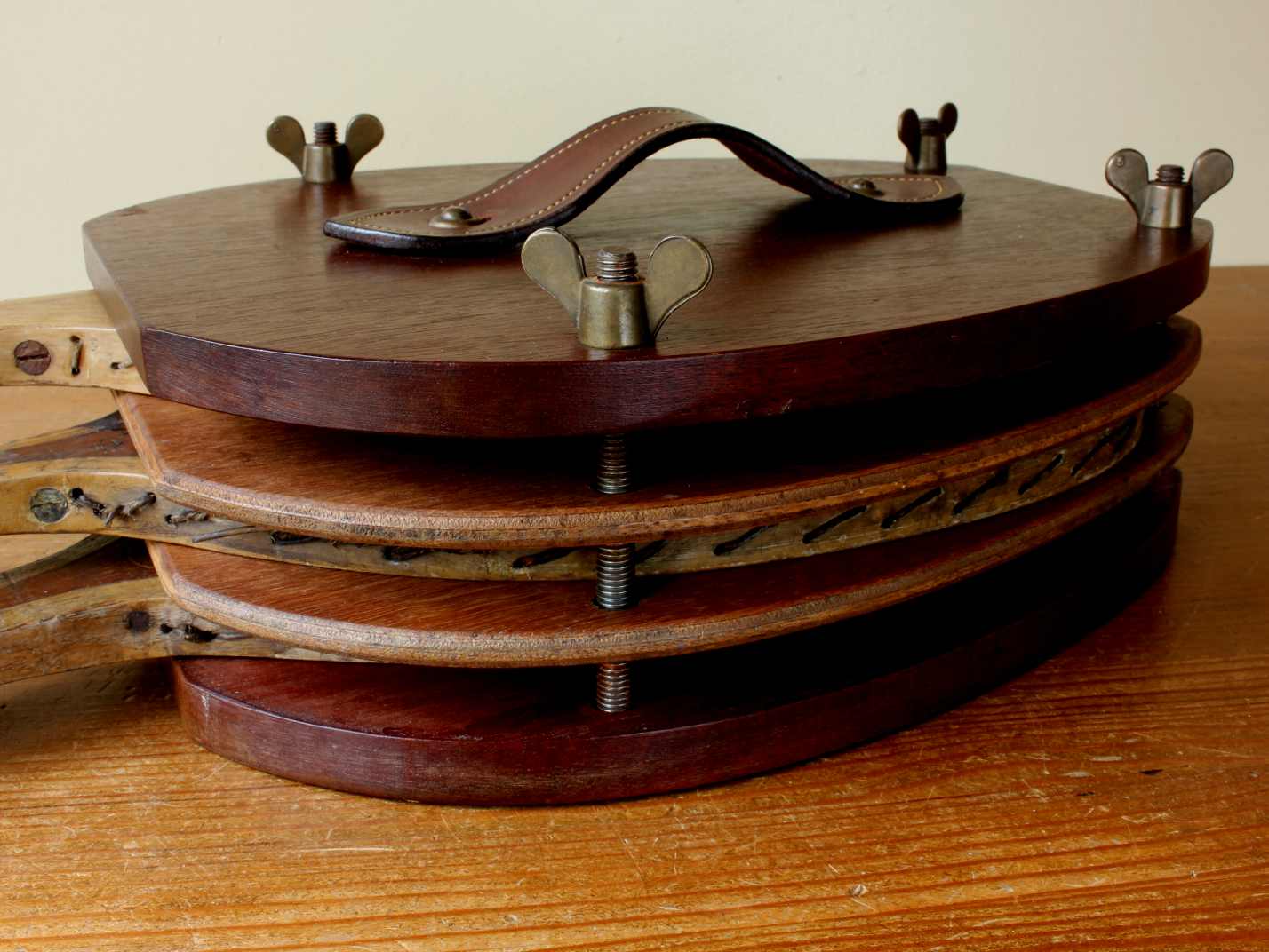 Condition: Excellent antique / vintage condition with light age related wear, scratches and marks. Brass and metal parts have some tarnish and wear. Butterfly nuts work as they should. No bad splits or breaks. Please see pictures.