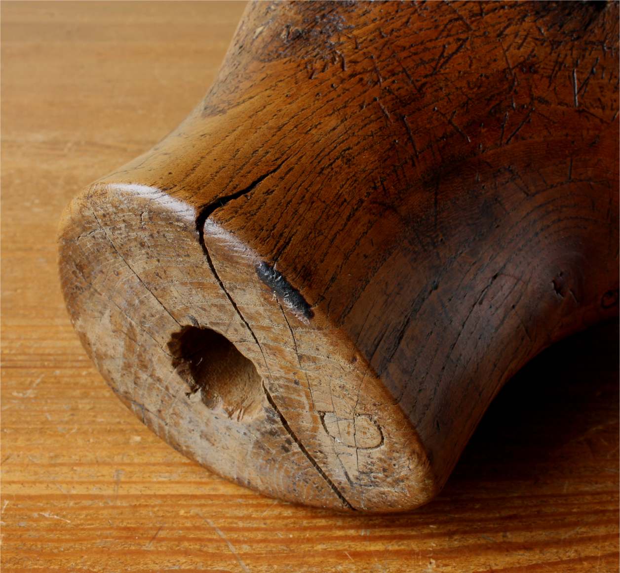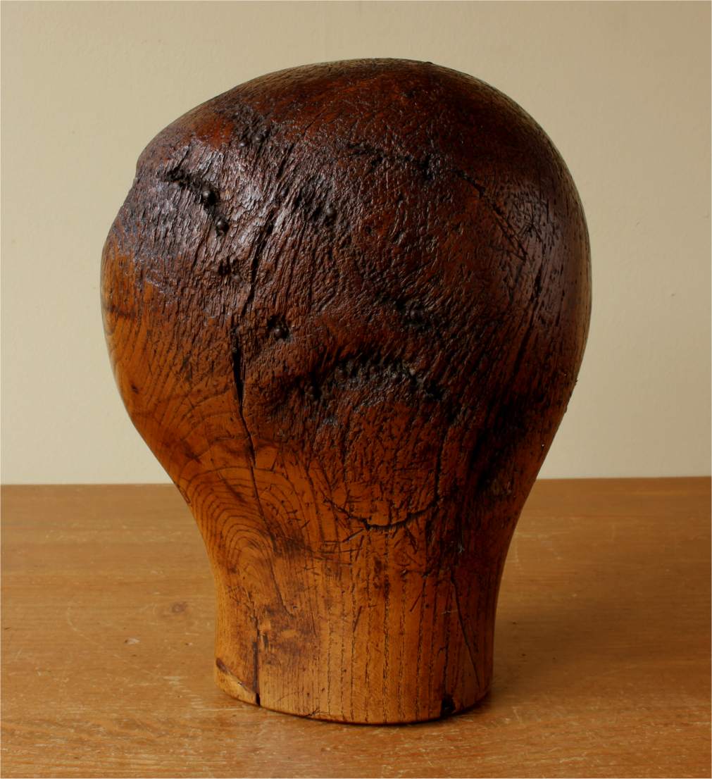 This milliner's wooden hat block is marked to the front with the number 56 and would have originally been used to make and shape hats or wigs. It still has lots of pins in the wood where they would have secured the headpieces. Today this would make a wonderful decorative display piece.
