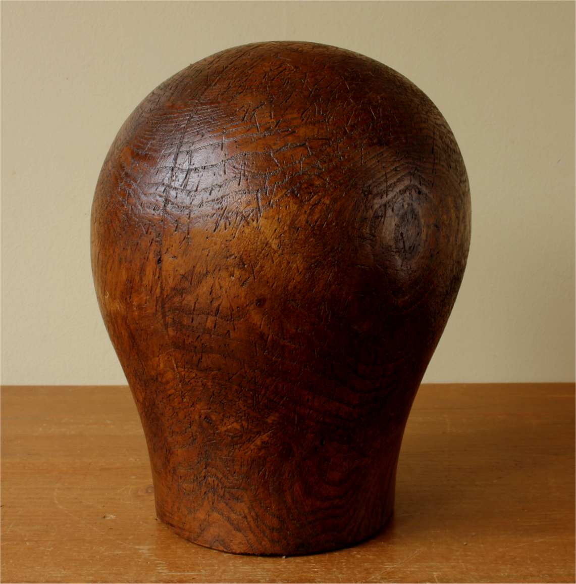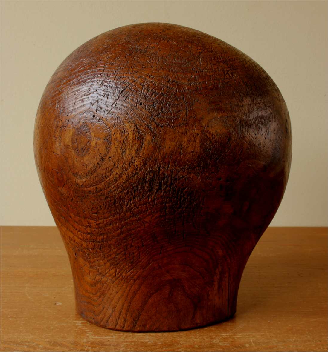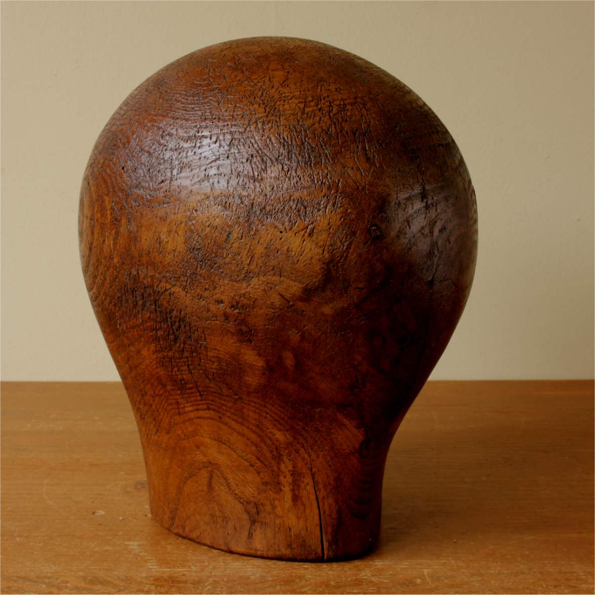 This milliner's wooden hat block which is a large size is marked to the front with the number 62 and would have originally been used to make and shape hats or wigs.