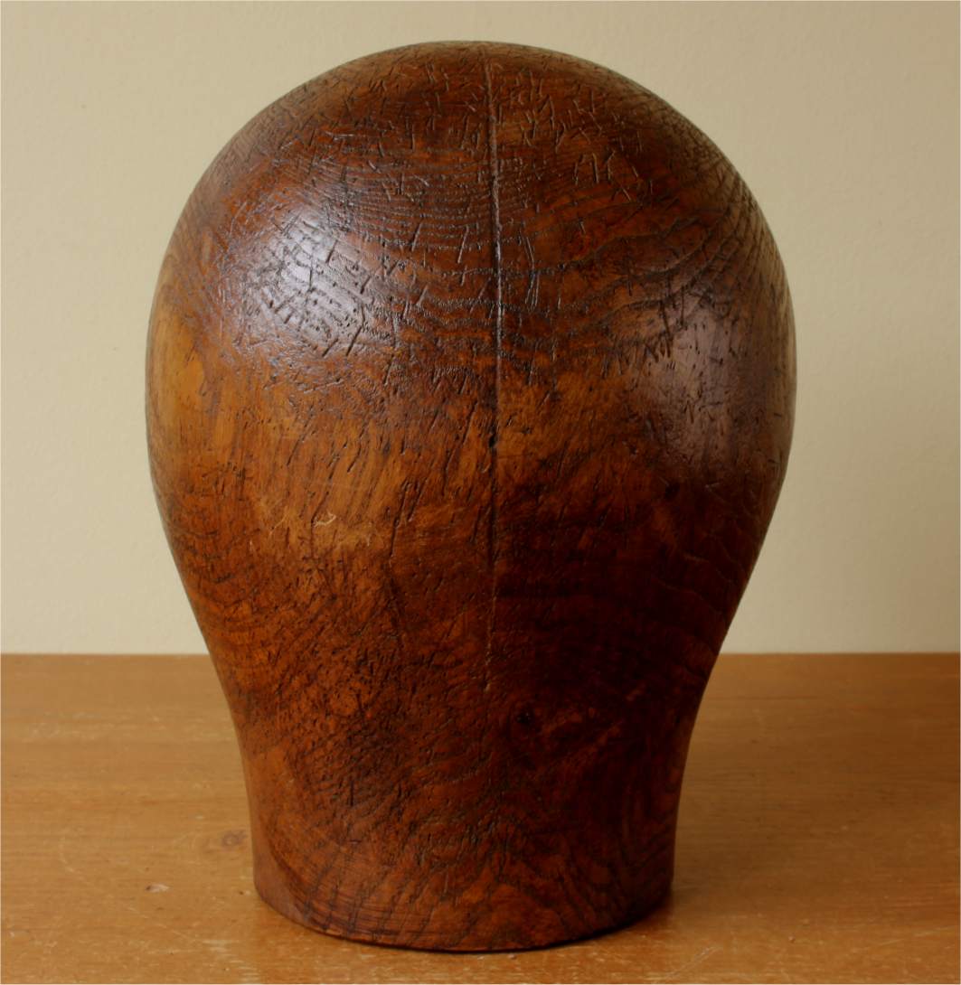 This antique wooden head shaped hat / wig block which is a wonderful dark brown colour has accumulated lots of wear over the years giving it a stunning patina.