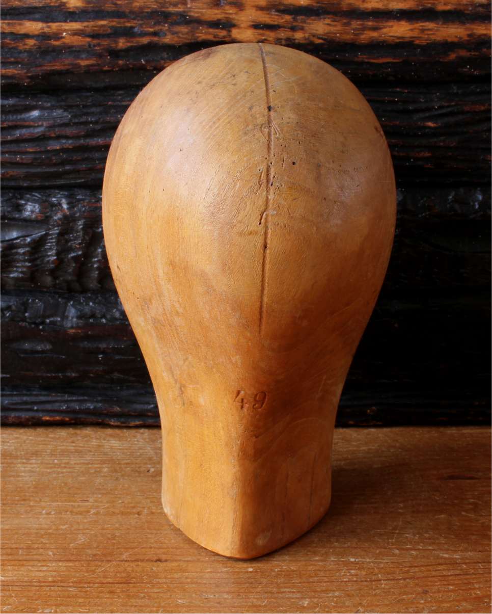 This handsome head shaped wooden block is light brown, is embossed to the front and base with the size of 49 and has a wonderful look.