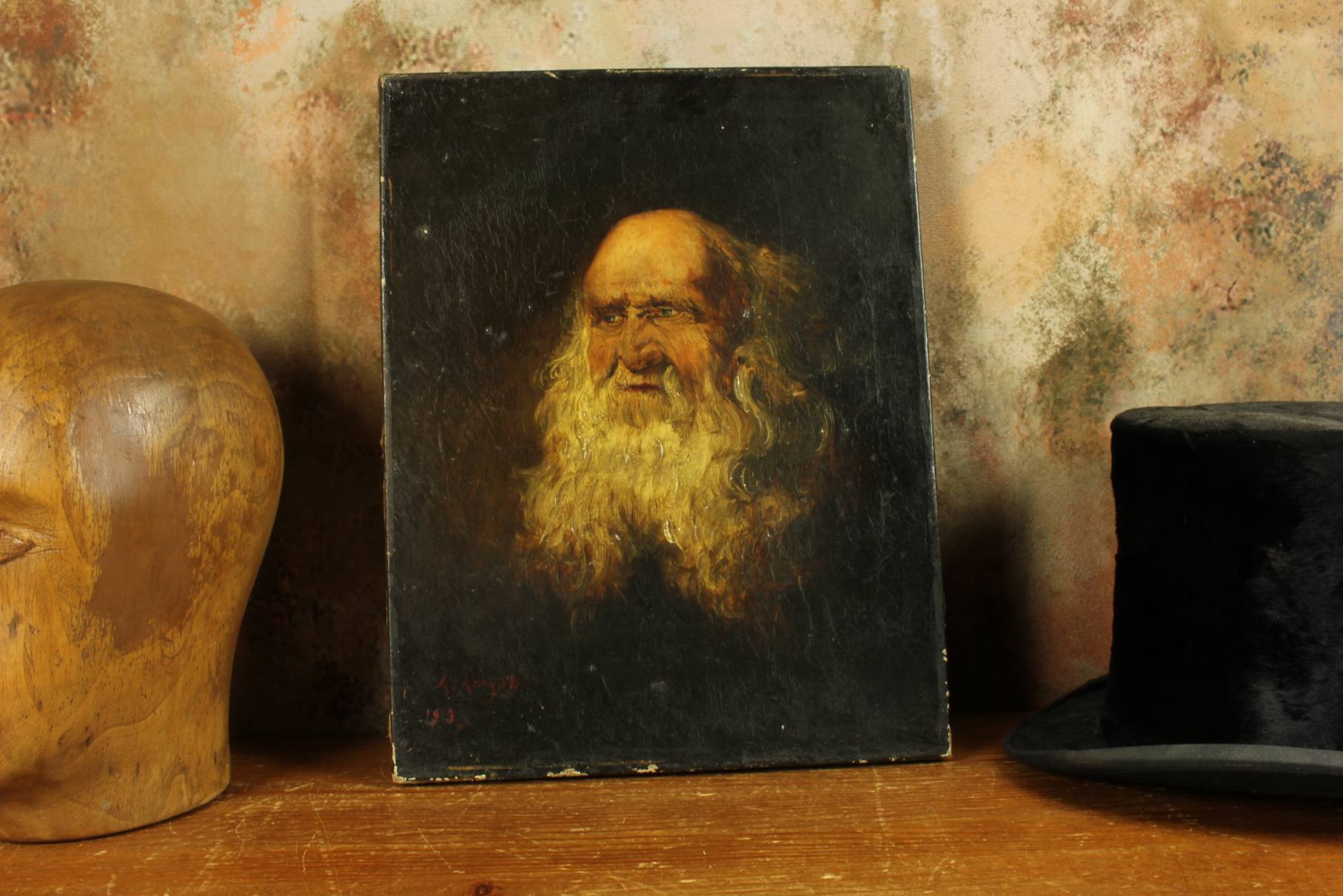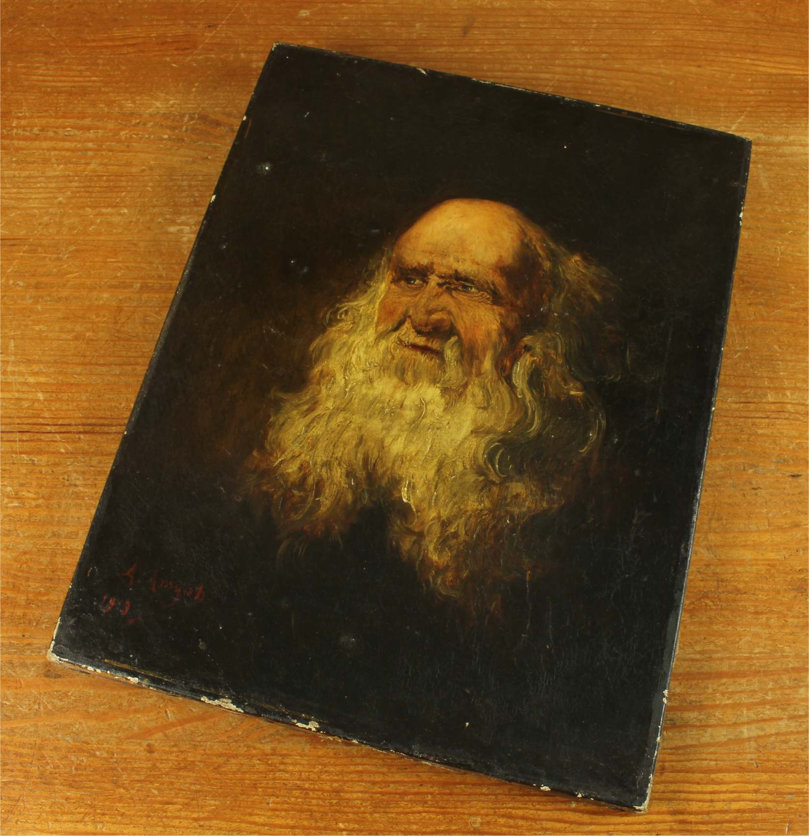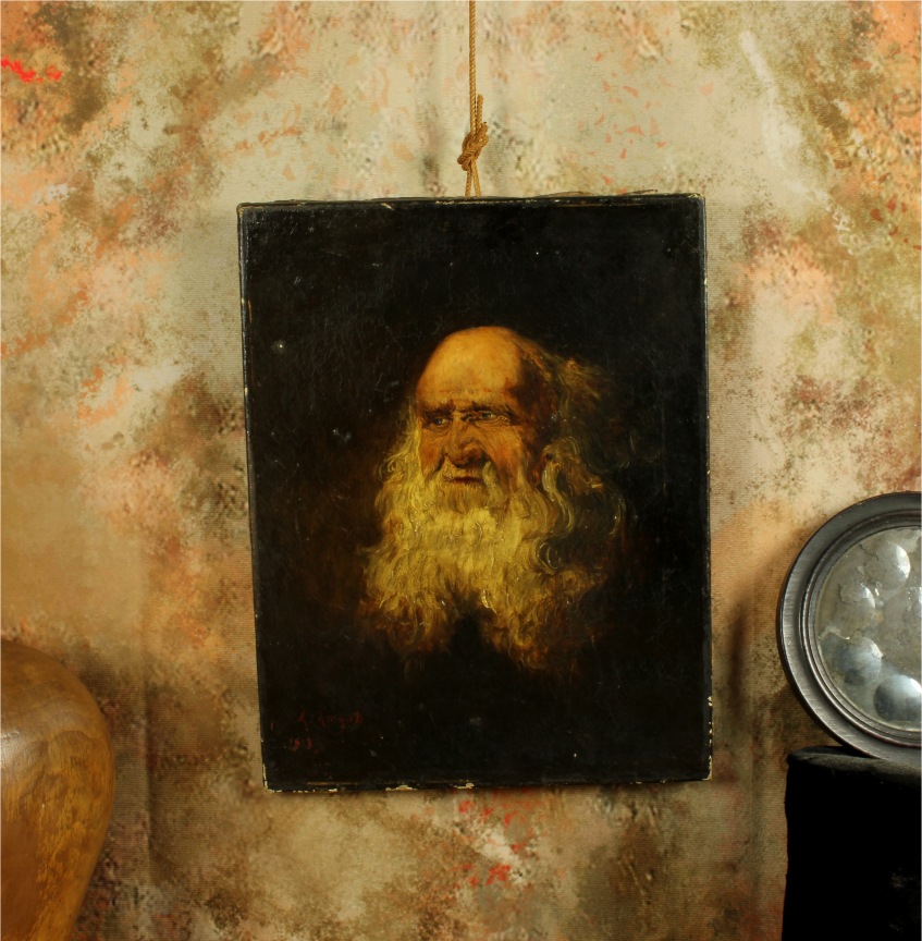 This handsome early 20th century head and shoulders portrait of an elderly man with a prominent white beard is signed A Amyot, dated for 1913 and is a good decorative size at 35 cm high.