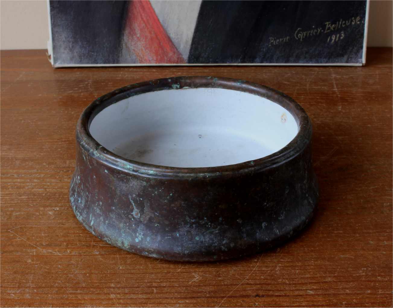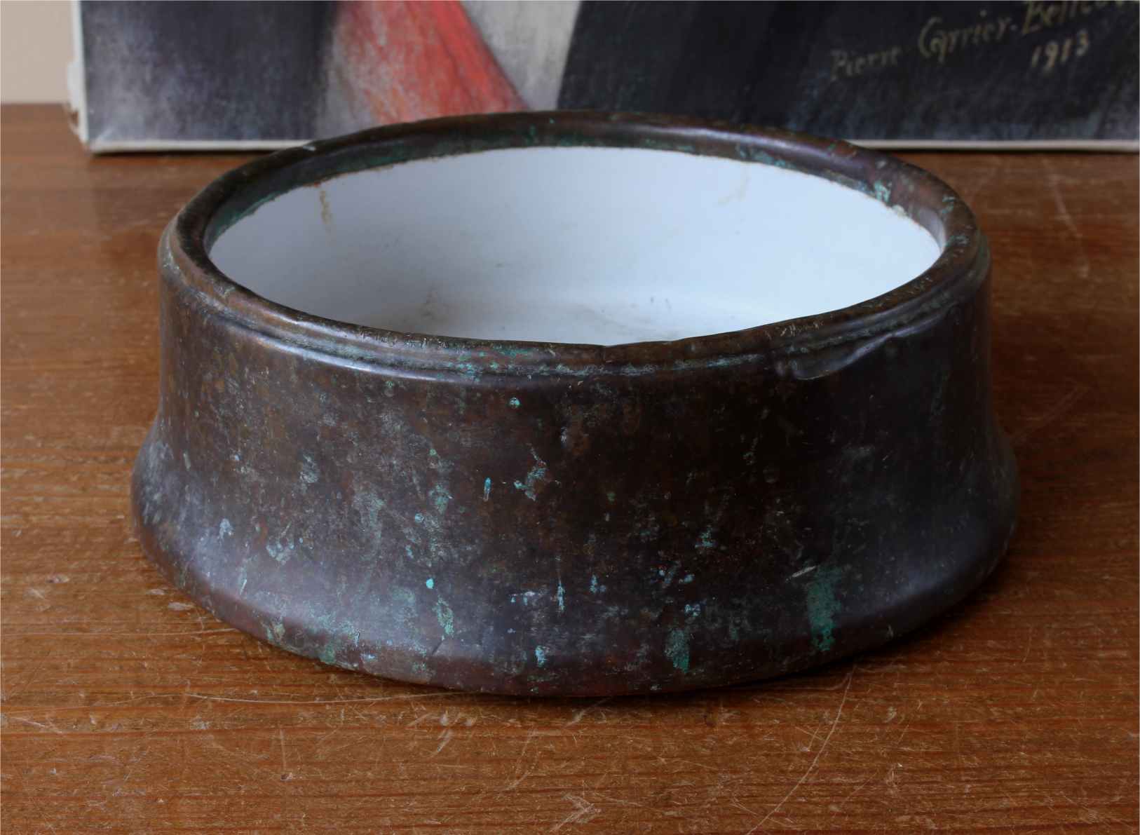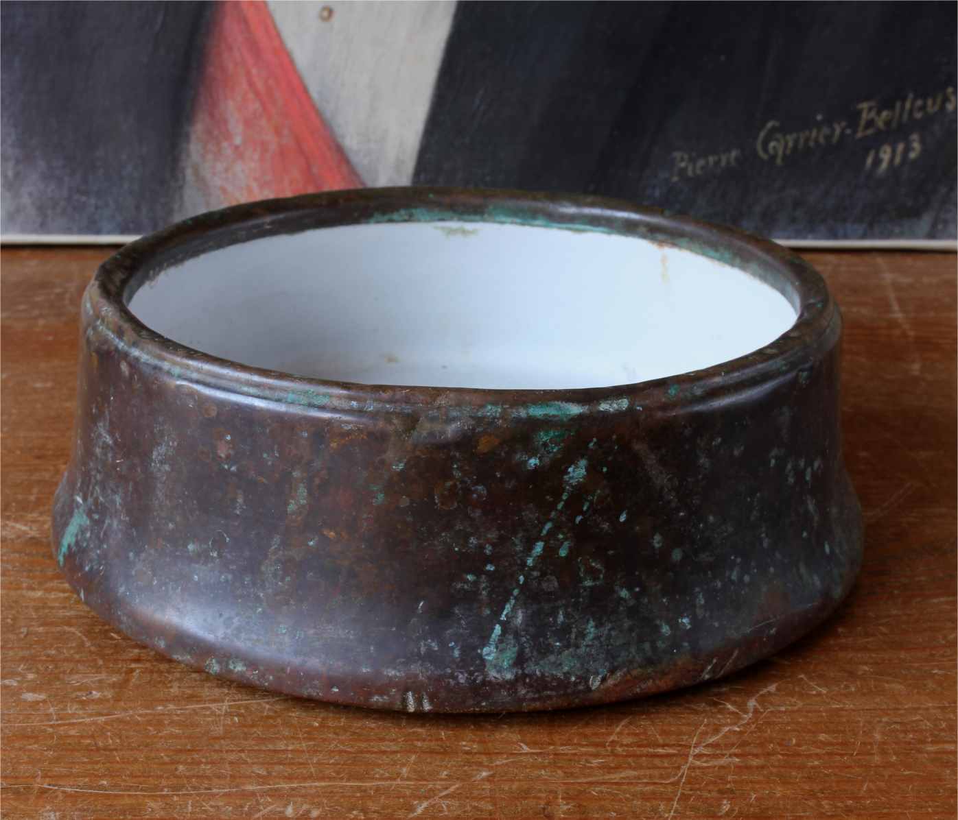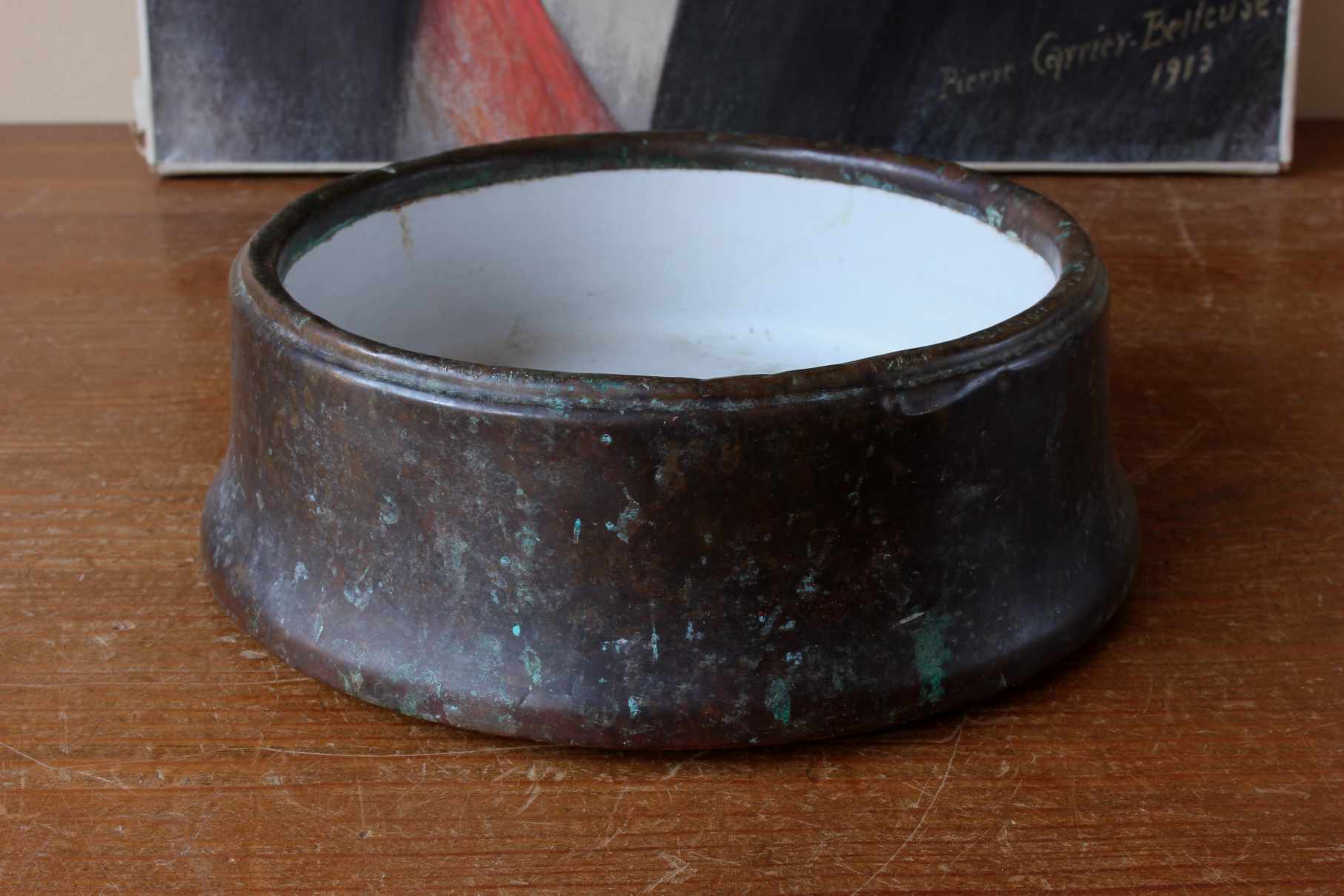 This handsome Victorian dog bowl which is made of copper dates from the second half of the 19th century comes complete with it's original fitted enamel liner and has a beautiful patina.