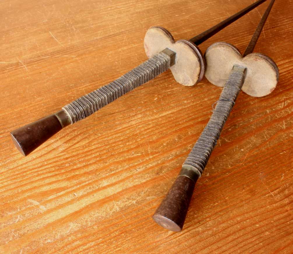 Condition: Very good antique condition with wear and an overall patina. Blades are straight and true, nicely-tempered and retain lots of their original springiness. Blades have some rust and pitting. They have not been over cleaned and are perfect for display. A nice pair of decorative foils. Please see pictures.