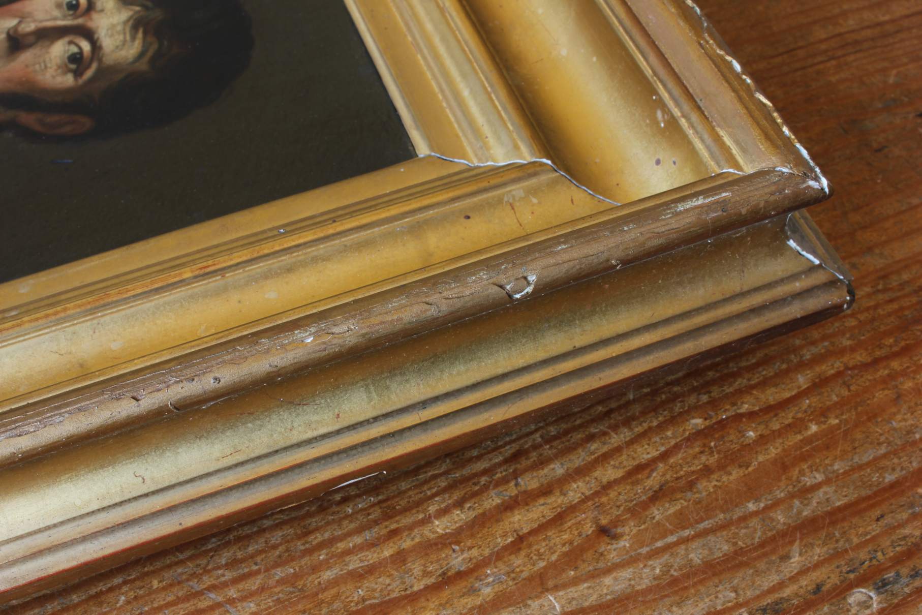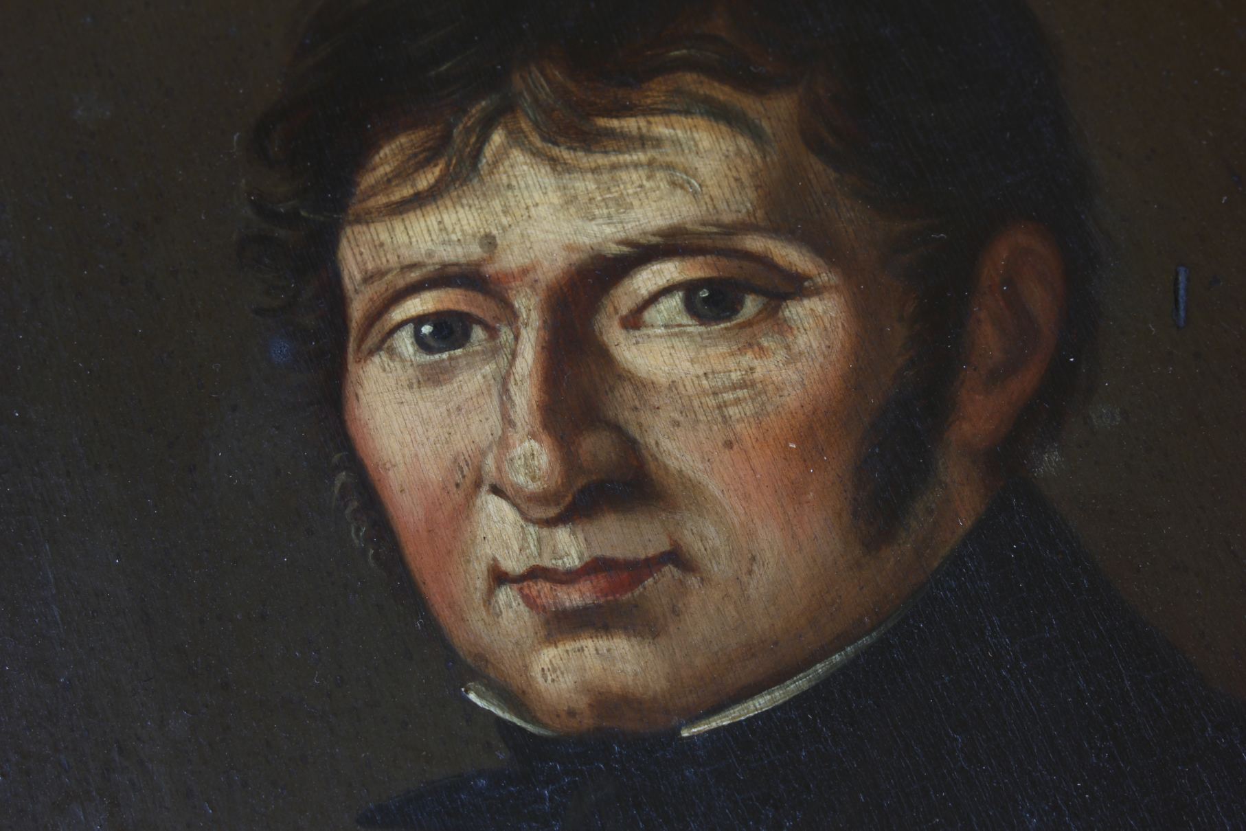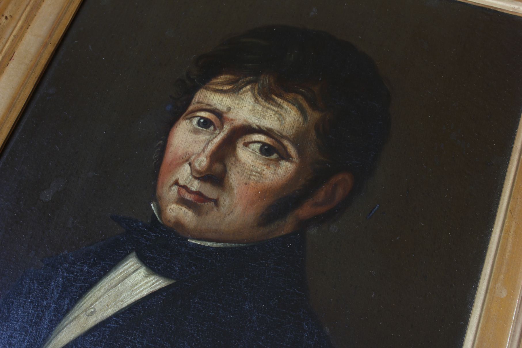 This antique French oil painting which is a portrait of a smartly dressed gentleman was well painted using oils on a wooden board in the first half of the 19th century and is mounted in a gilt wood frame.