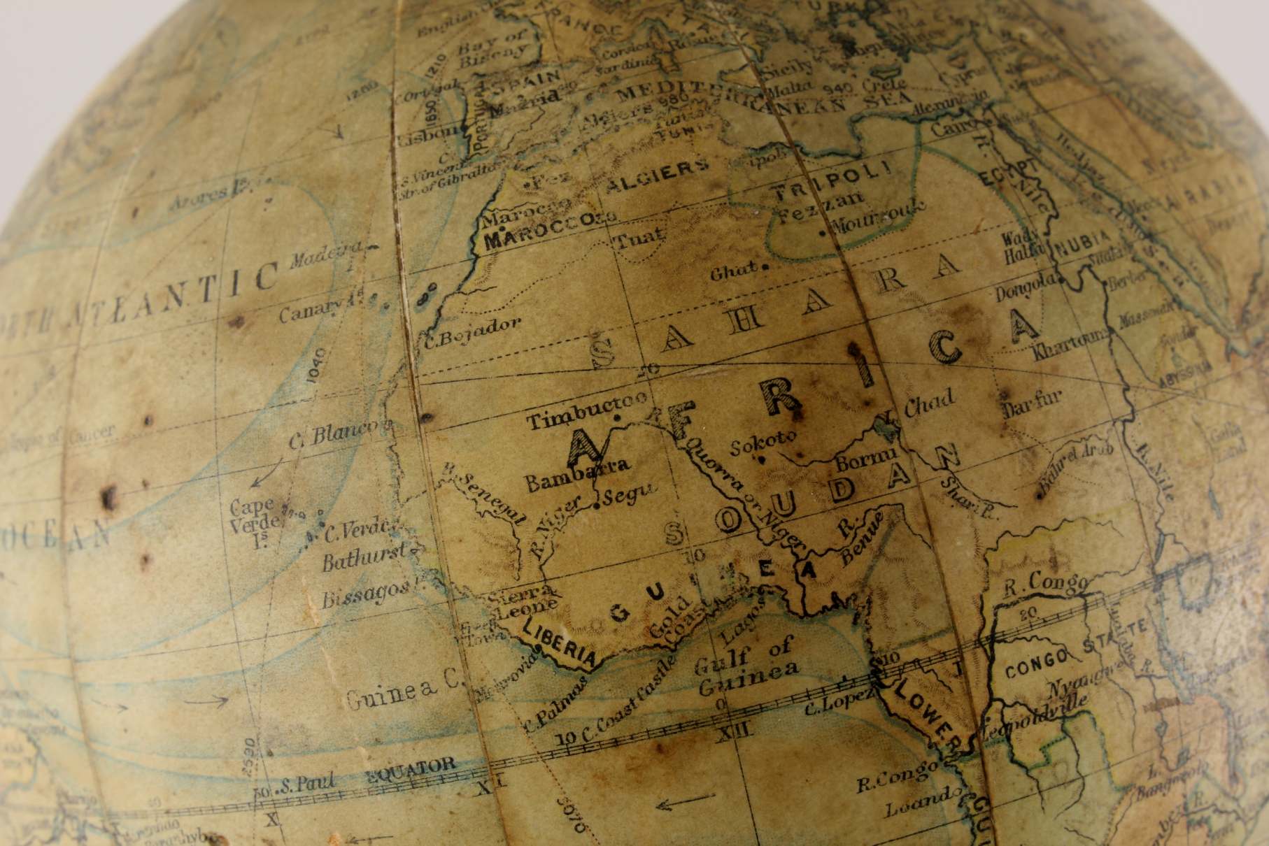 Printed on the globe is: Philip's Educational Terrestrial Globe by J Bartholomew FRGS London. George Philip & Son. 32 Fleet Street.