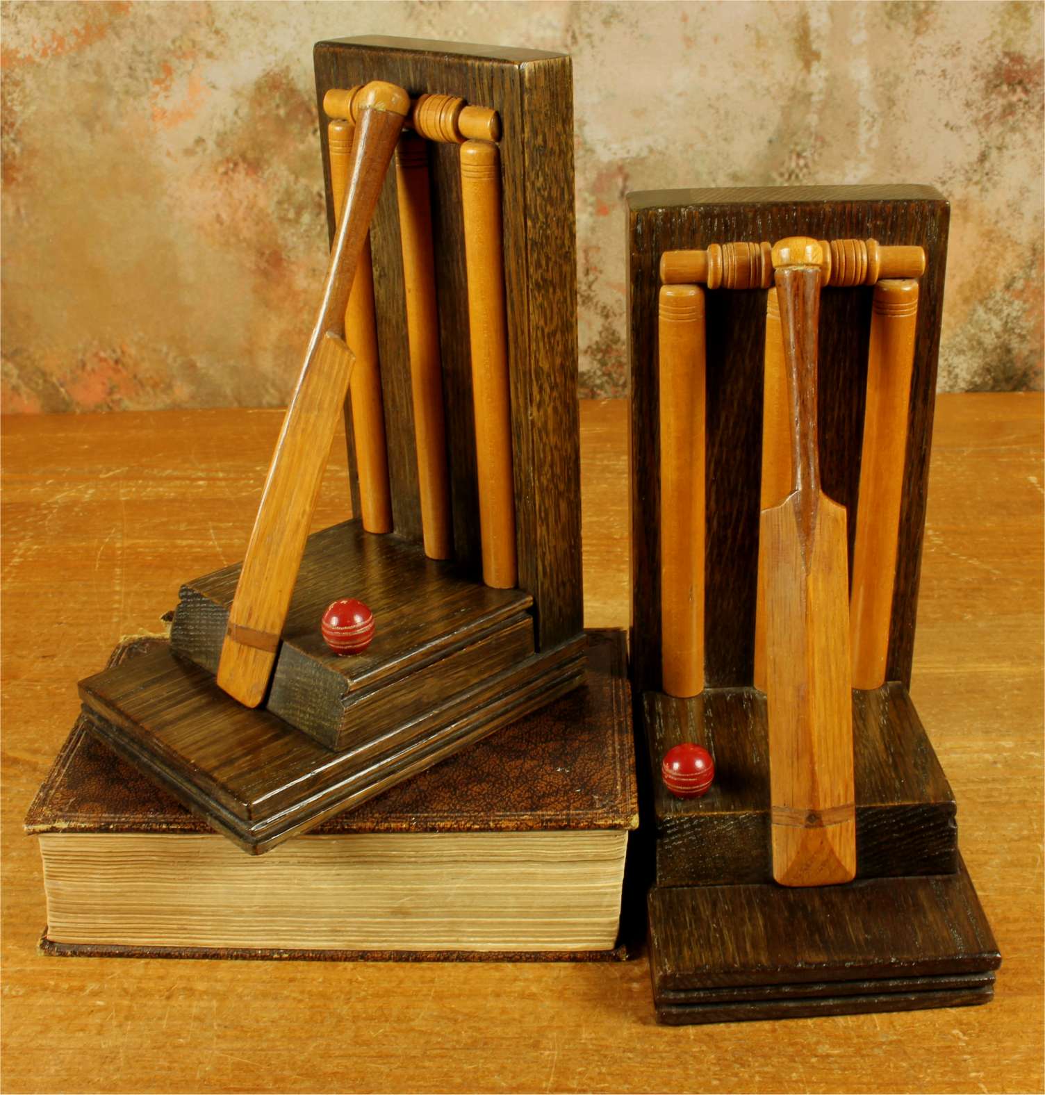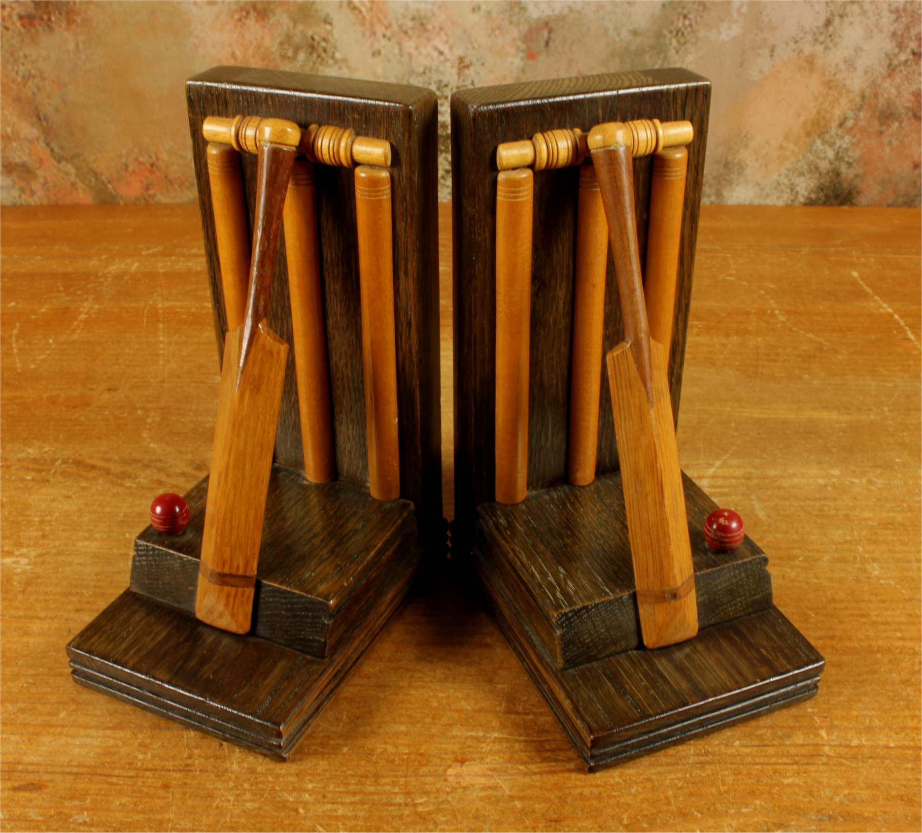 This handsome pair of wooden cricket bookends which are by the Thornton Smith Company were handmade in c1930.