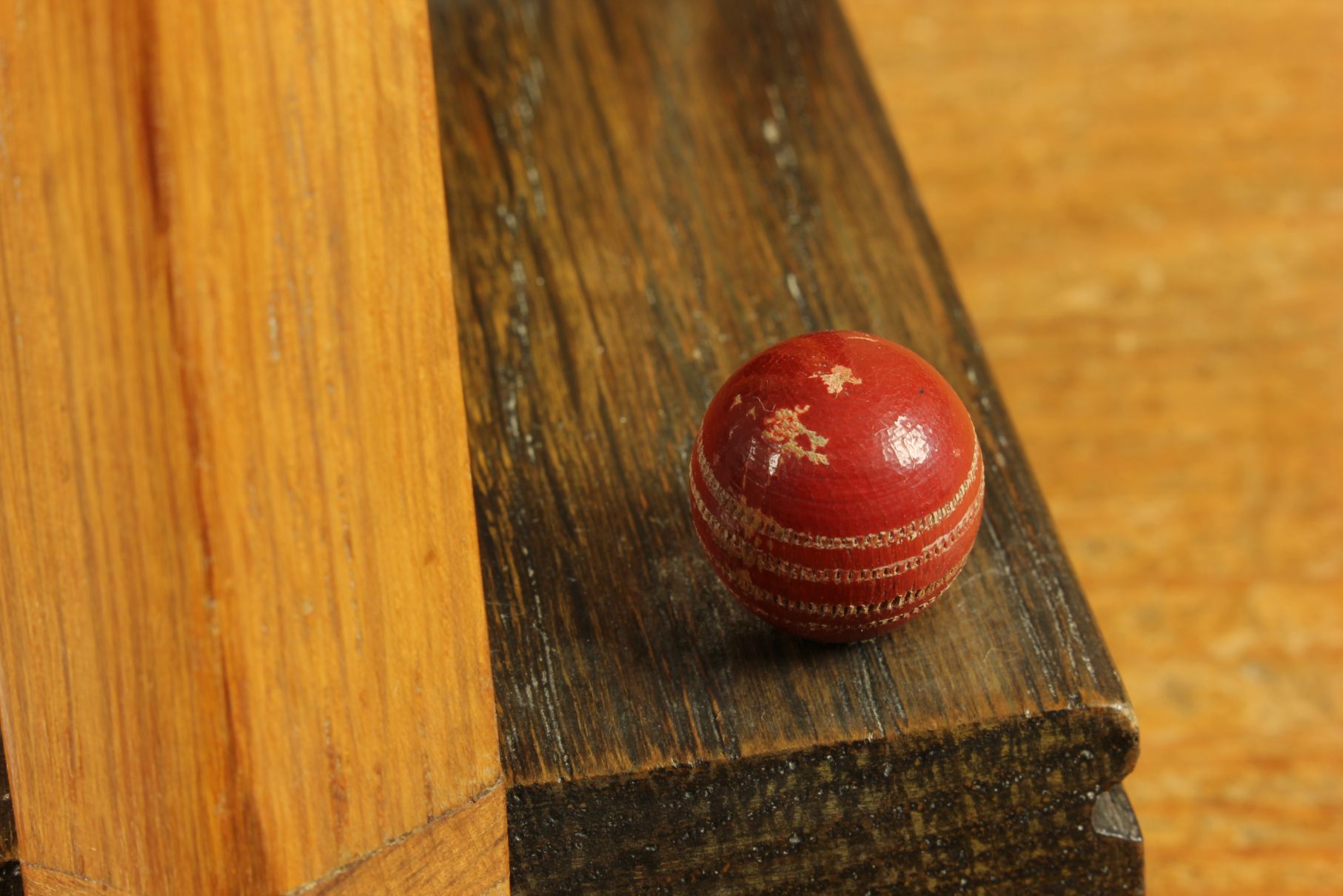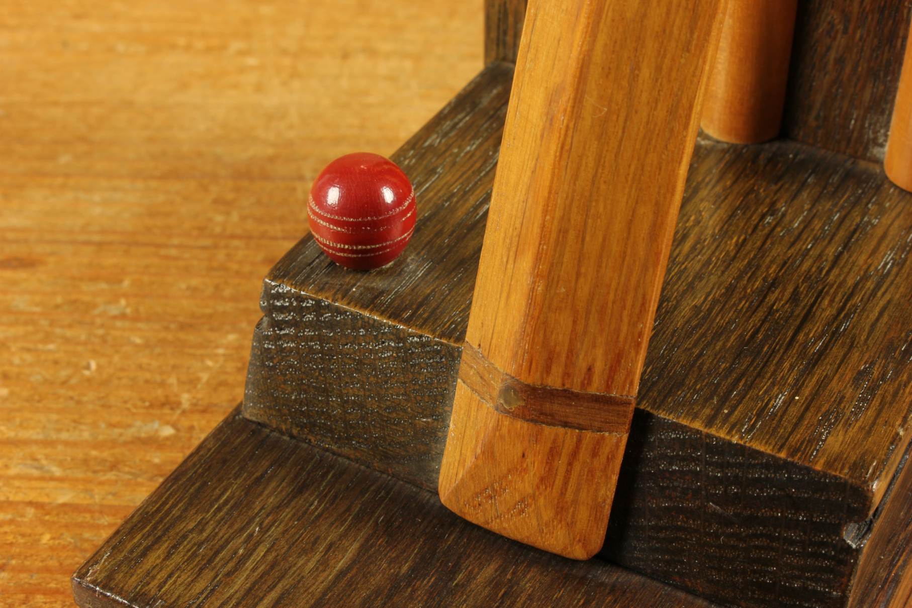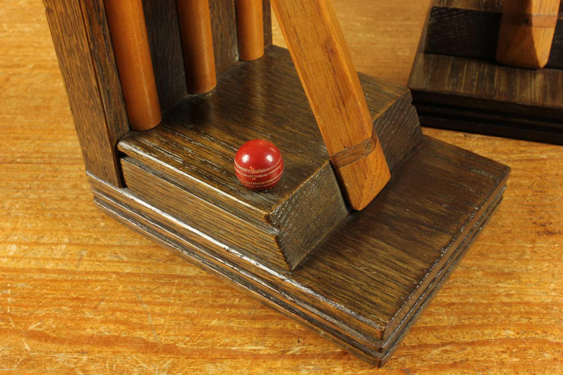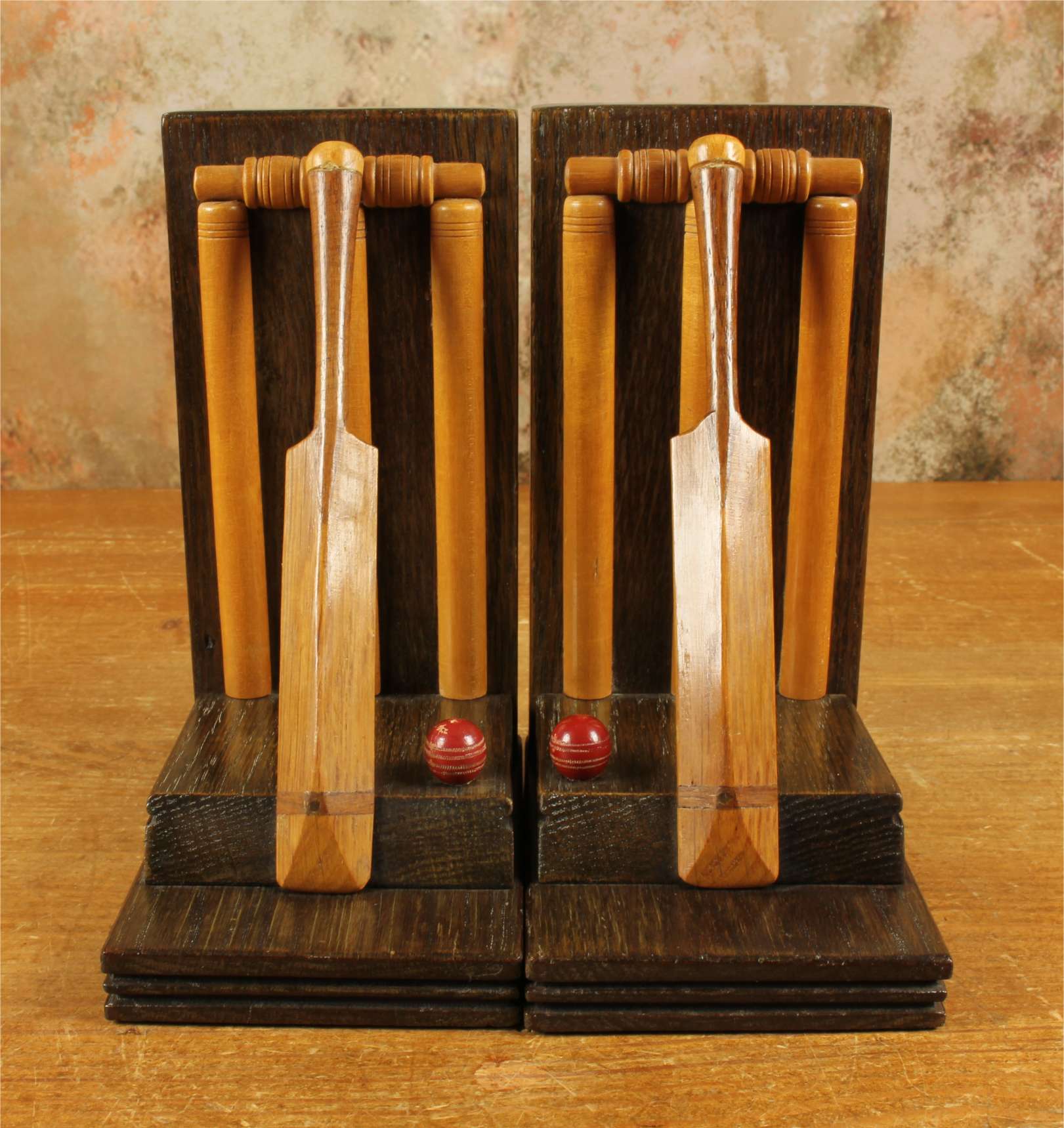 These Art Deco bookends which feature three cricket stumps with bails, miniature cricket bats and small wooden red leather style cricket balls have wonderful detail.