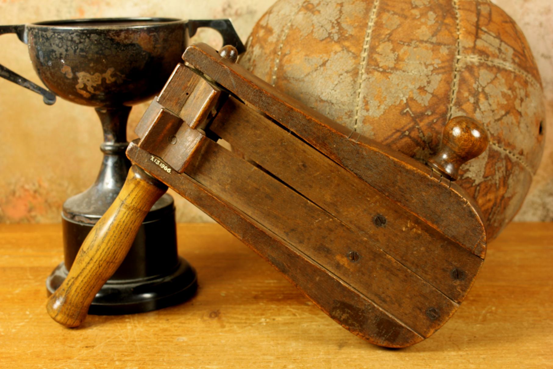 This Victorian wooden football rattle which has an extra loud double clacker is in full original working order and is marked with a museum type number so would most probably have been a museum show piece in the past.