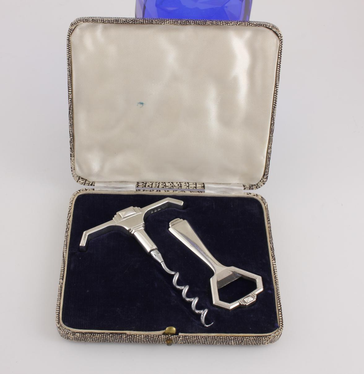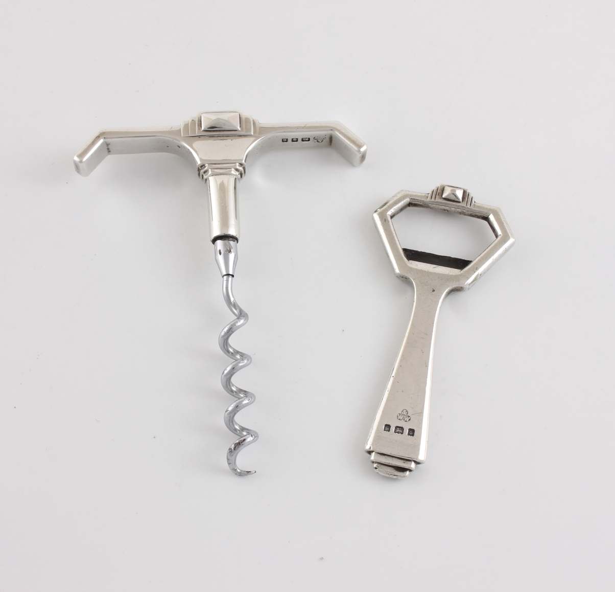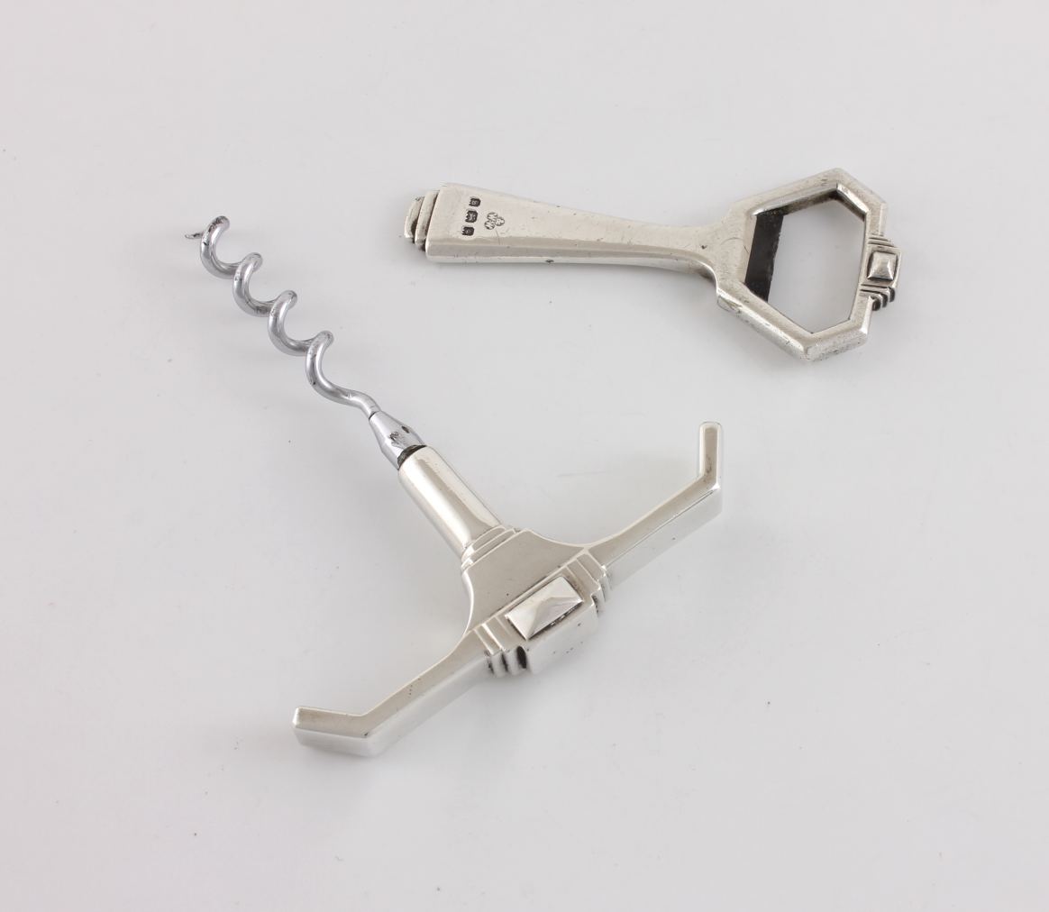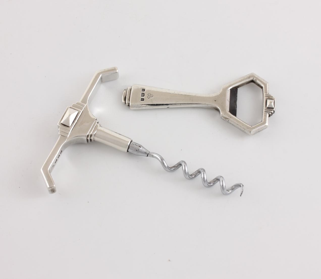 This stylish antique silver corkscrew and bottle opener set which is made by Wakely & Wheeler is fully hallmarked for 1933 on both pieces, have a stunning Art Deco design and are in their original fitted case.