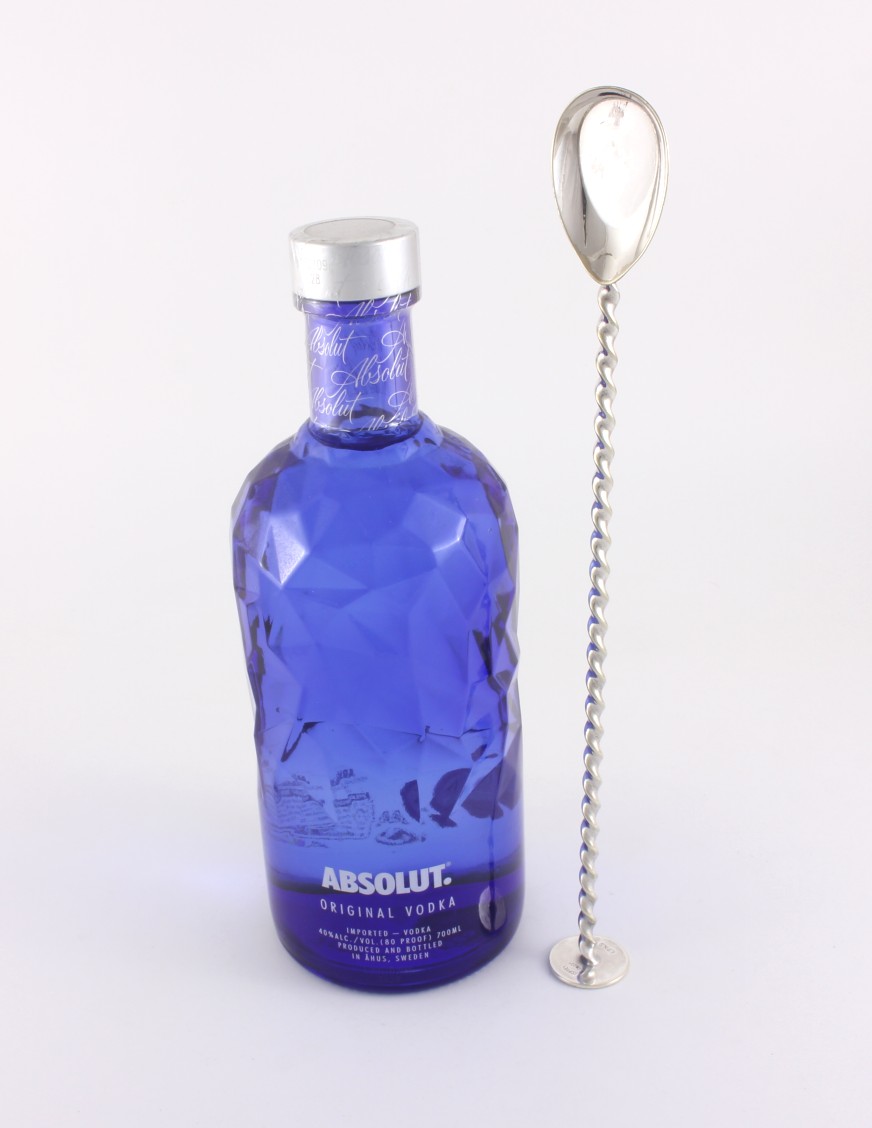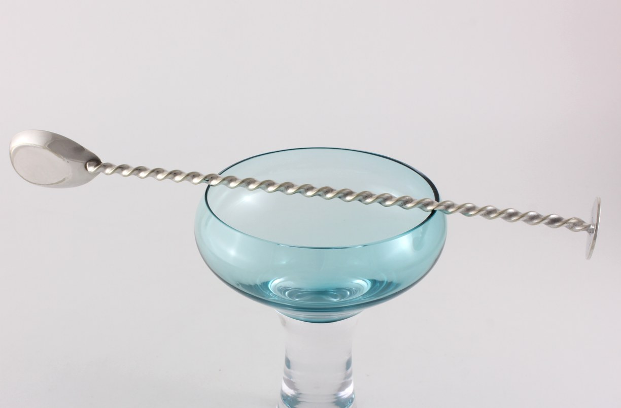 This long cocktail stirrer has a twisted design with a spoon to one end and a muddler for crushing your cocktail ingredients at the other end which is nicely marked for Asprey London EPNS.