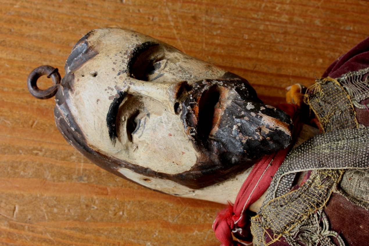 This stunning antique French marionette which dates from the early 19th century is handmade of wood, has a straw filled body, wire joints and movable limbs which would have once had strings attached to them in order to make them move.