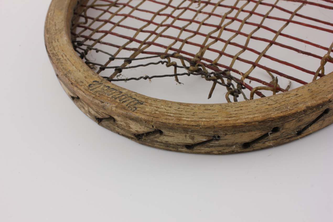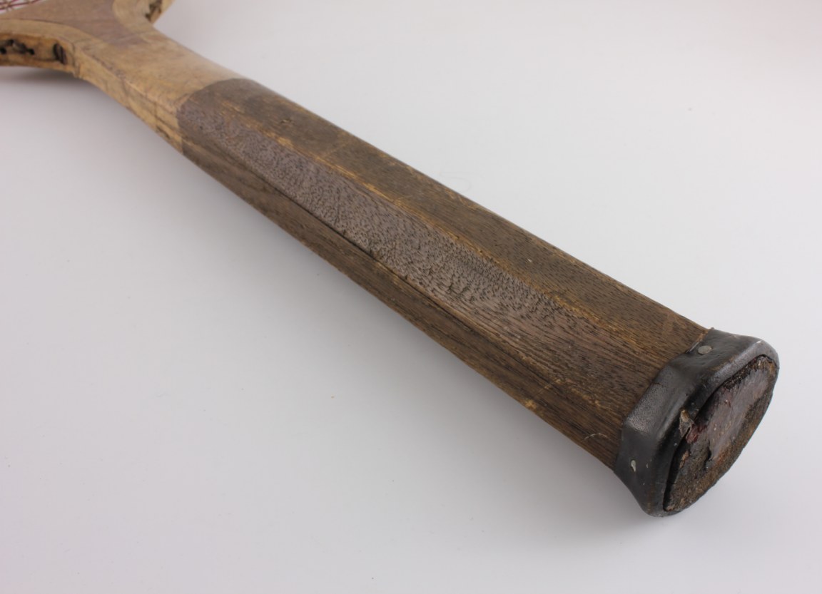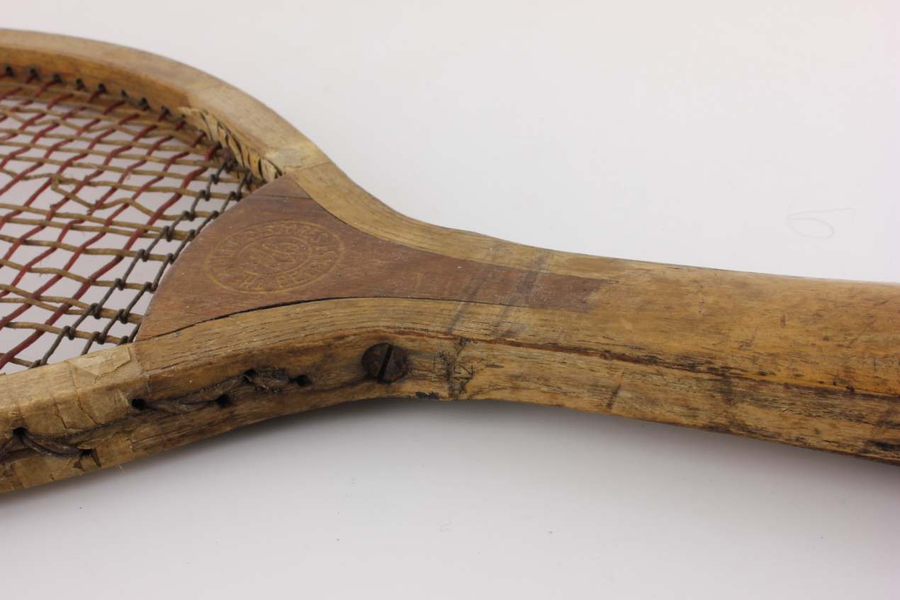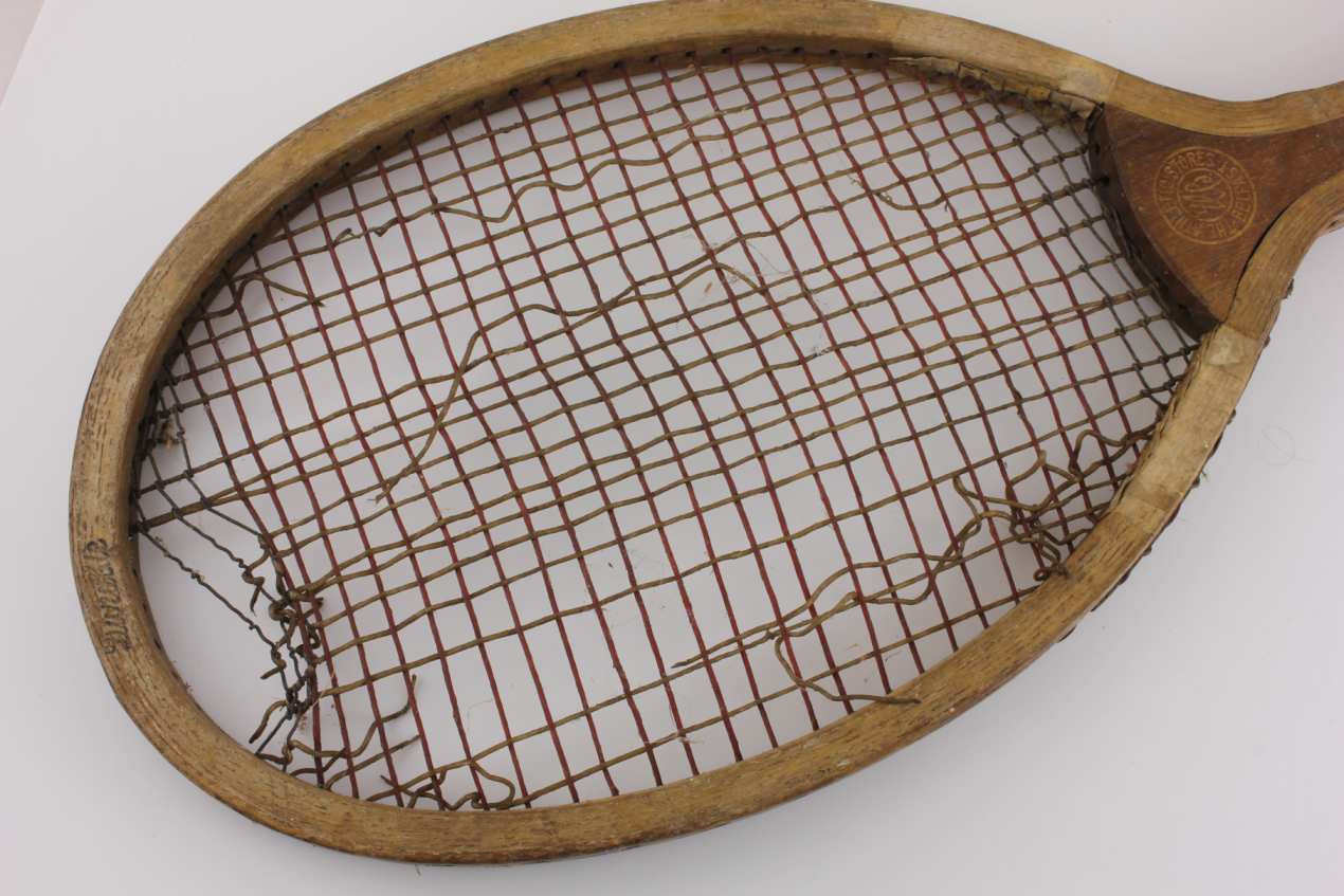 A decorative and collectable tennis racket that has lots of age related wear so looks great on display and would make a super item for a tennis club, shop or prop.