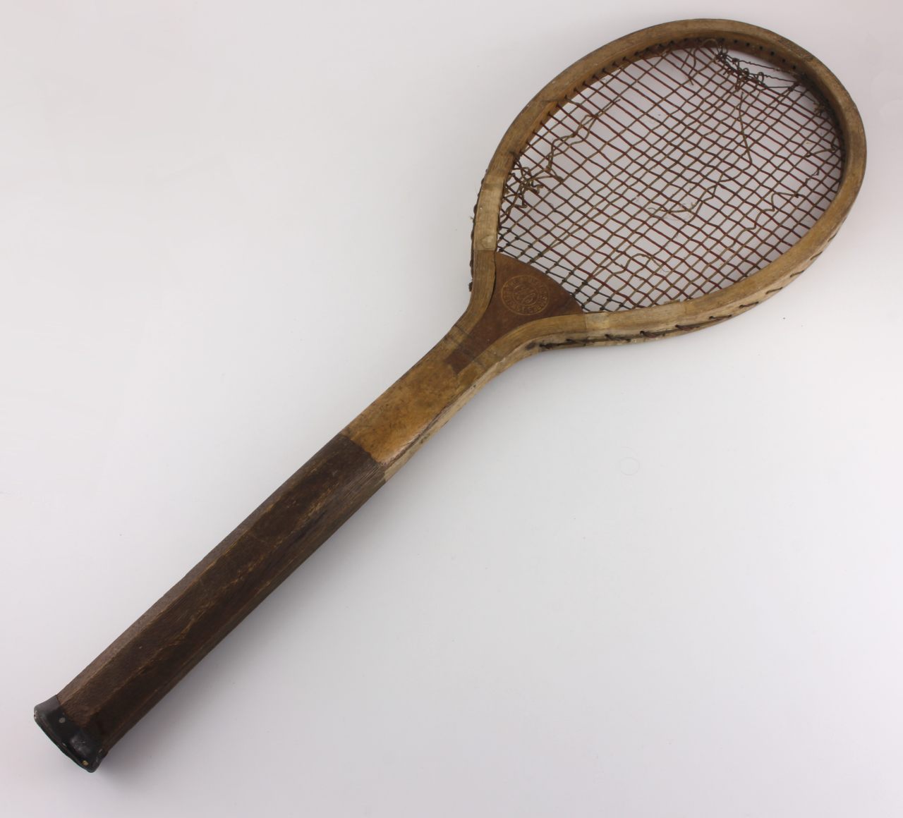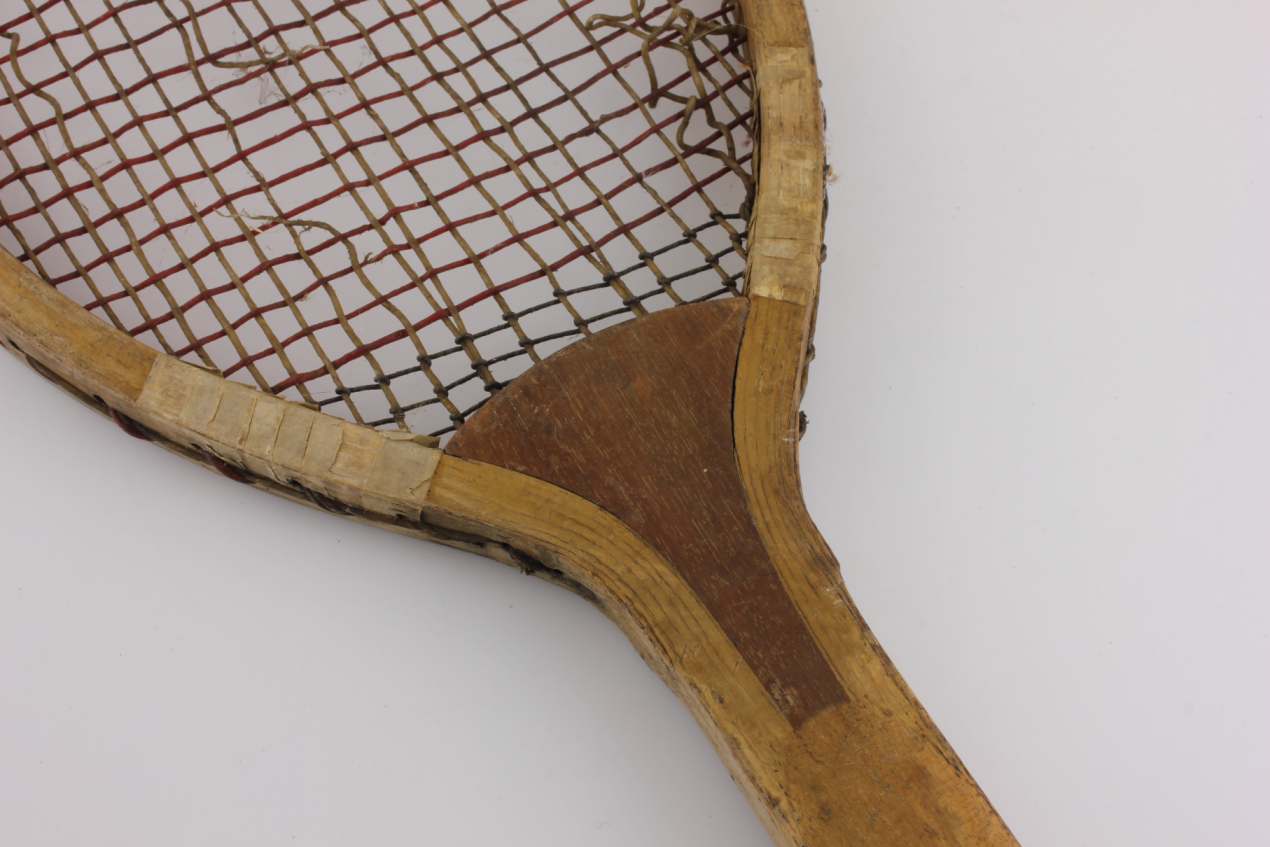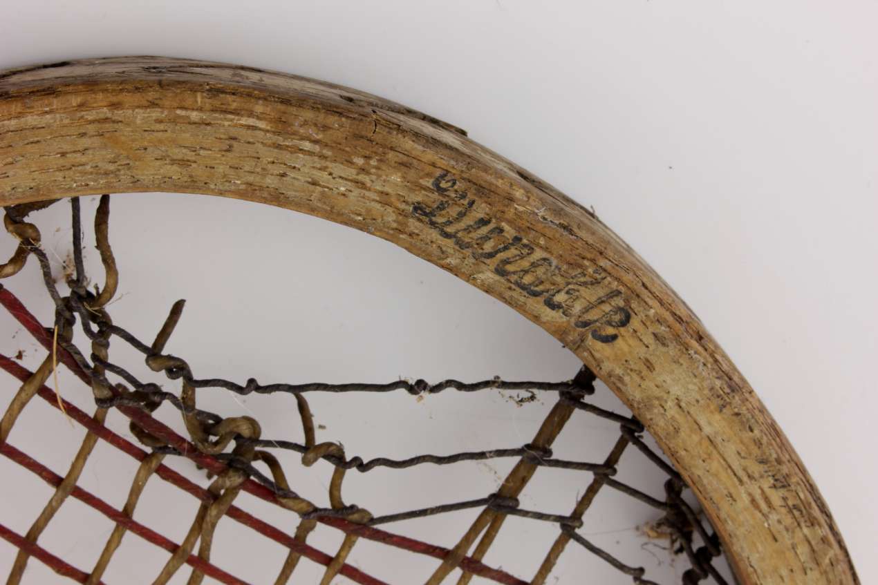 A decorative and collectable tennis racket that has lots of age related wear so looks great on display and would make a super item for a tennis club, shop or prop.