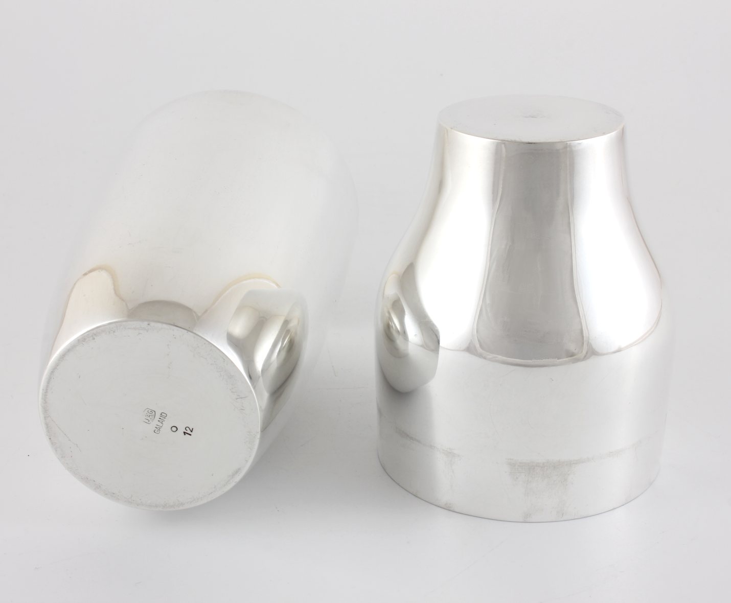 This handsome 2 piece silver plated cocktail shaker which is by top Belgian silversmith JG Galand of Brussels dates from the first half of the 20th century and has a wonderful Boston style modernist design with a cup style top section