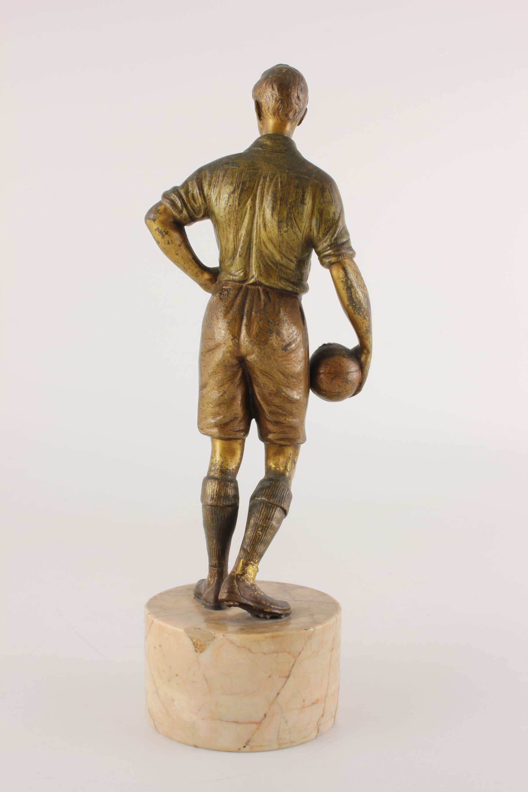 This original Austrian cold painted bronze of a footballer dates from c1890 and is of an early style football player holding a football.