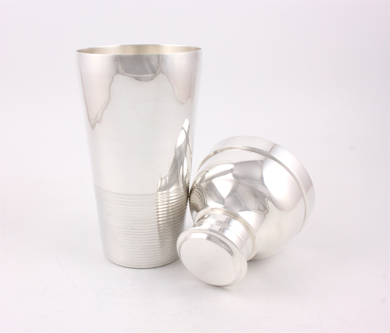 This large Art Deco design French silver plated cocktail shaker which dates from c1940 is made of silver plate, is by top French silversmith Christofle and comes in it's original green Christofle box.