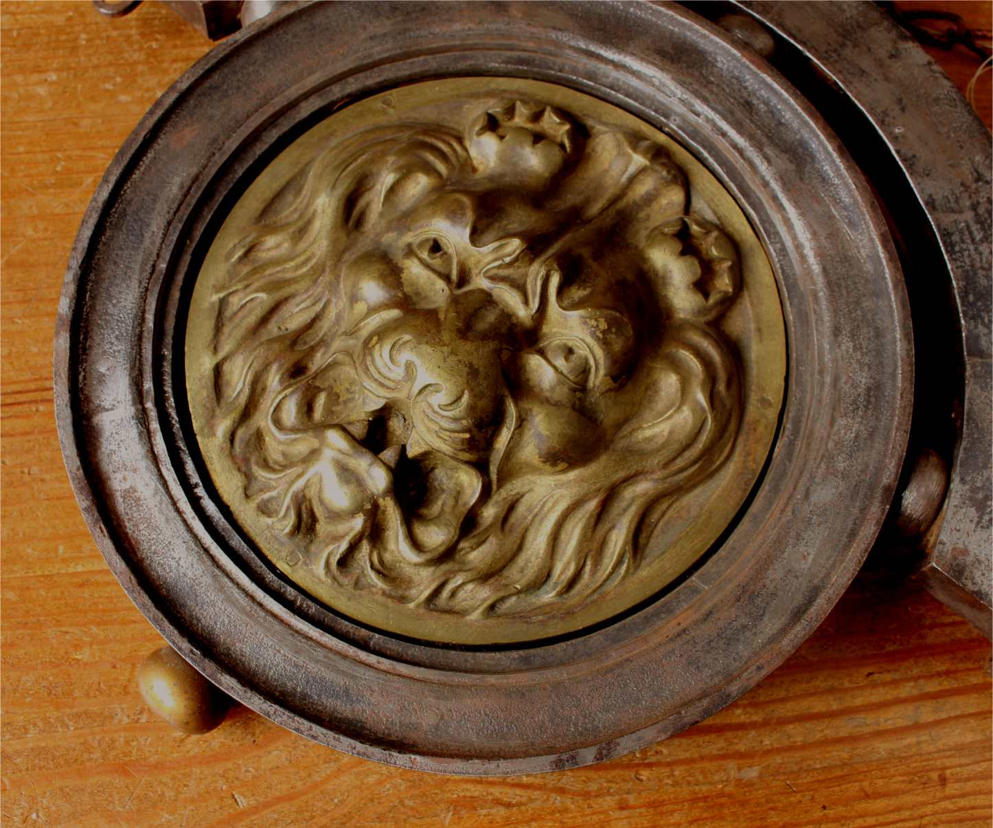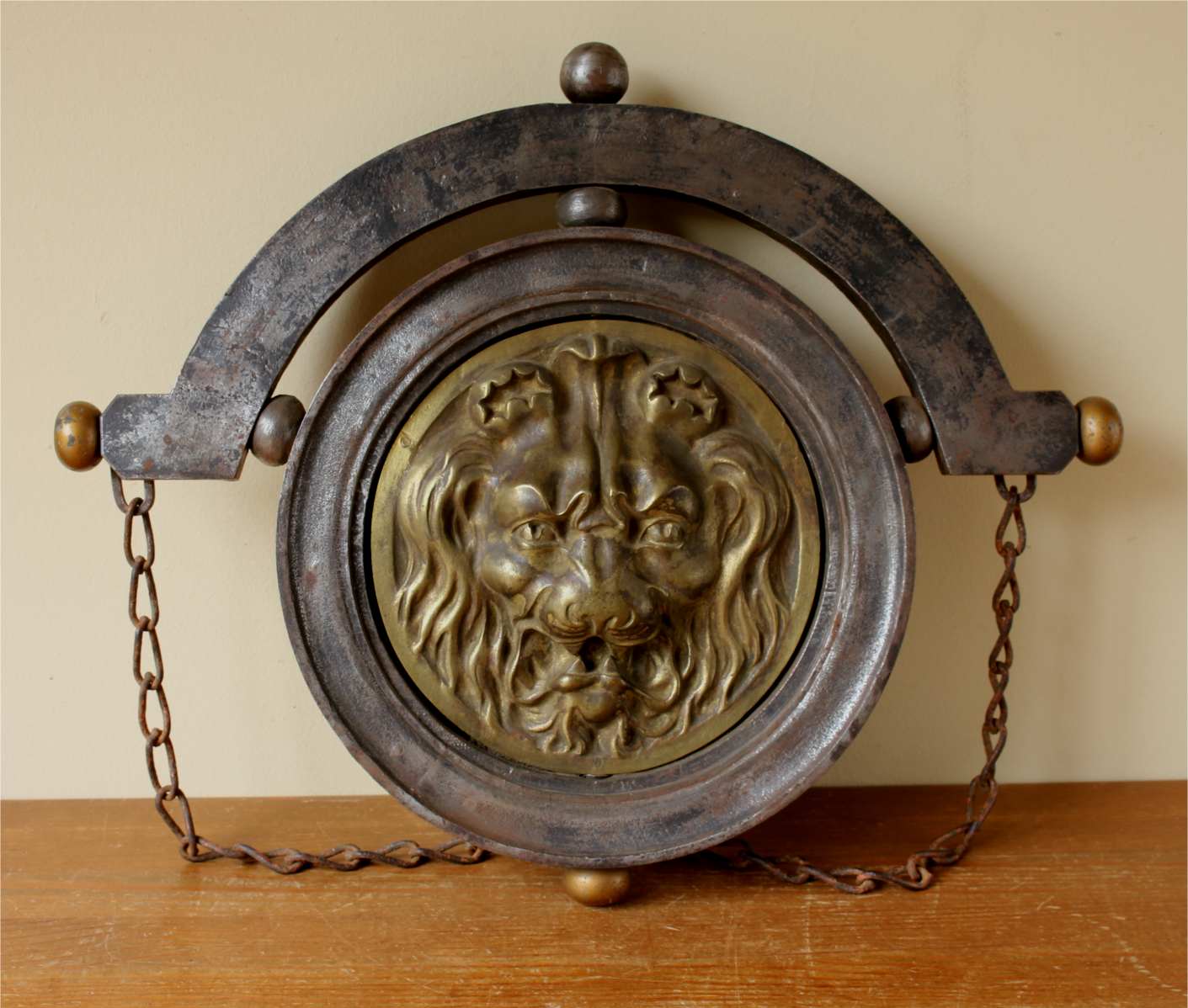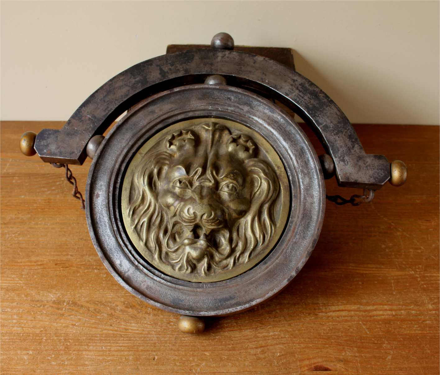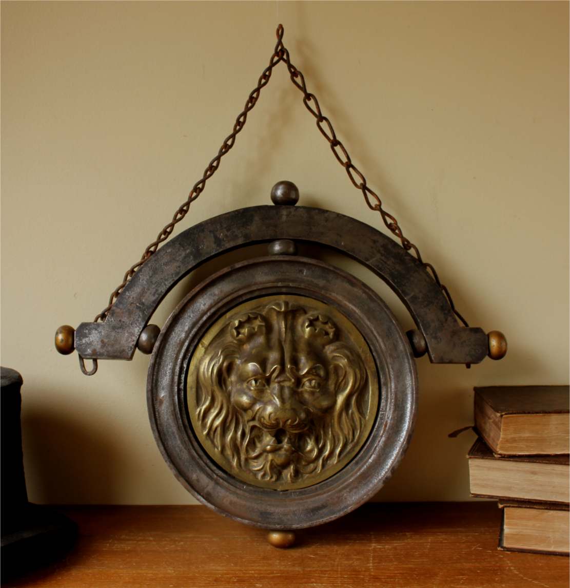 This fabulous hanging sign which originates from France dates from the 19th century, is made of heavy cast iron surround and has a central lion's head plaque which is made of gilded bronze.