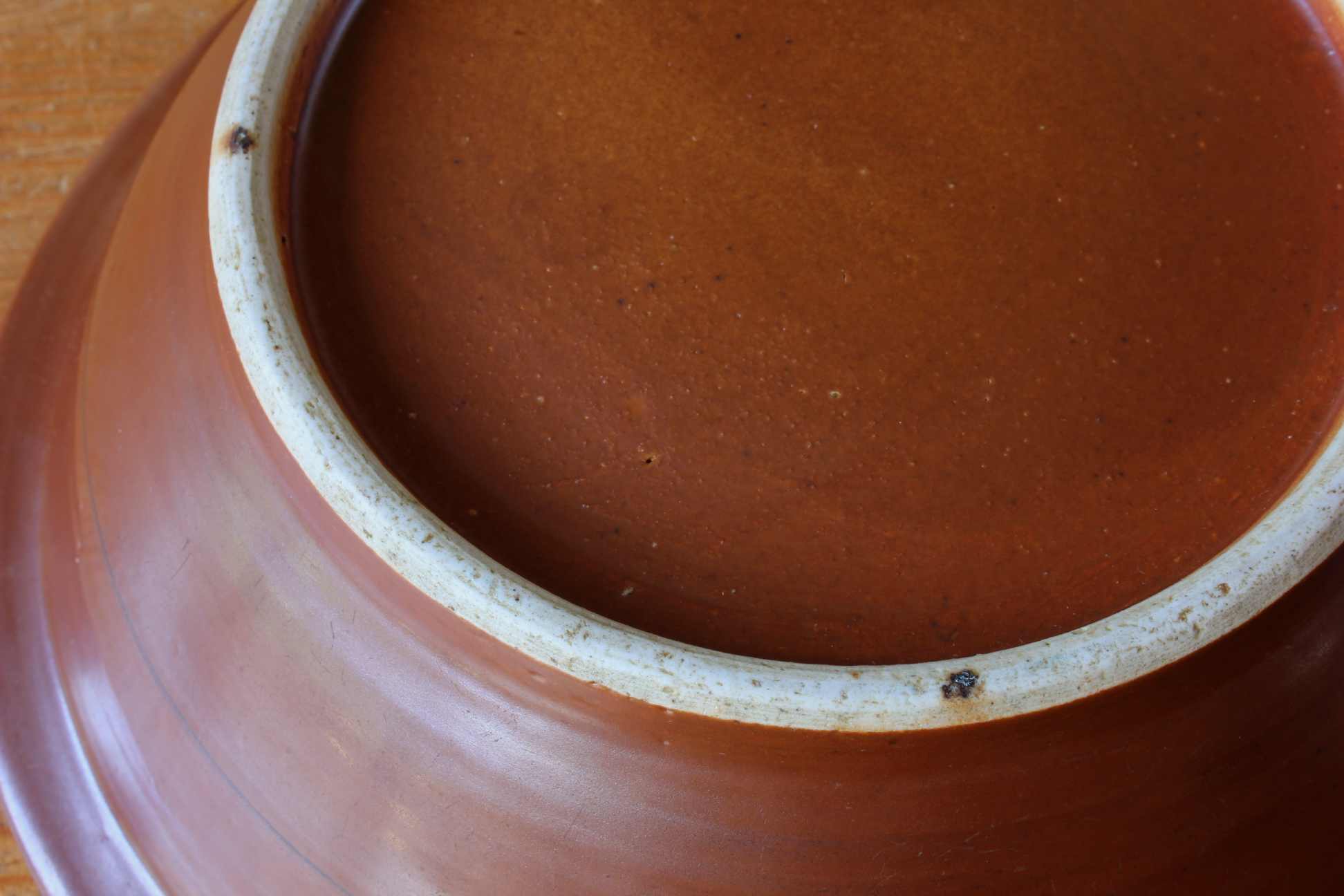 This 19th century Batavian Ware bowl has a brown glaze covering the exterior, top rim and base that is also known as Cafe Au Lait.