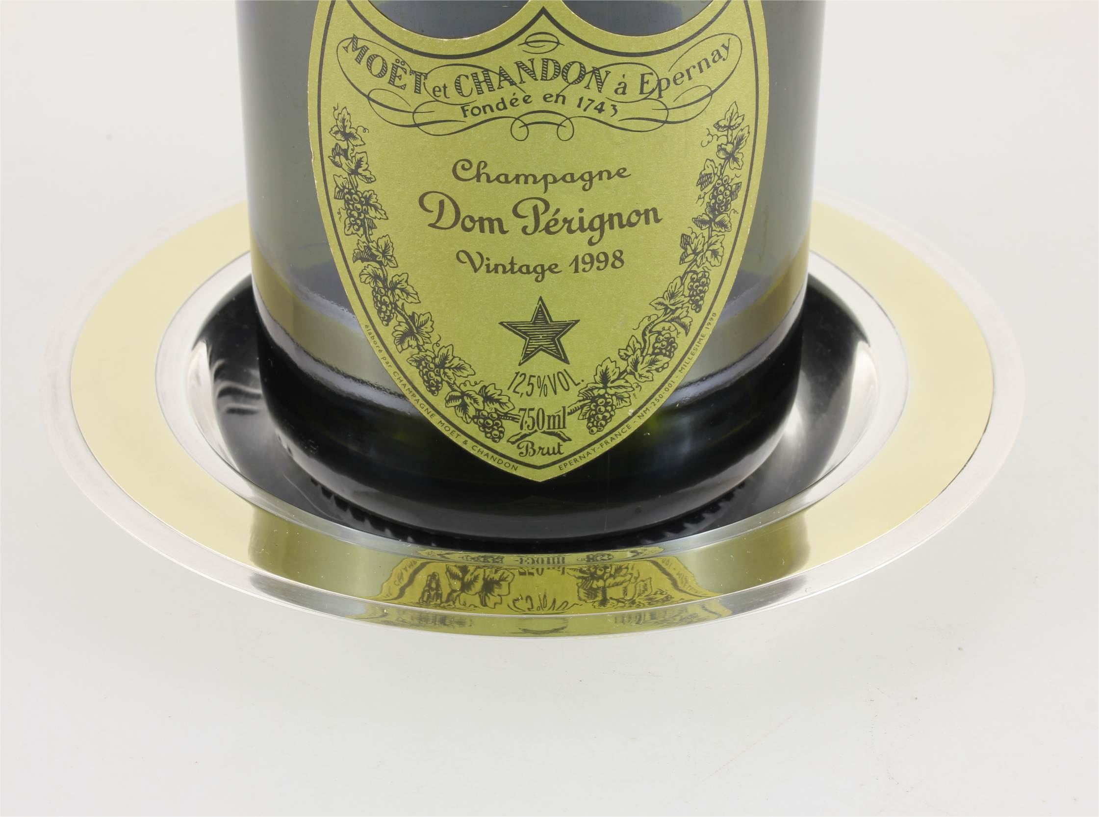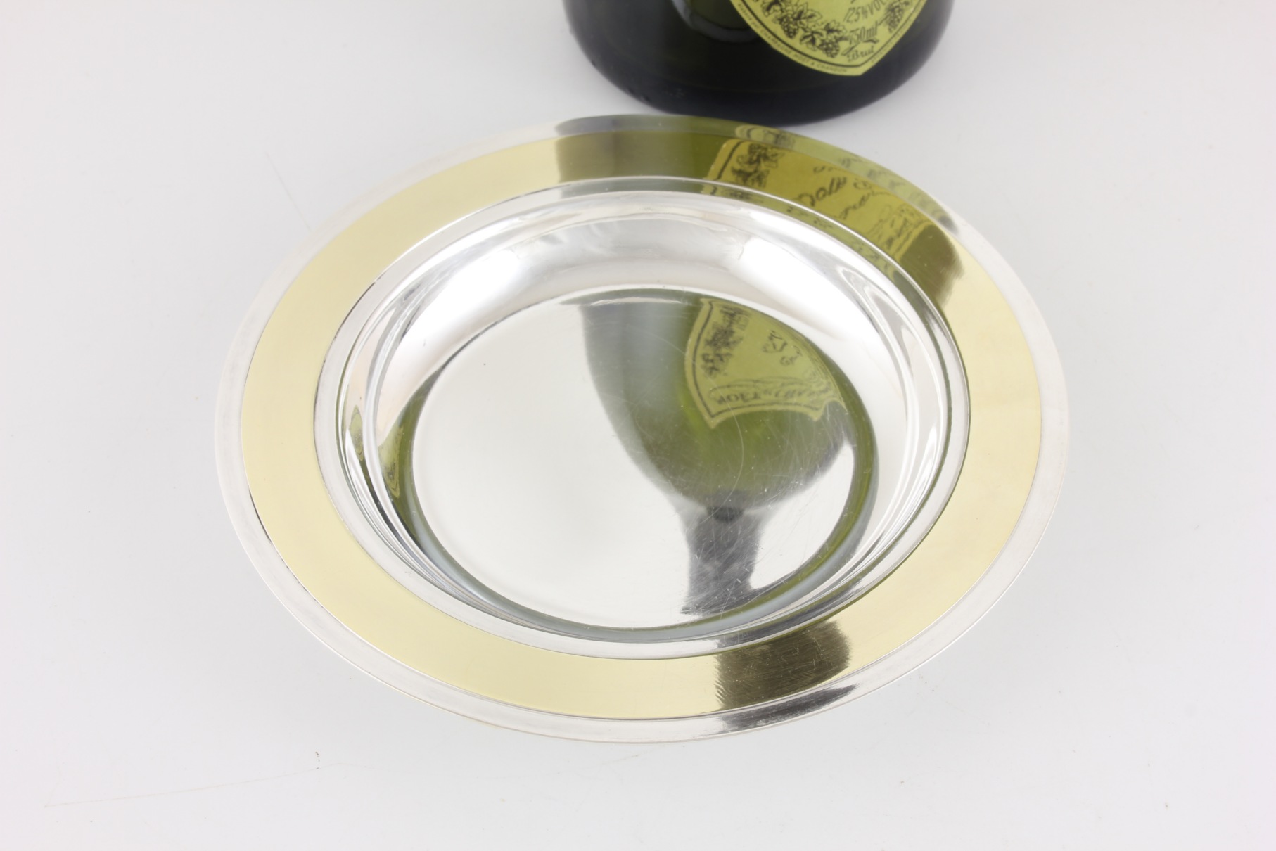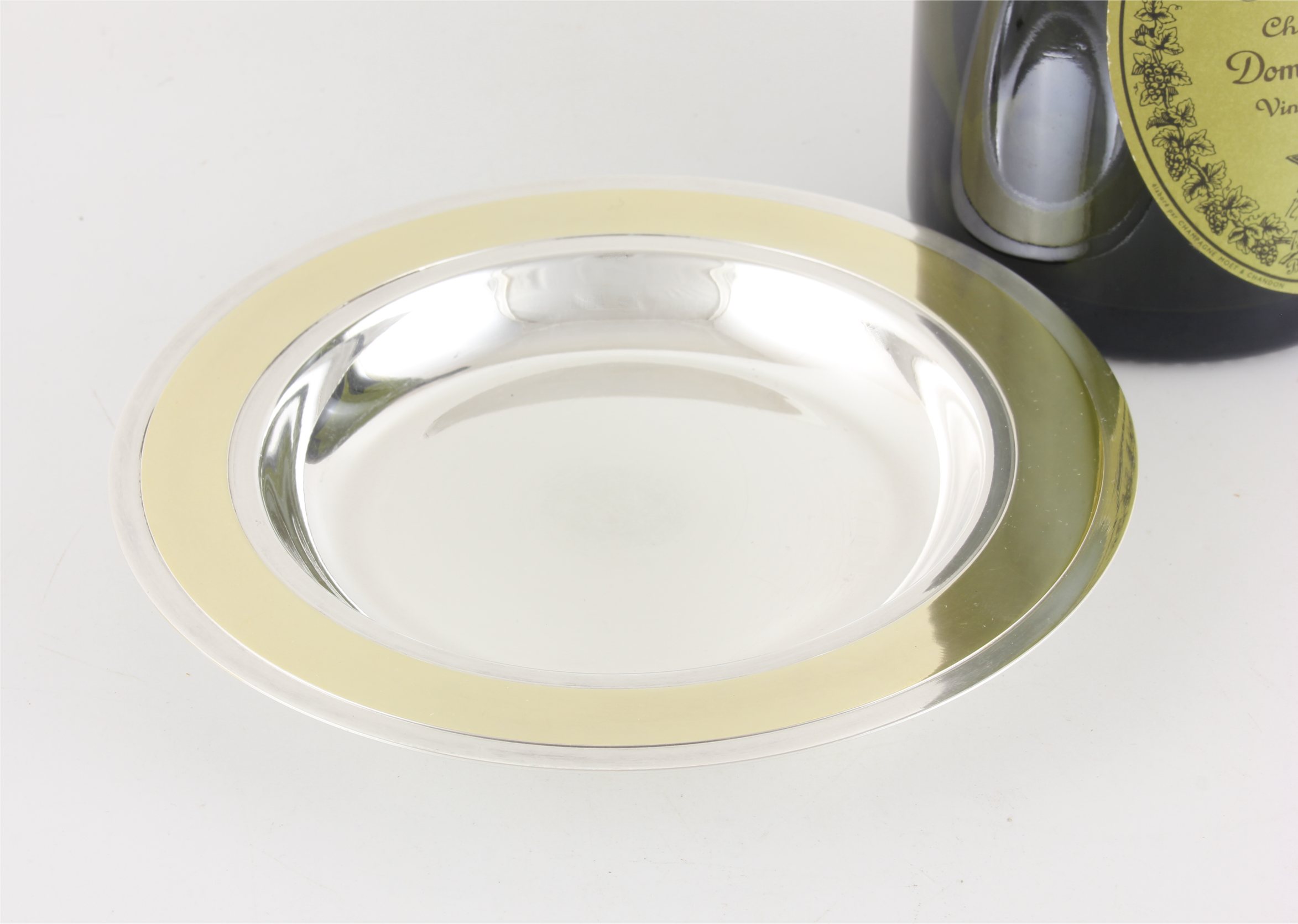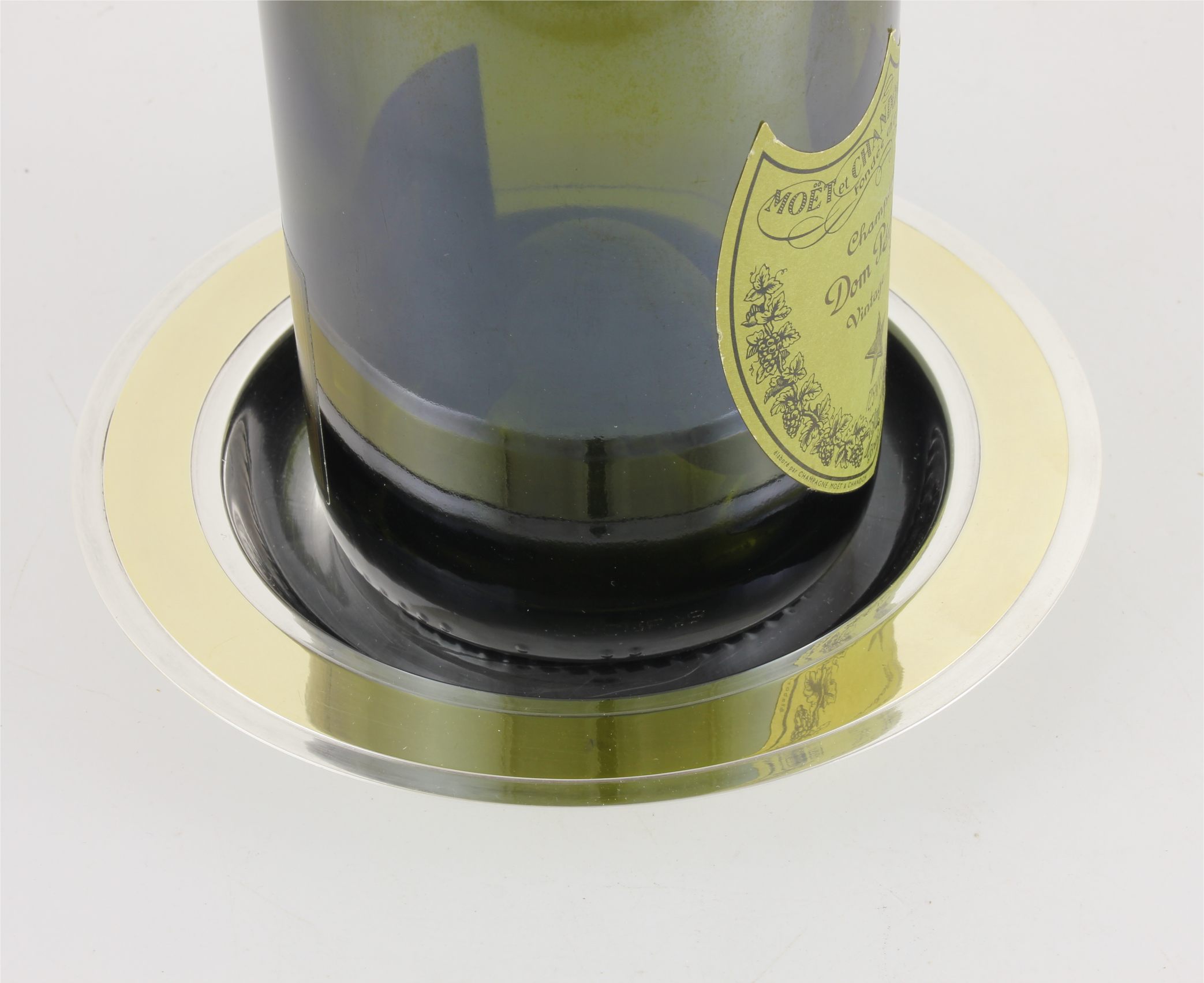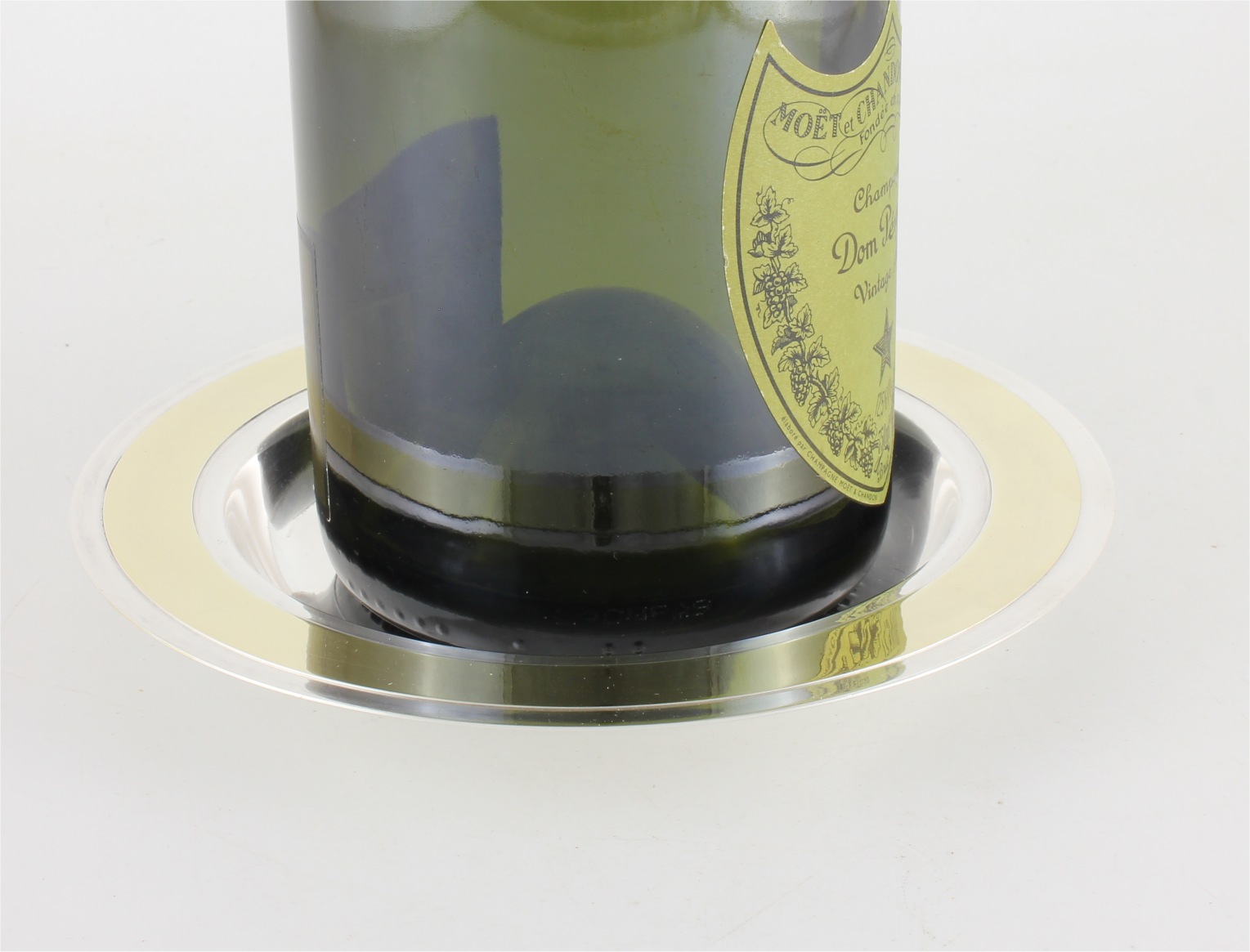 This fabulous vintage Champagne or wine bottle coaster which is by top French silversmith Christofle is made of silver plate with a gilt design around the top edge and is of fine quality.