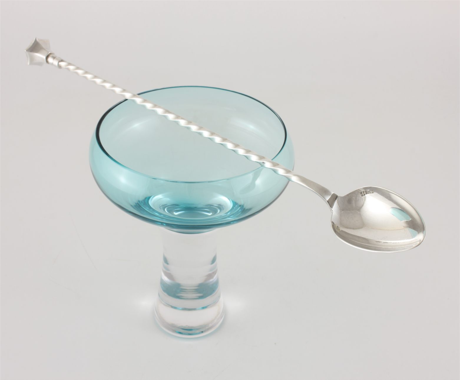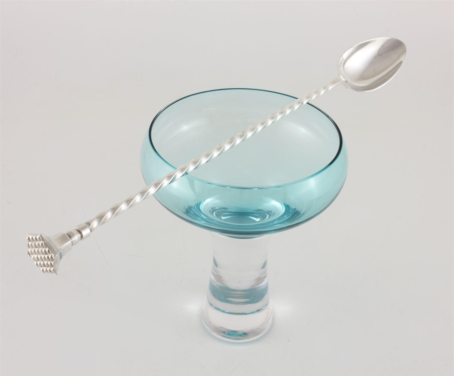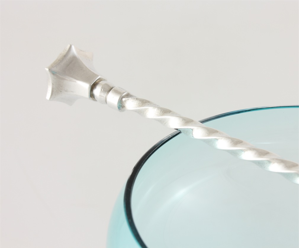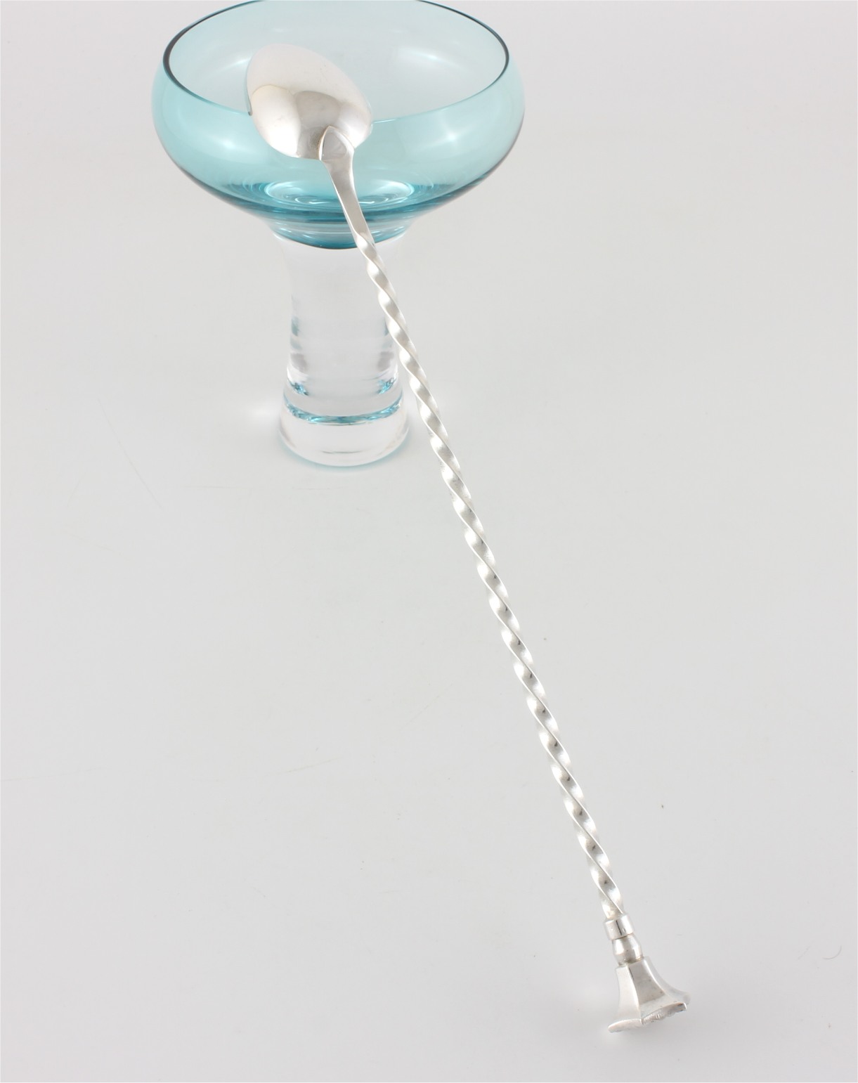 This long stirrer has a twisted design with a large spoon to one end and a muddler which has a hexagonal star shape at the other end for crushing your cocktail ingredients.