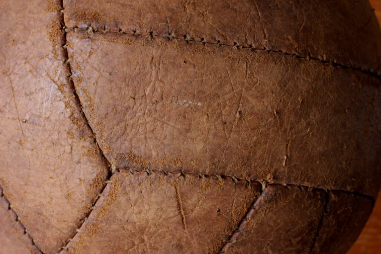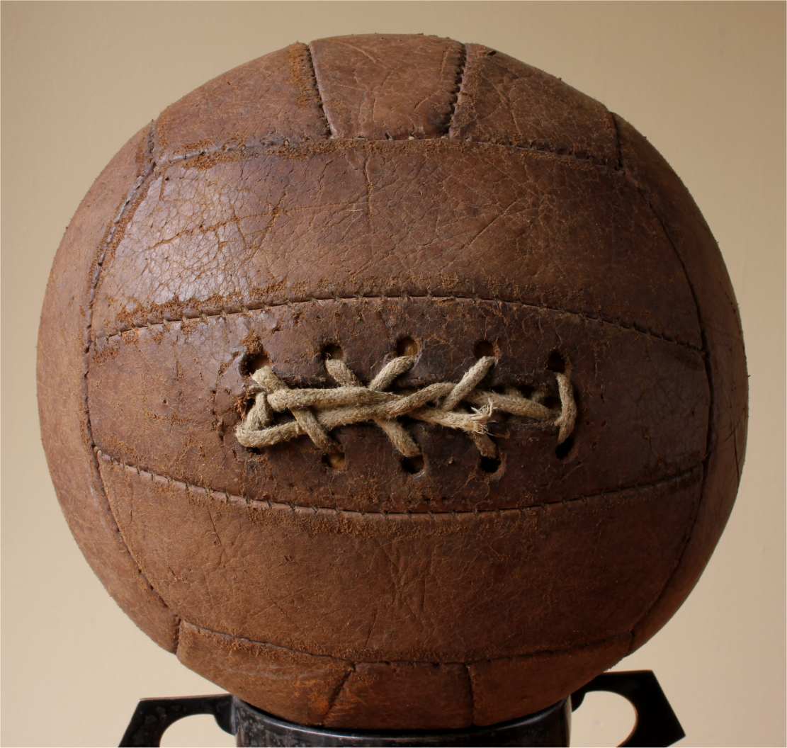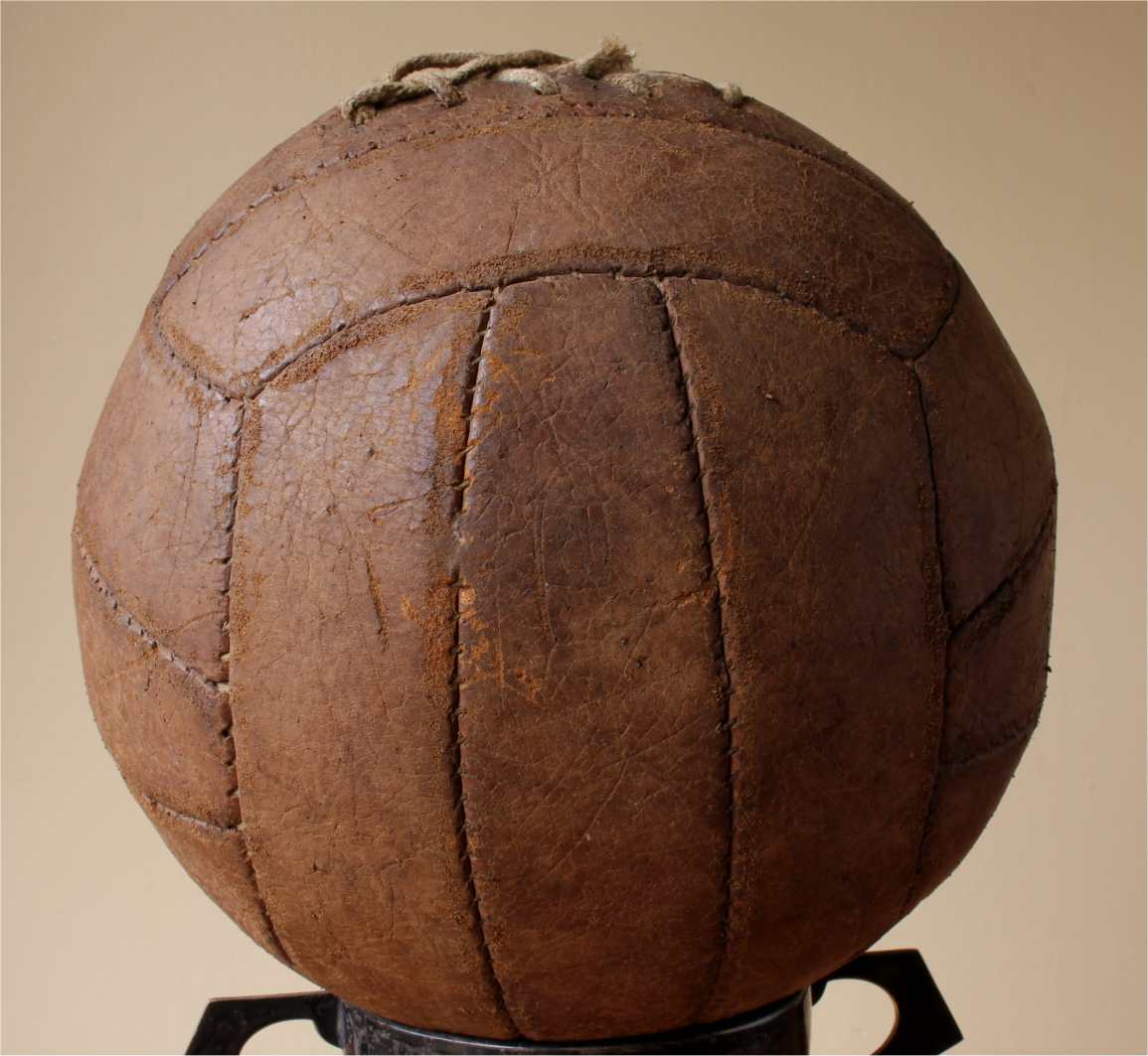 This vintage full size 5 football which is made of thick brown leather is an 18 panel design ball with 5 pairs of lace holes and cord laces. A new bladder has been fitted so inflates and holds it's shape well for display.