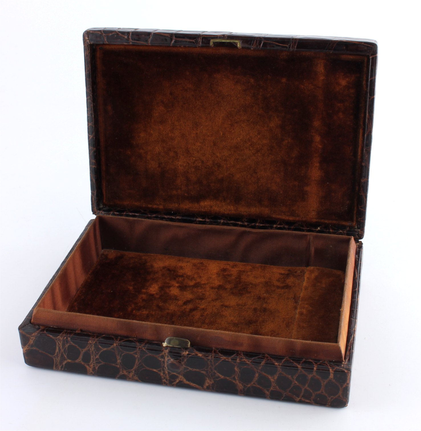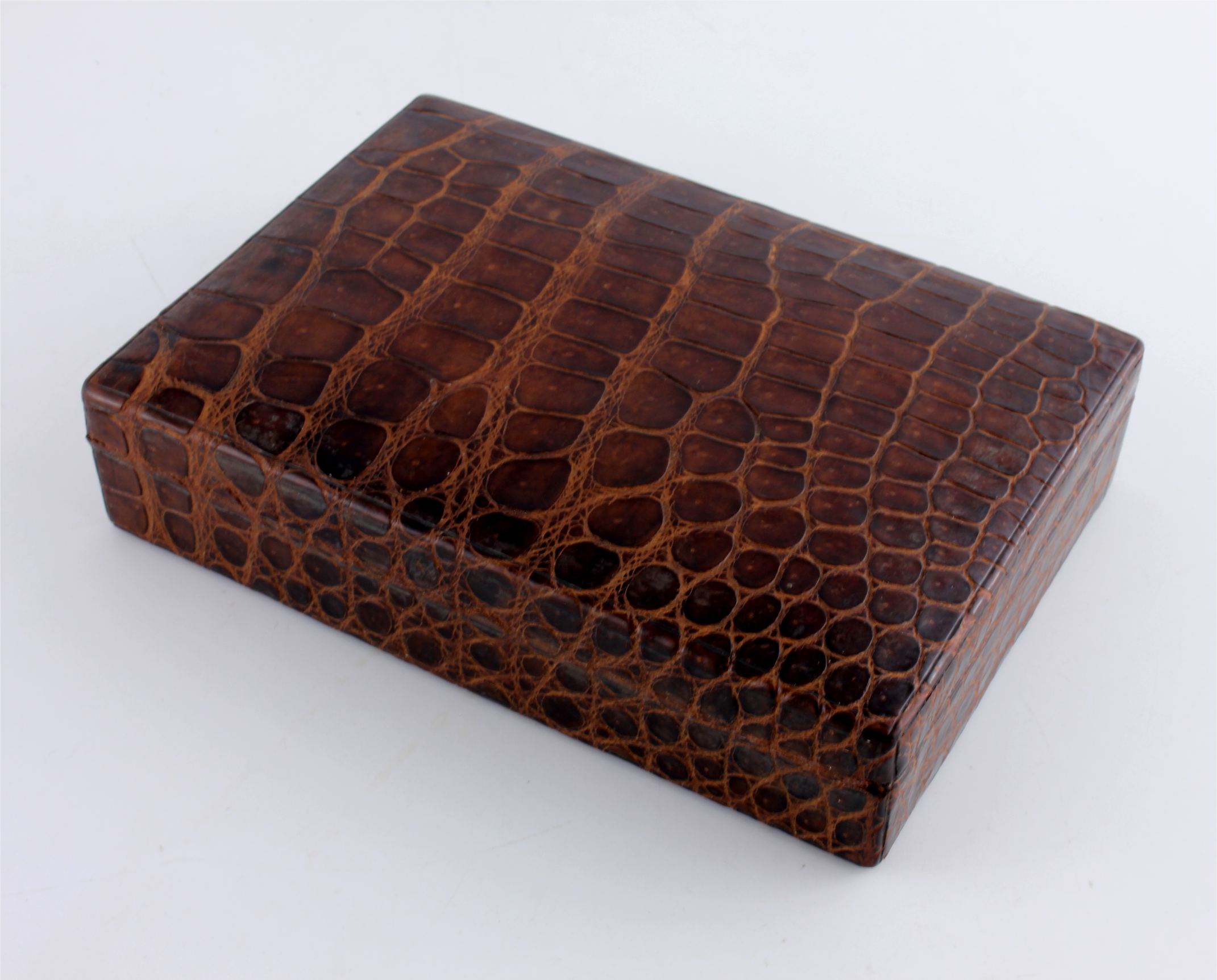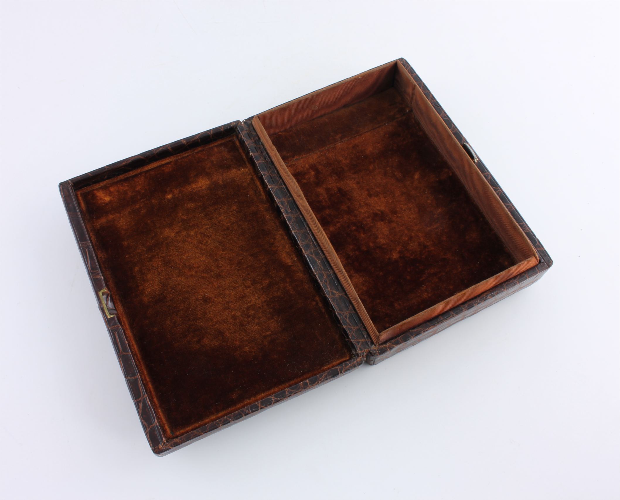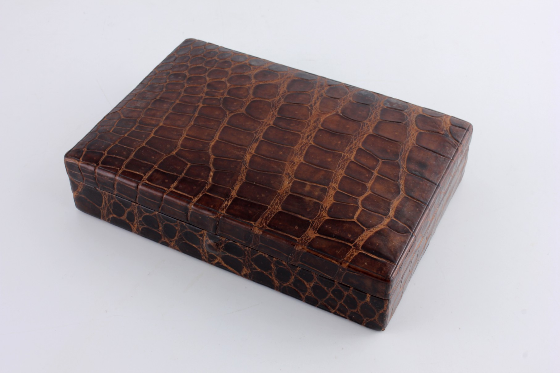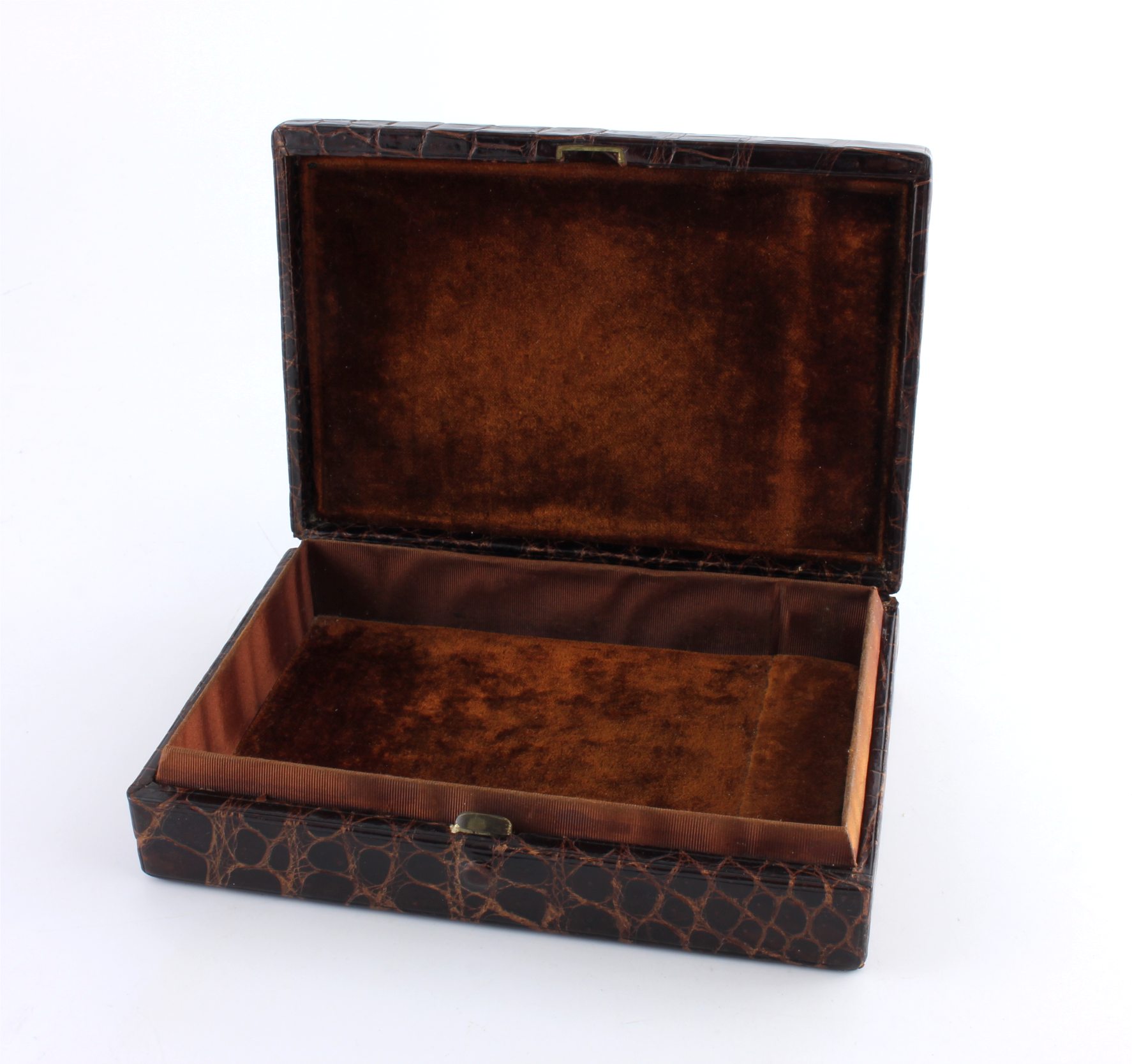This handsome antique croc leather jewellery case which is by top leather goods maker Drew & Sons of Piccadilly Circus London, dates from c1900 and has a rich brown colour and patina.