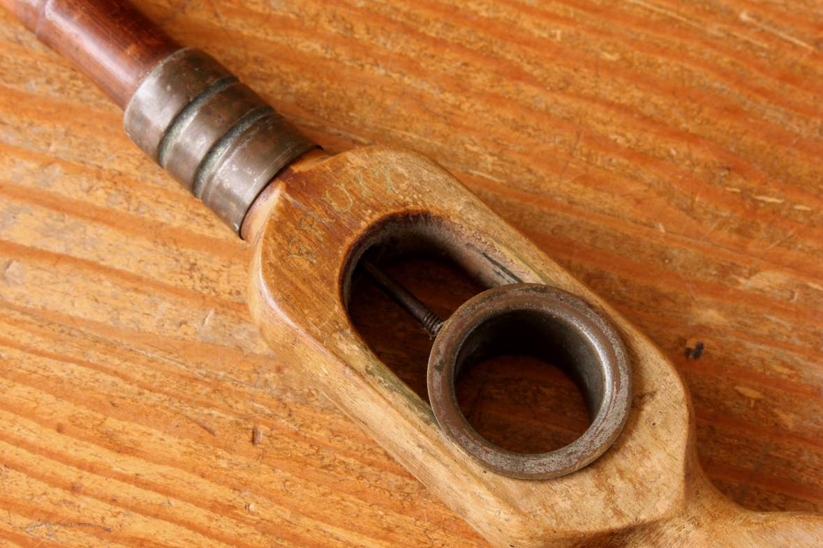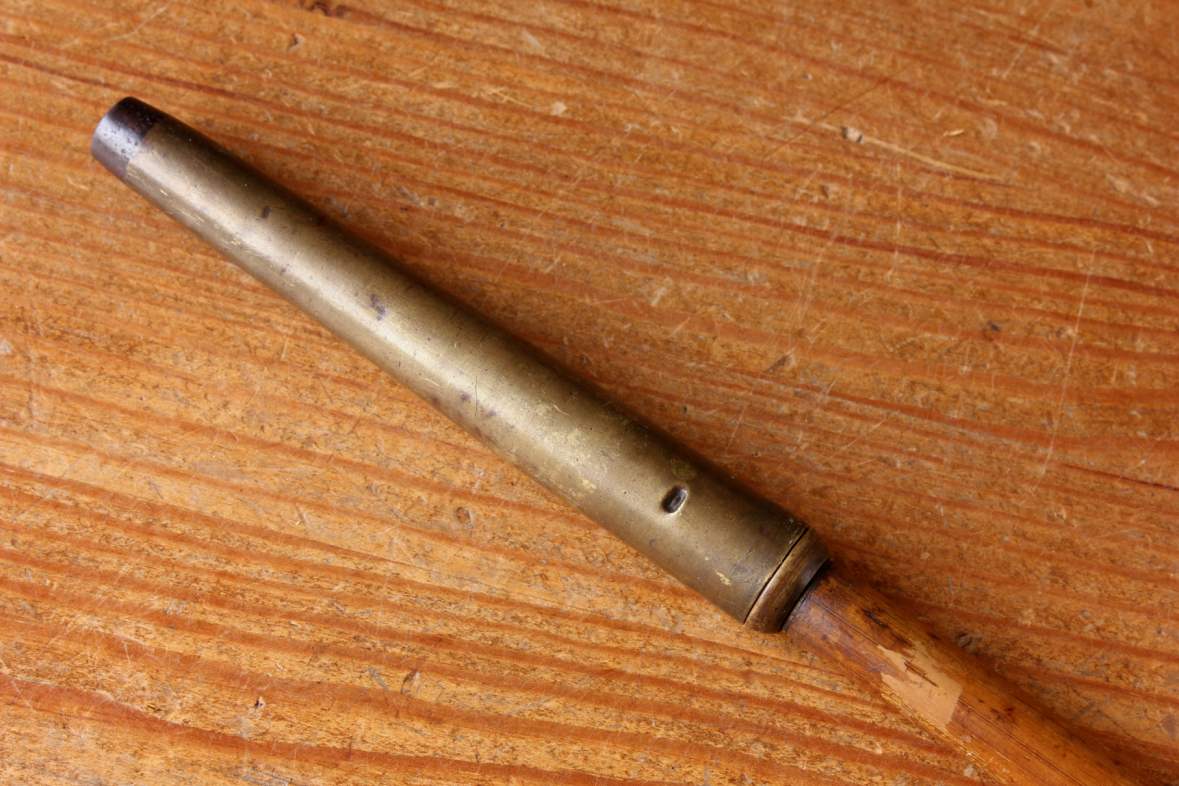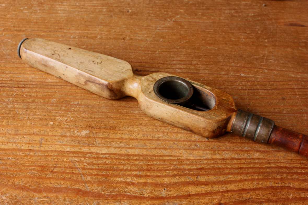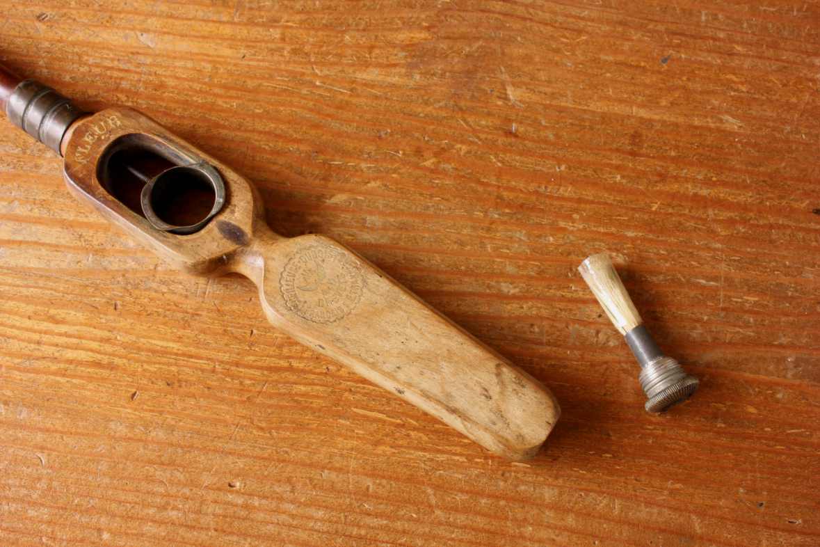 This flower / fruit picker has a fruitwood handle which is marked with Fleurs to one side and Fruit to the other. This handle is fitted with a trigger which when pressed opens and closes the scissors grips at the other end of the cane to cut and hold your required specimen from a high or hard to reach area, remove buds or can also be used to remove caterpillar nests in high places. This is also embossed with the inventor and maker's details for Adrien Dubois and the Patent mark.
