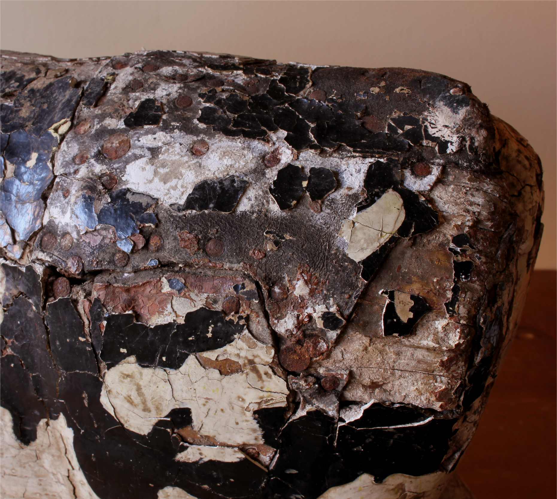 Condition: Good used original antique decorative condition with signs of wear, scuffs, chips, old worm holes, cracks, missing pieces and scratches giving a wonderful decorative look. Flaky paint. Please see pictures.
