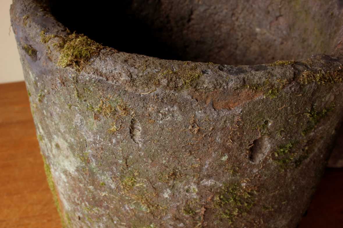 This near pair of antique / vintage foundry melting pots which originated in France are made of lava stone and one is marked to the inside with the foundry details.
