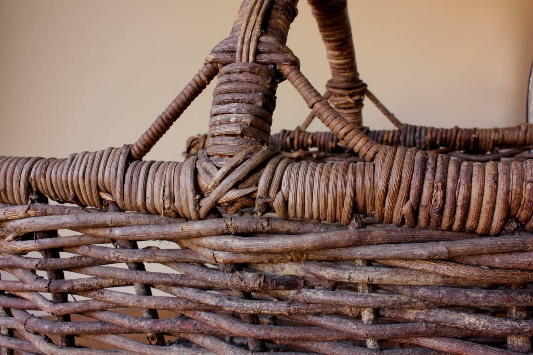 This stunning antique French log harvesting basket which would have been made by hand using locally sourced materials is a large size and has a beautiful rustic patina.