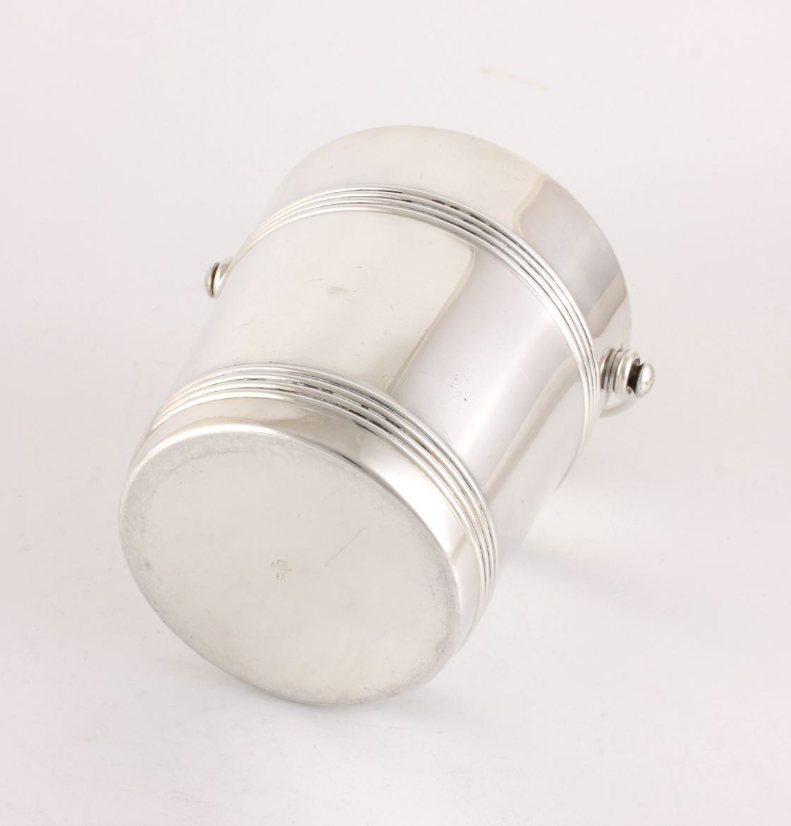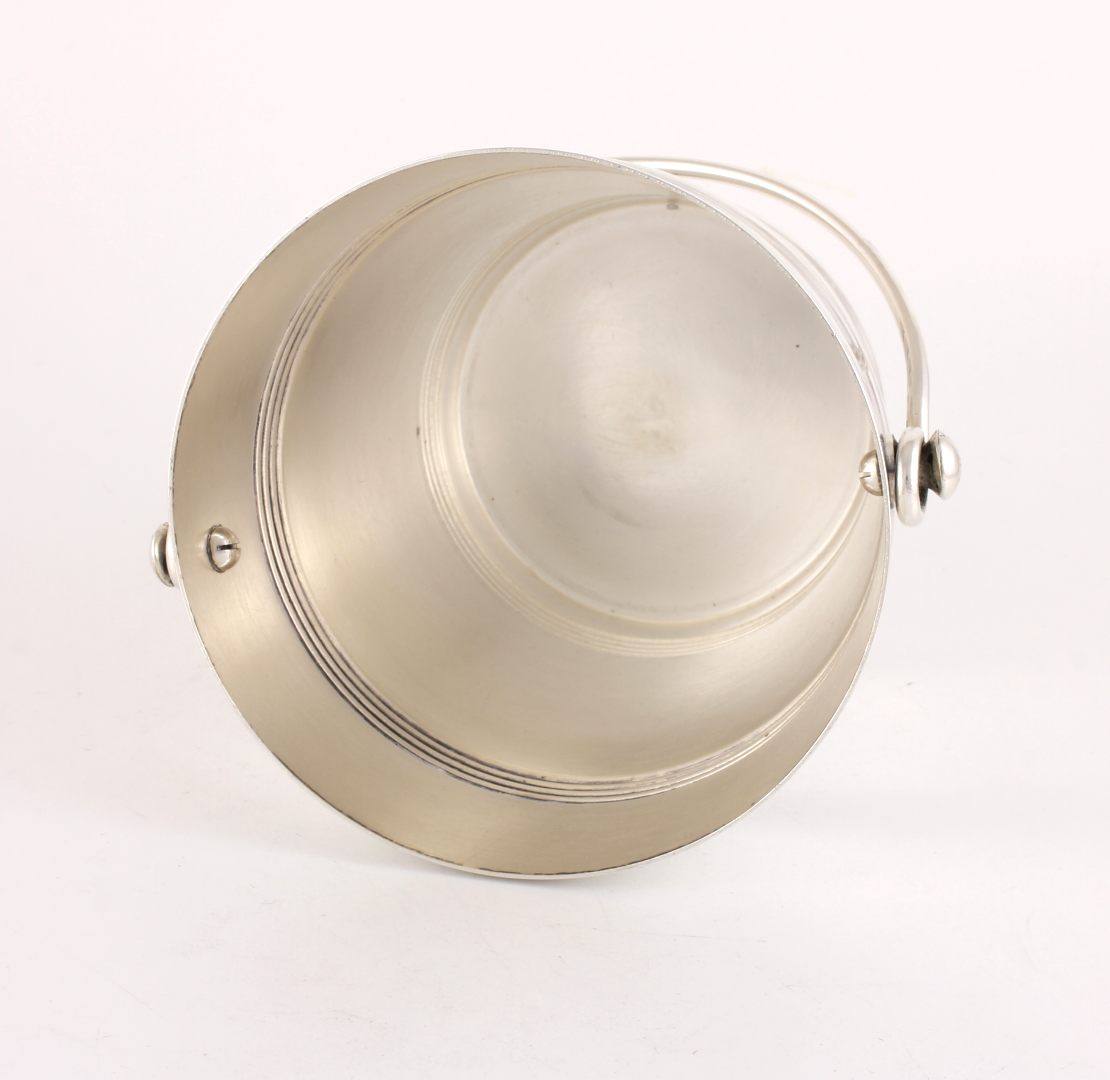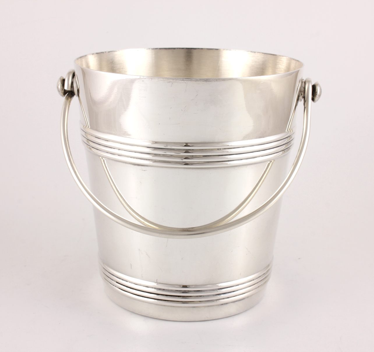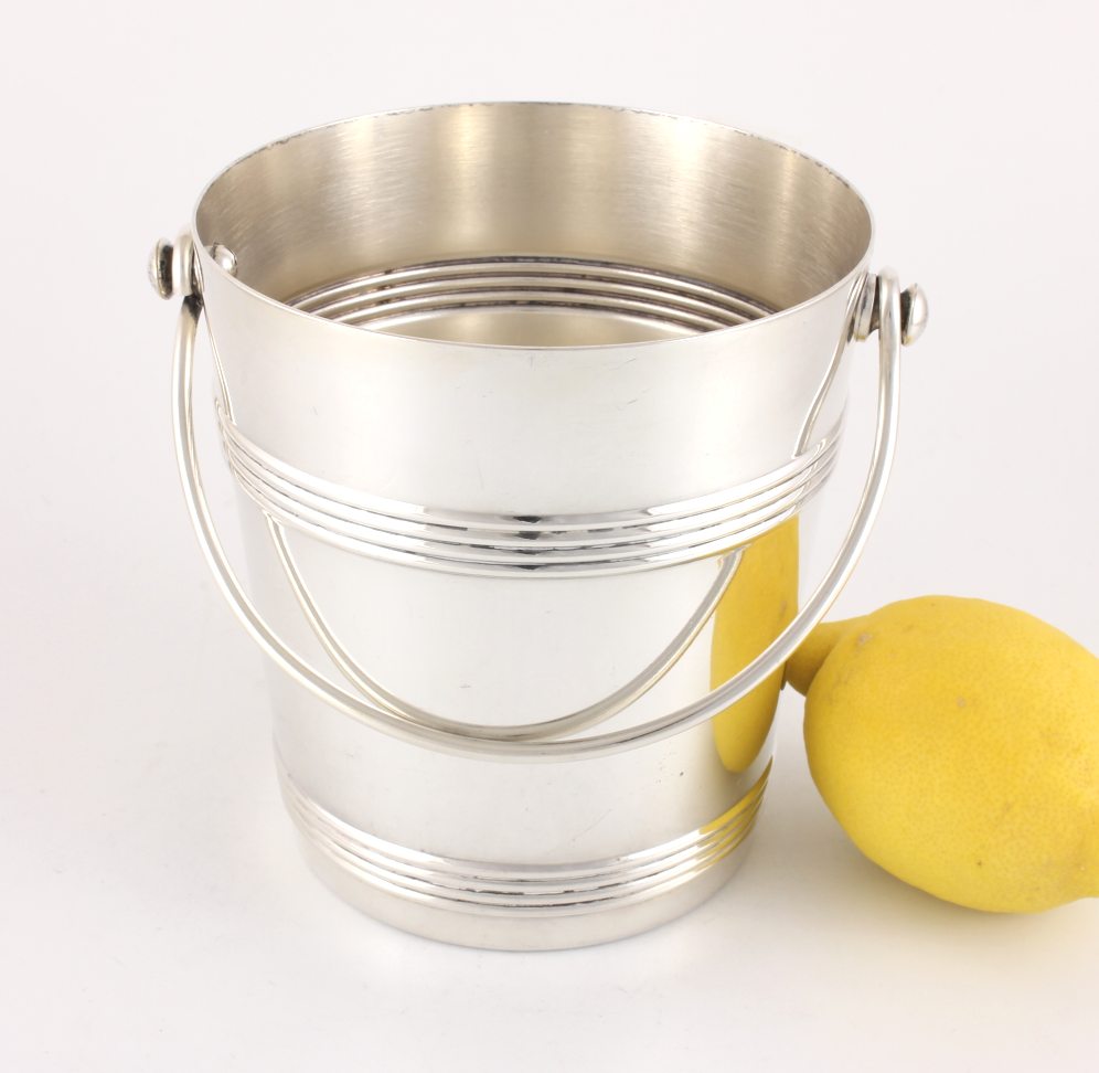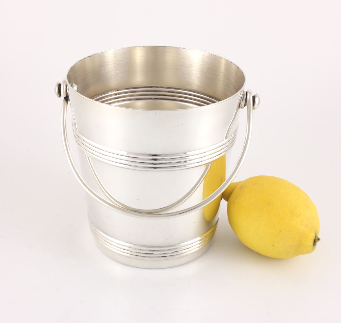 This French ice pail has a stylish ring design, a top swing handle, is a nice weight and is marked to the underside with the maker's marks.