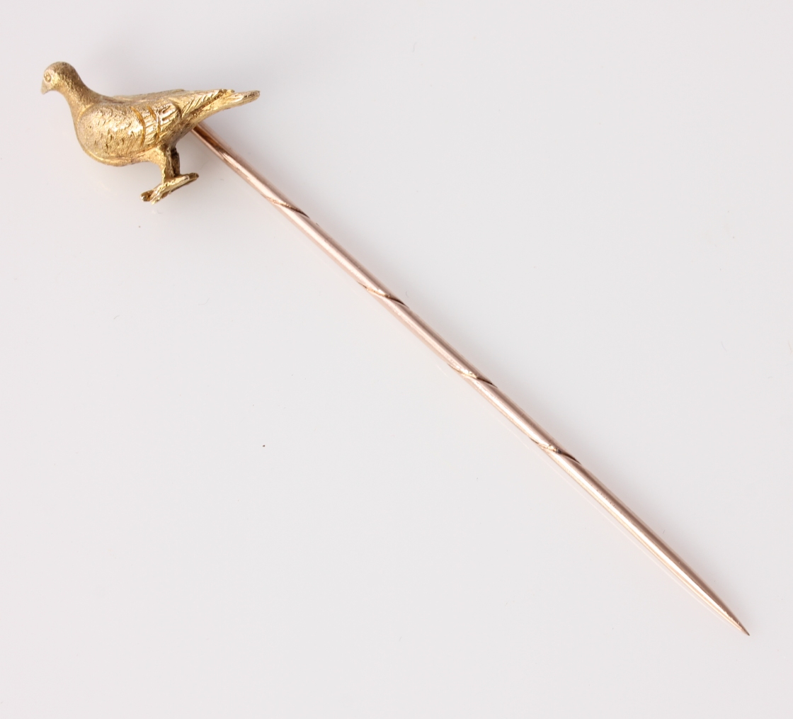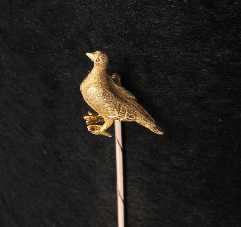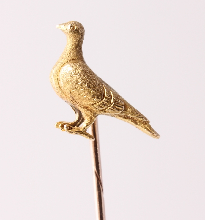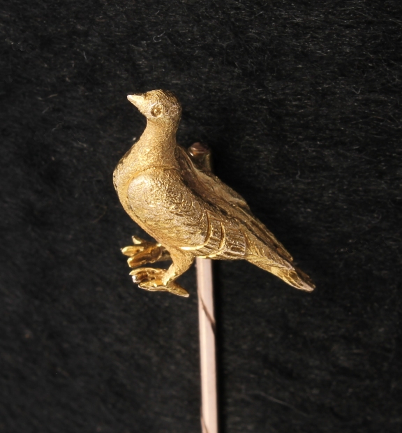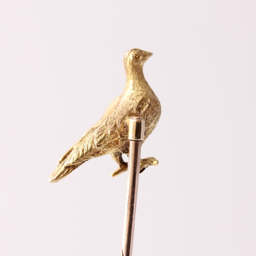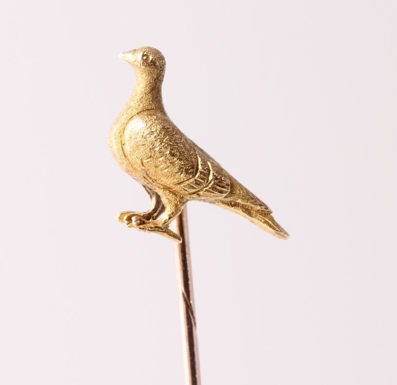 This beautiful stick pin brooch / tie pin features a handsome pigeon which has wonderful detail and is crafted in 9 ct yellow gold.