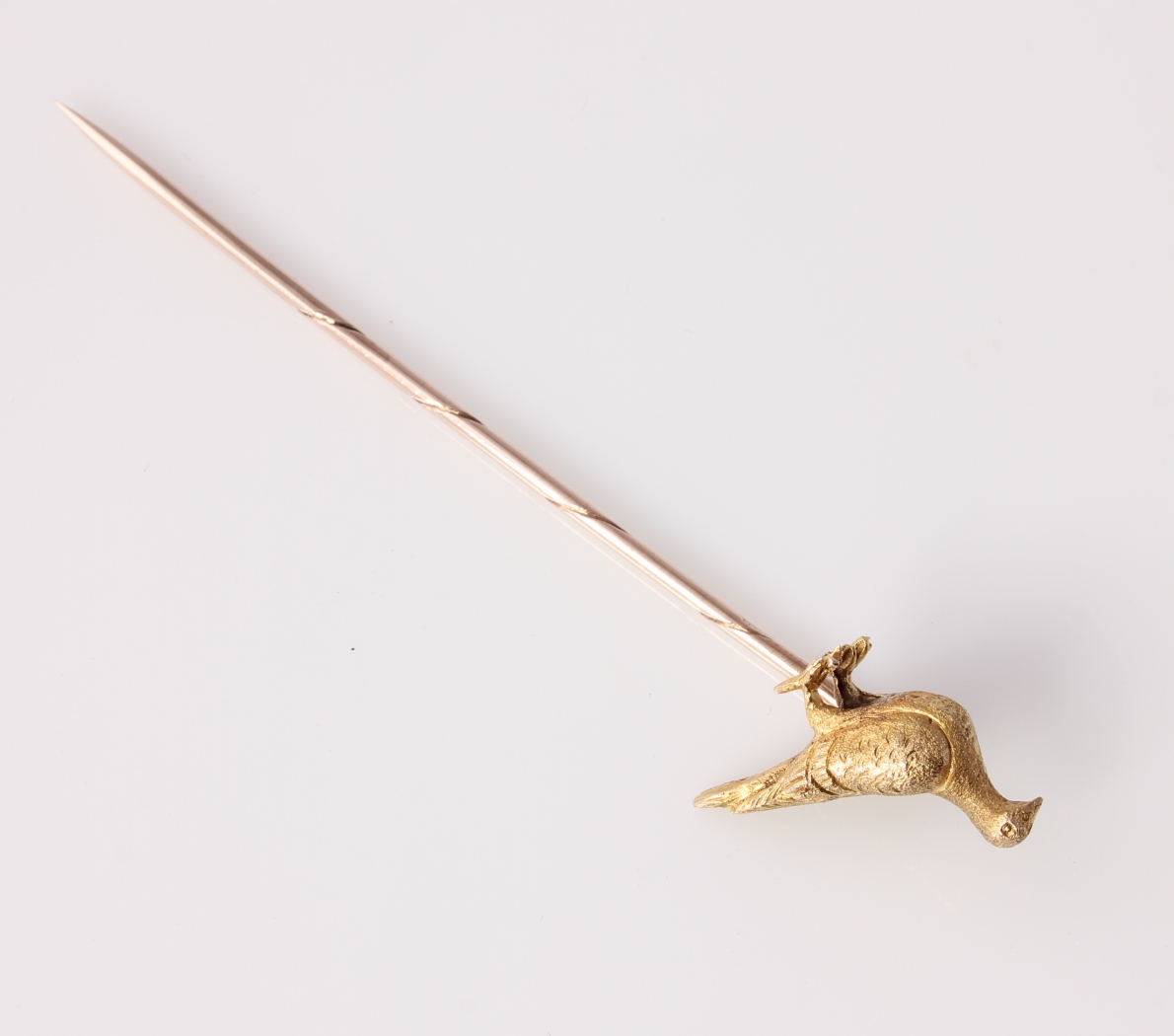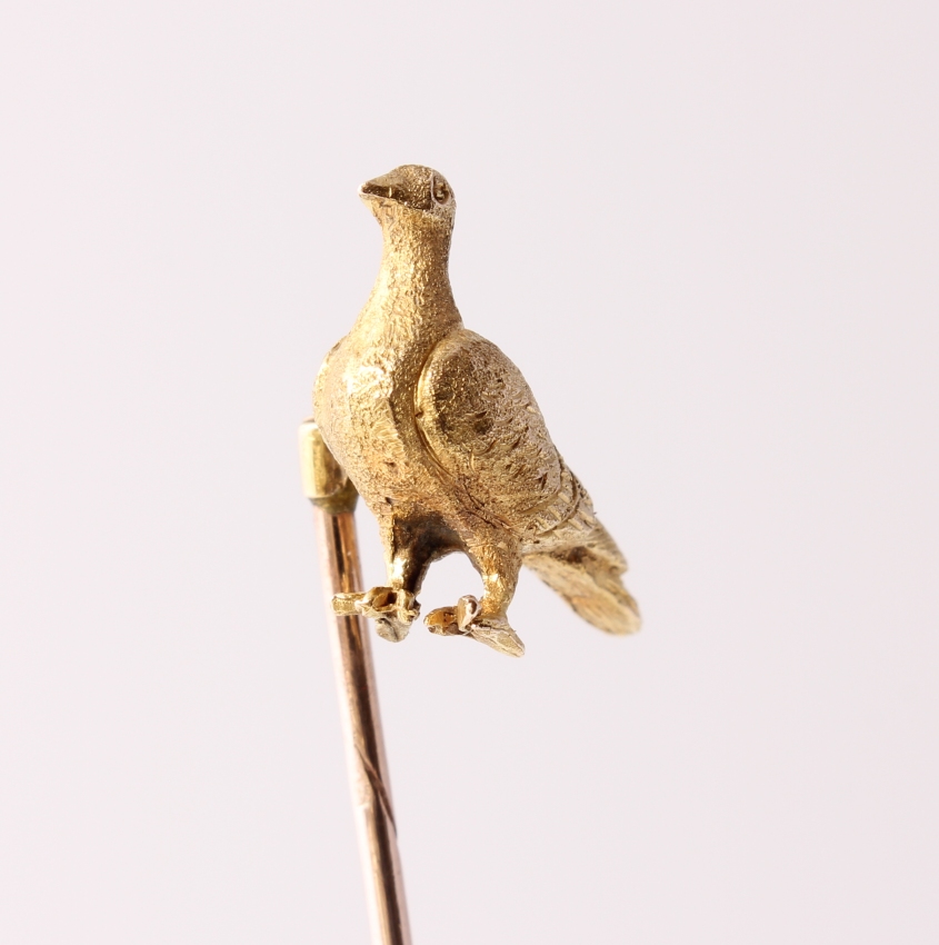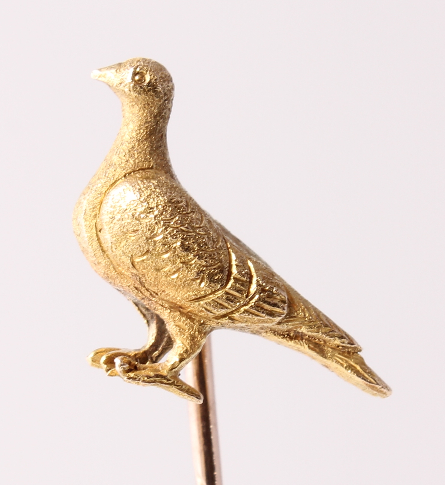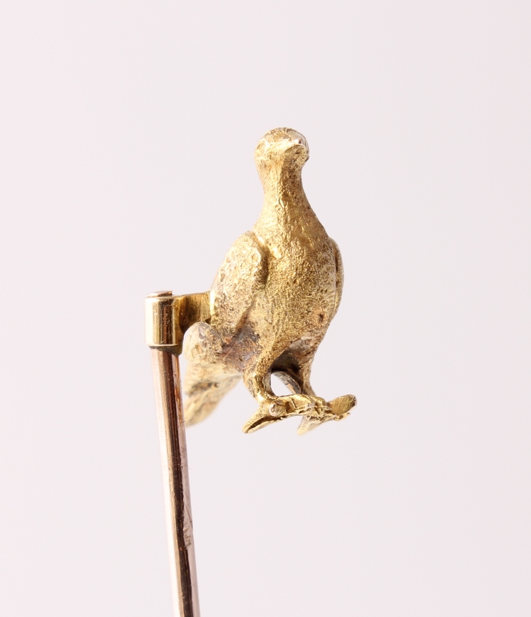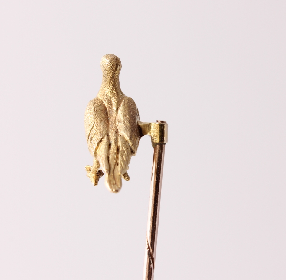 This beautiful stick pin brooch / tie pin features a handsome pigeon which has wonderful detail and is crafted in 9 ct yellow gold.