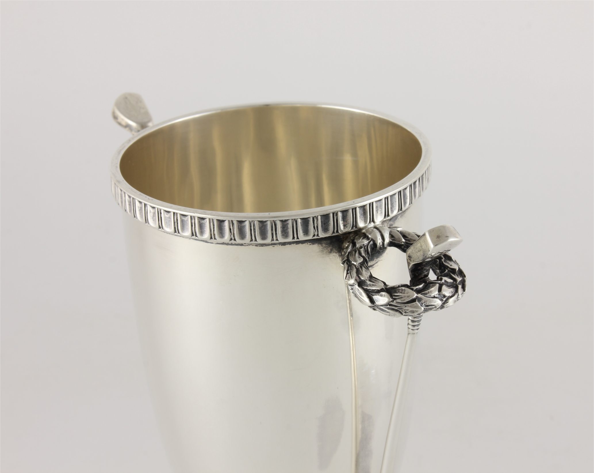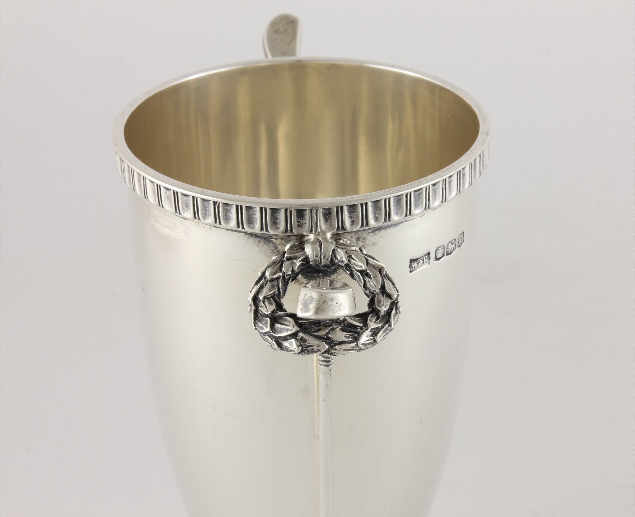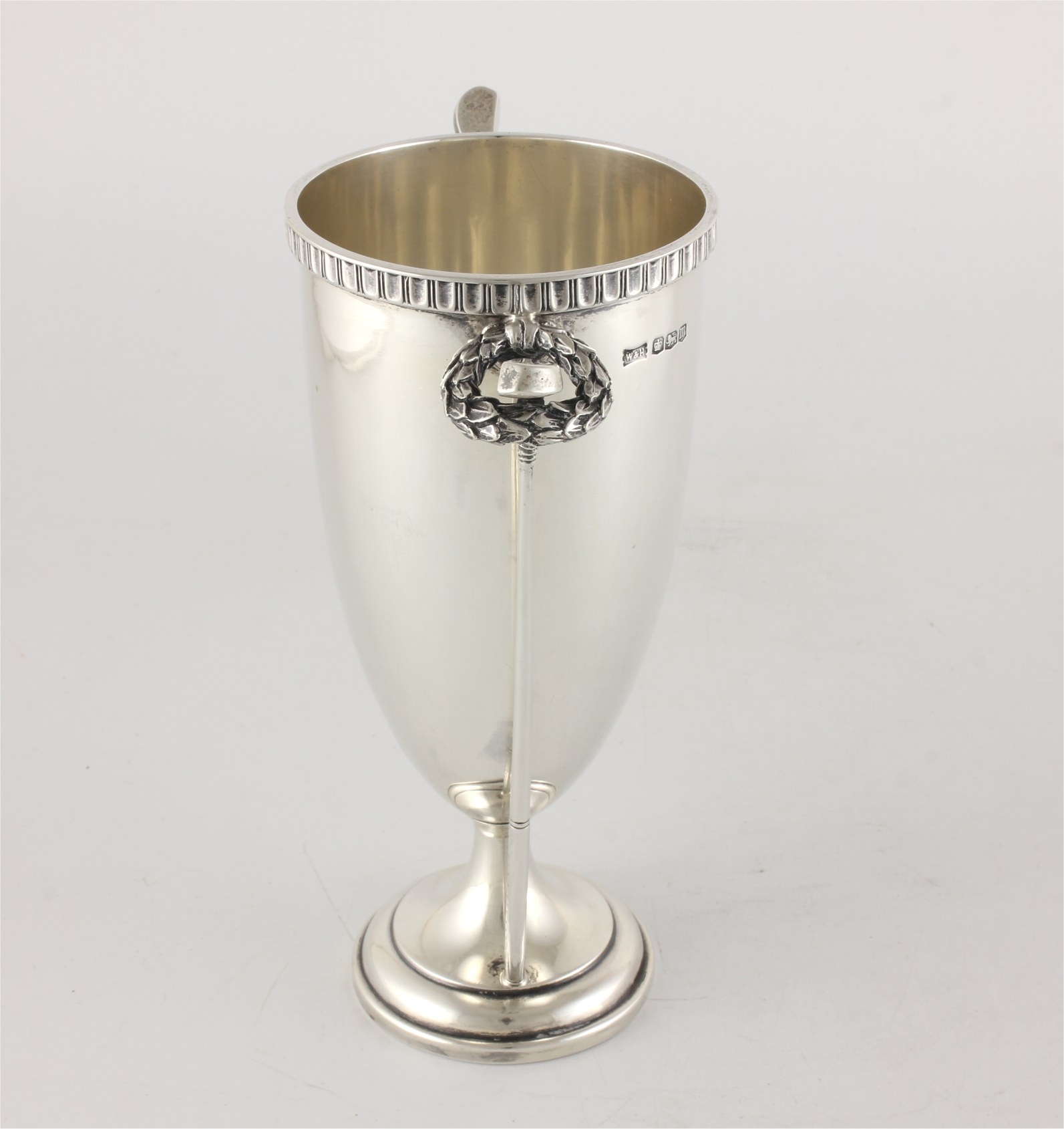 This heavy gauge silver trophy by top silversmith Walker and Hall is blank on both sides so could be engraved.