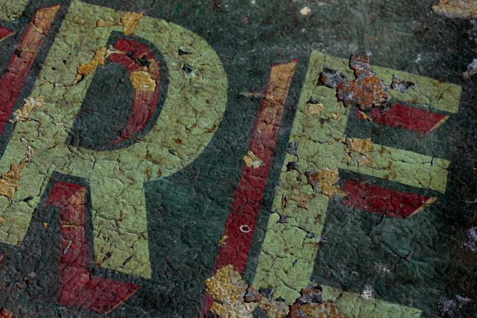 This double sided sign which would have been a French painter's trade sign has a wonderful rustic feel with flaky paint showing years of aging and wear to one of the sides and the other side having a beautiful colour and look.