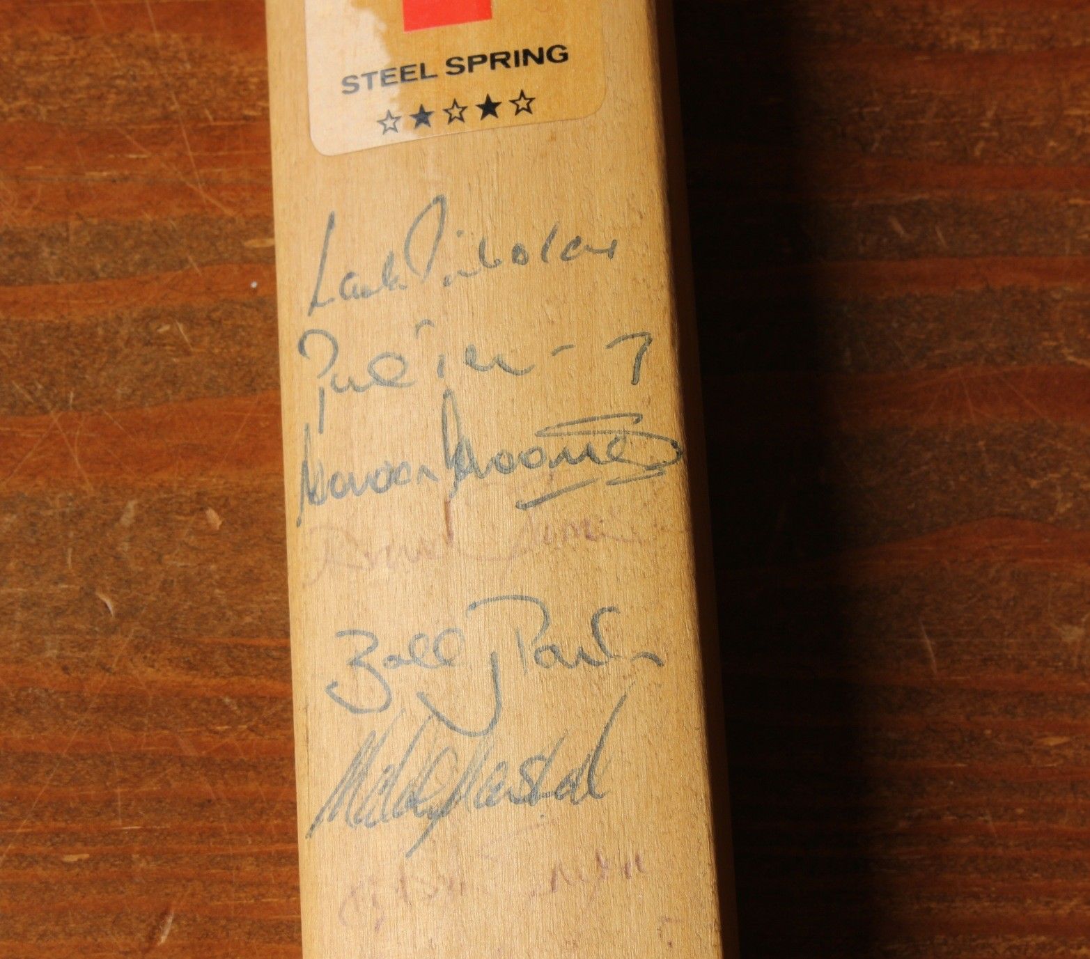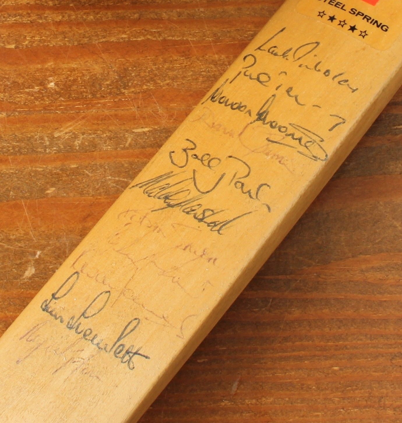This mini bat features original signatures including Mark Nicholas, Bobby Parks, Tim Tremlett and Paul-Jan Bakker plus others.