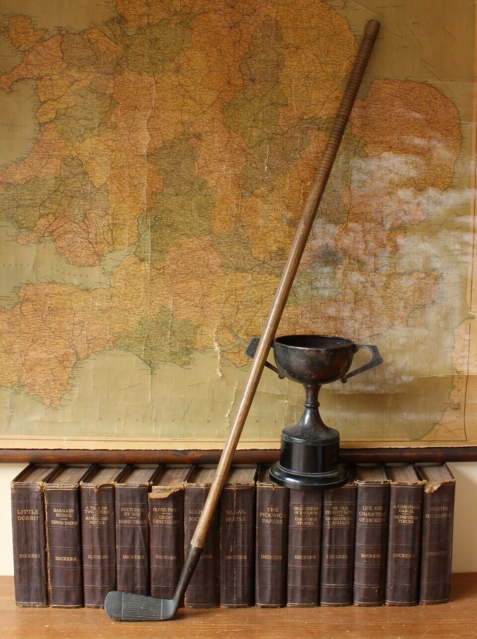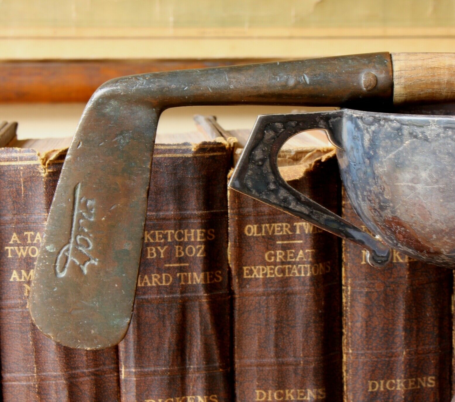 This decorative club is a nice original one from c1890 with a hickory shaft and brass head.