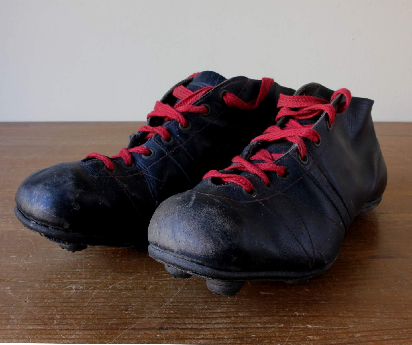 This great looking pair of football boots which date from the 1950's are made of leather and have leather soles with nailed on leather studs.
