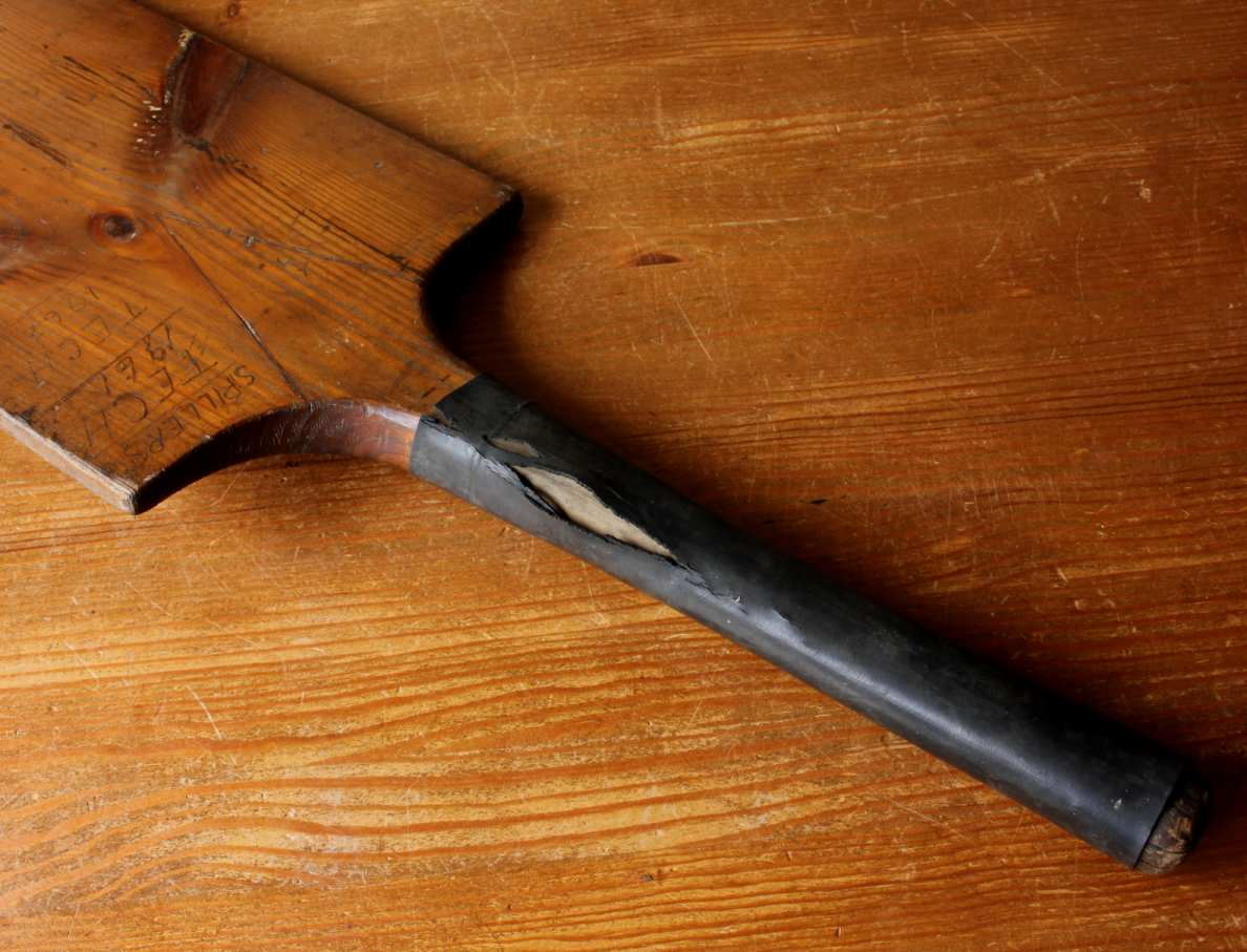 This large, heavy and extra wide cricket bat which is made of pine with a rubber handle has been handmade of large proportions in the 1960's and is a nice unusual decorative item of cricket memorabilia.