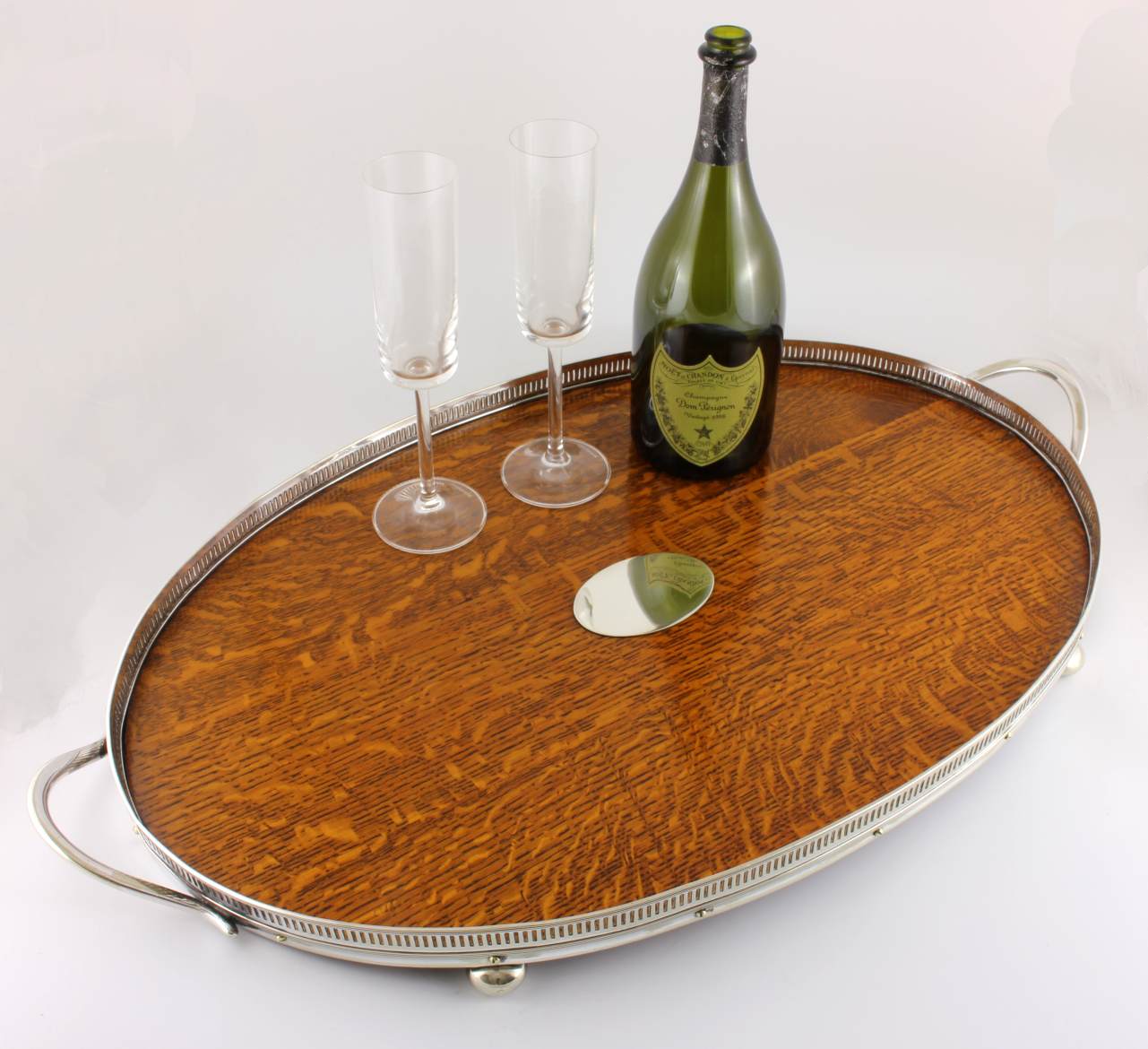 Material: Oak. Silver plate.