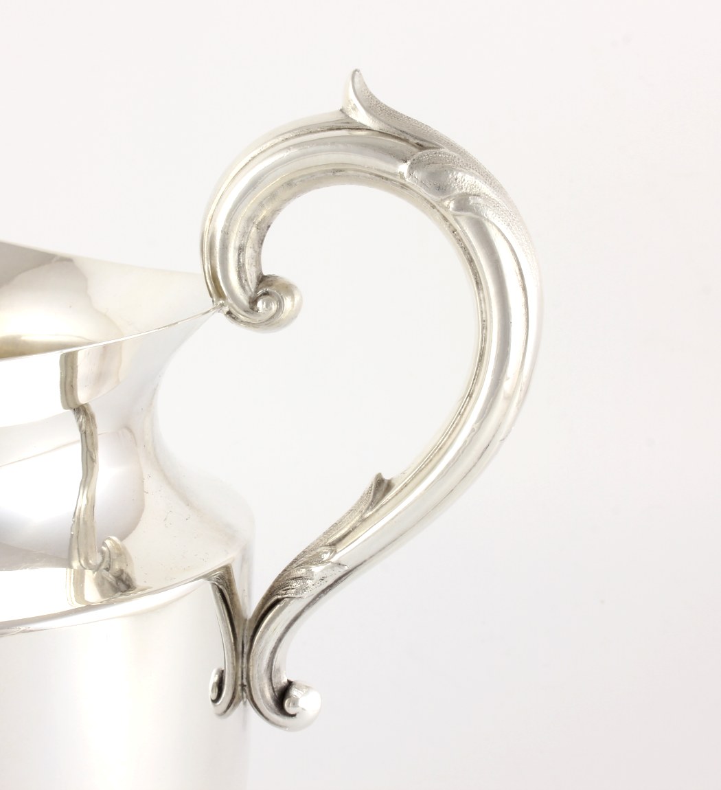 This handsome quality pitcher is a good size & weight, has a large textured handle, ice catcher, pouring spout and is marked to the underside with the maker's mark.