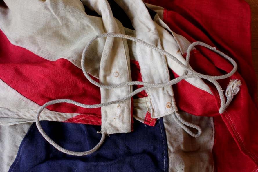 This original vintage Union Jack Flag which has each segment individually sewn is well made from a quality linen, is a very large size at 10ft 10 ins in length, 5 ft 3 ins wide, comes with it's halyard rope and dates from the mid 20th century.