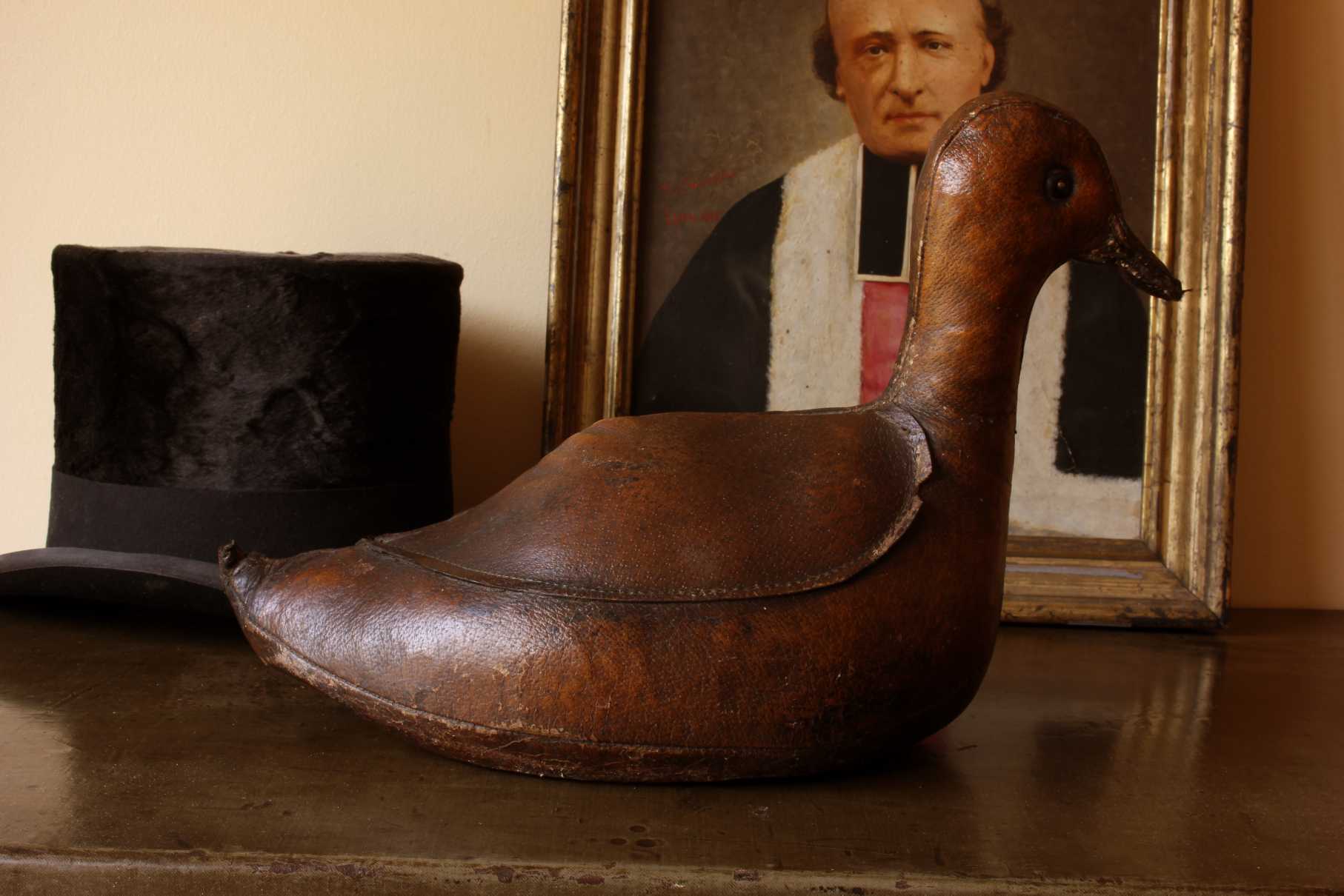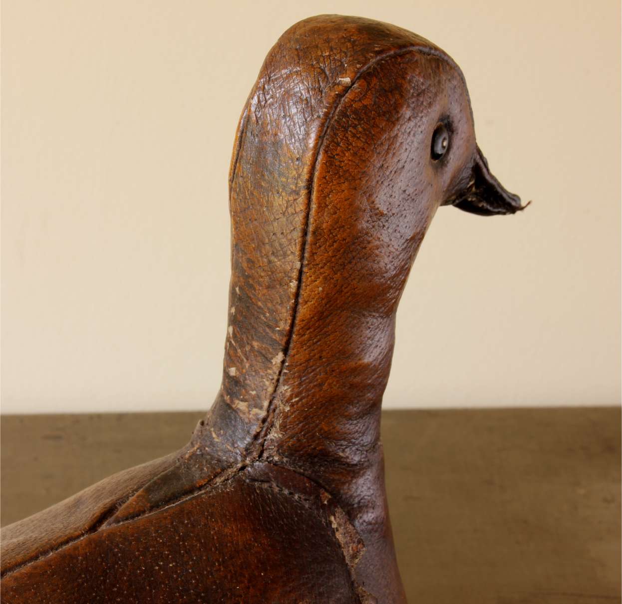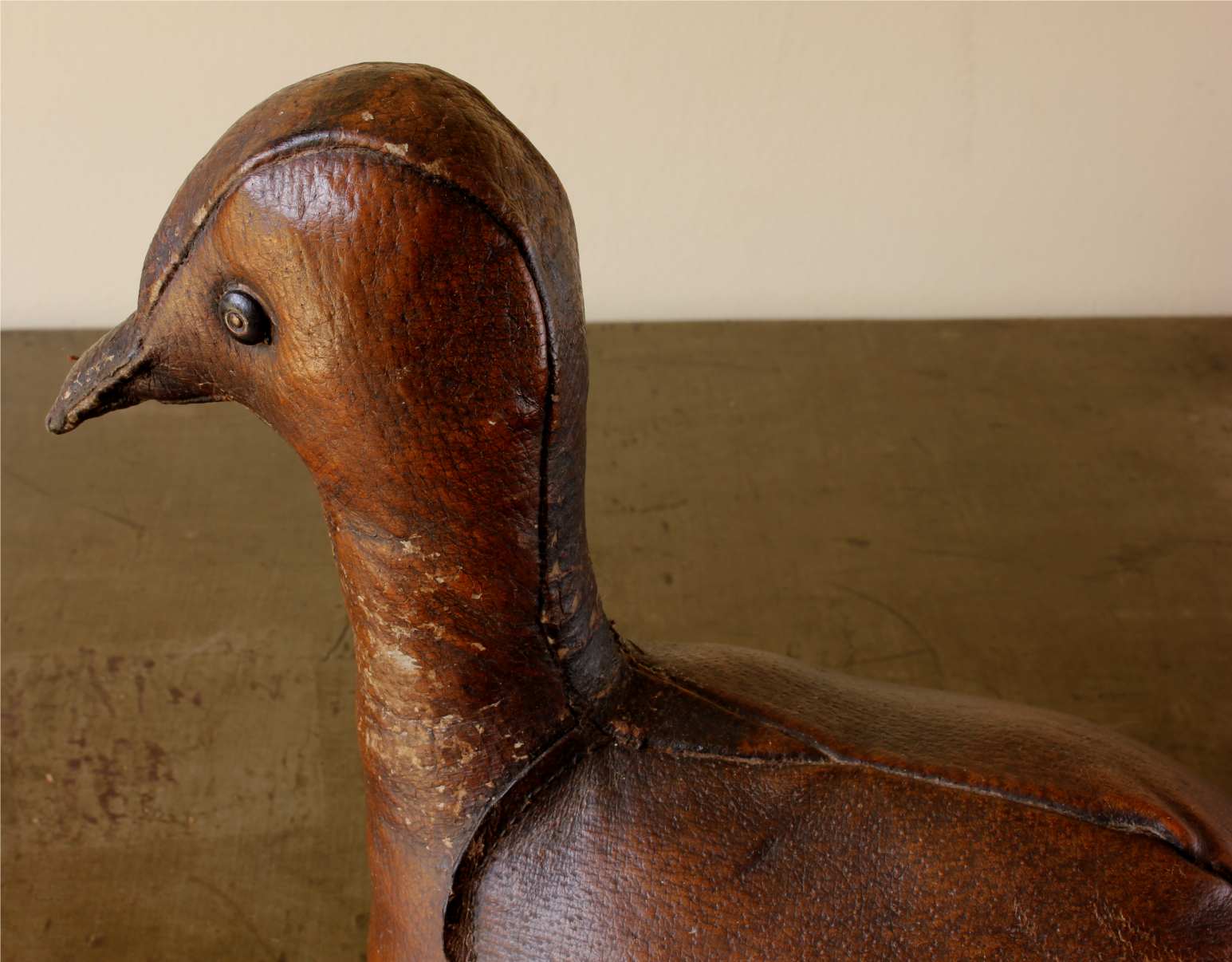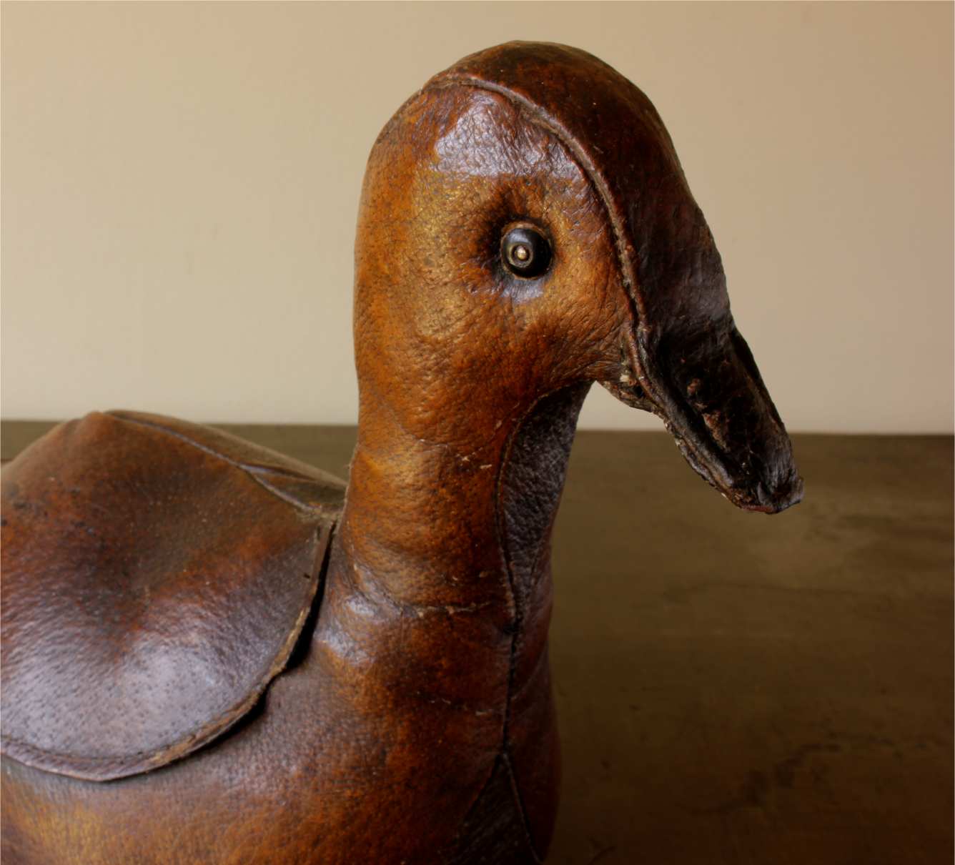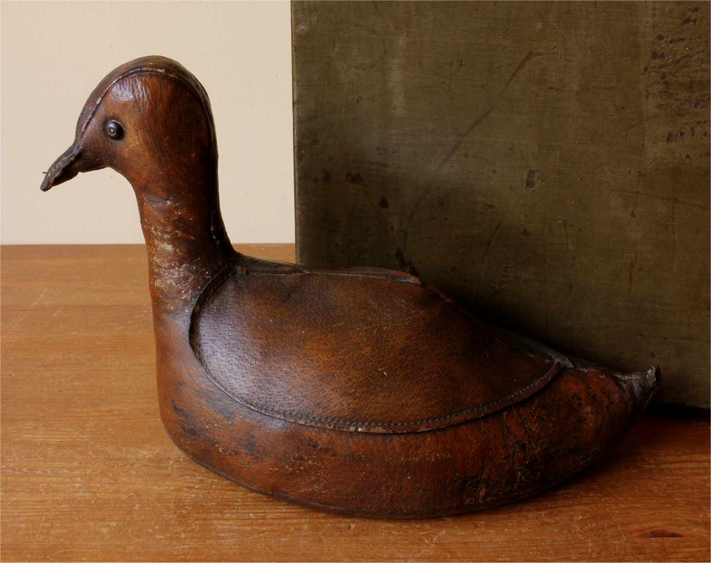 This handsome vintage duck doorstop which dates from c1950 was designed by Dimitri Omersa for Abercrombie and Fitch and is made of leather.