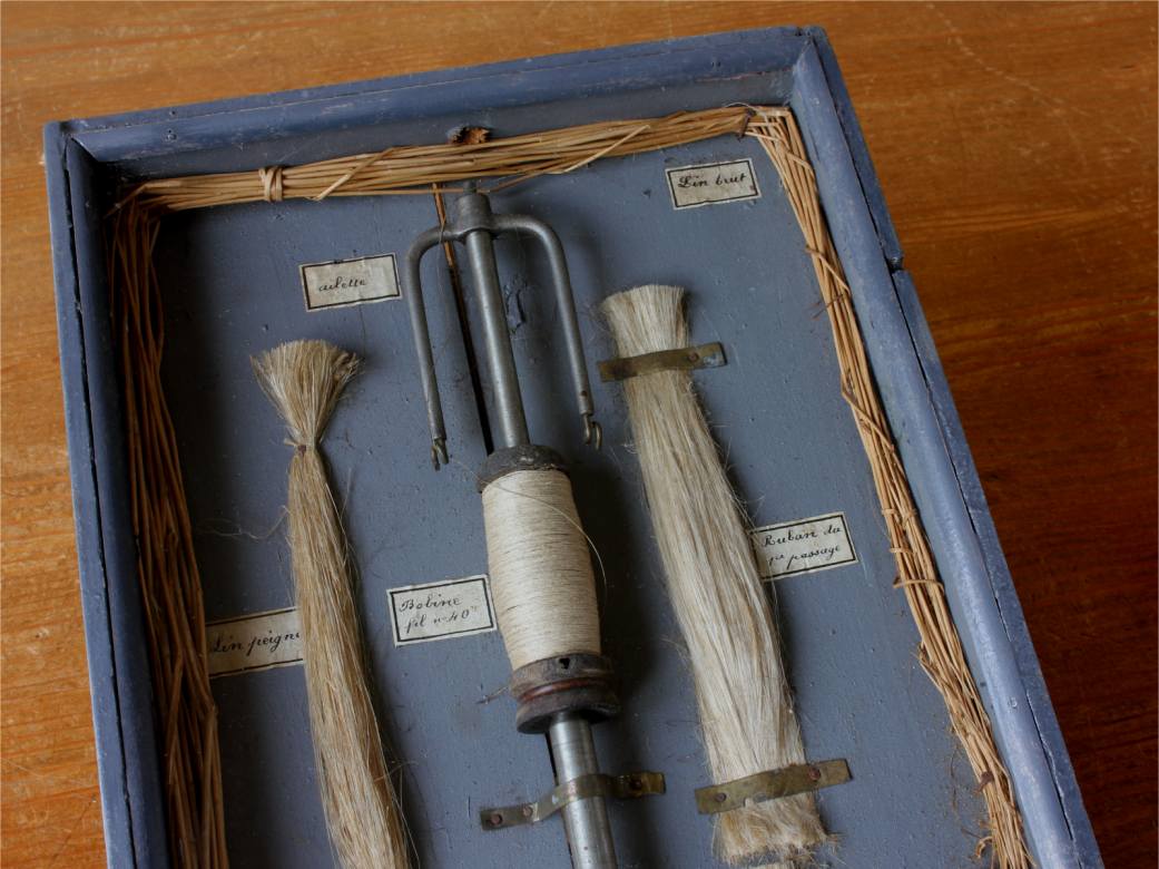 This decorative diorama which dates from the first half of the 20th century originates from France and shows the different stages of the process of making linen thread from flax.