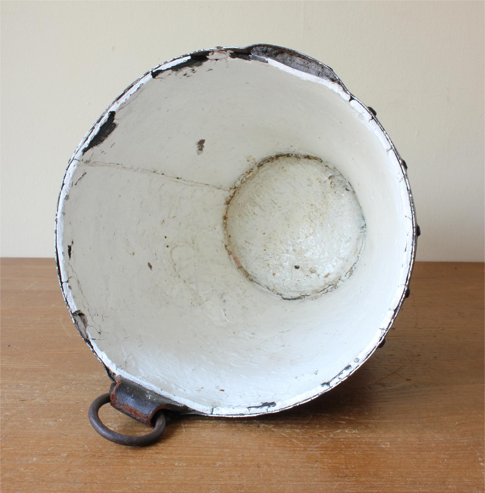 Condition: Good antique condition with age related wear, scuffs, scrapes, cracks and all over wear leaving a wonderful patina. No holes. No handle. Inside has been painted white. Please see pictures.