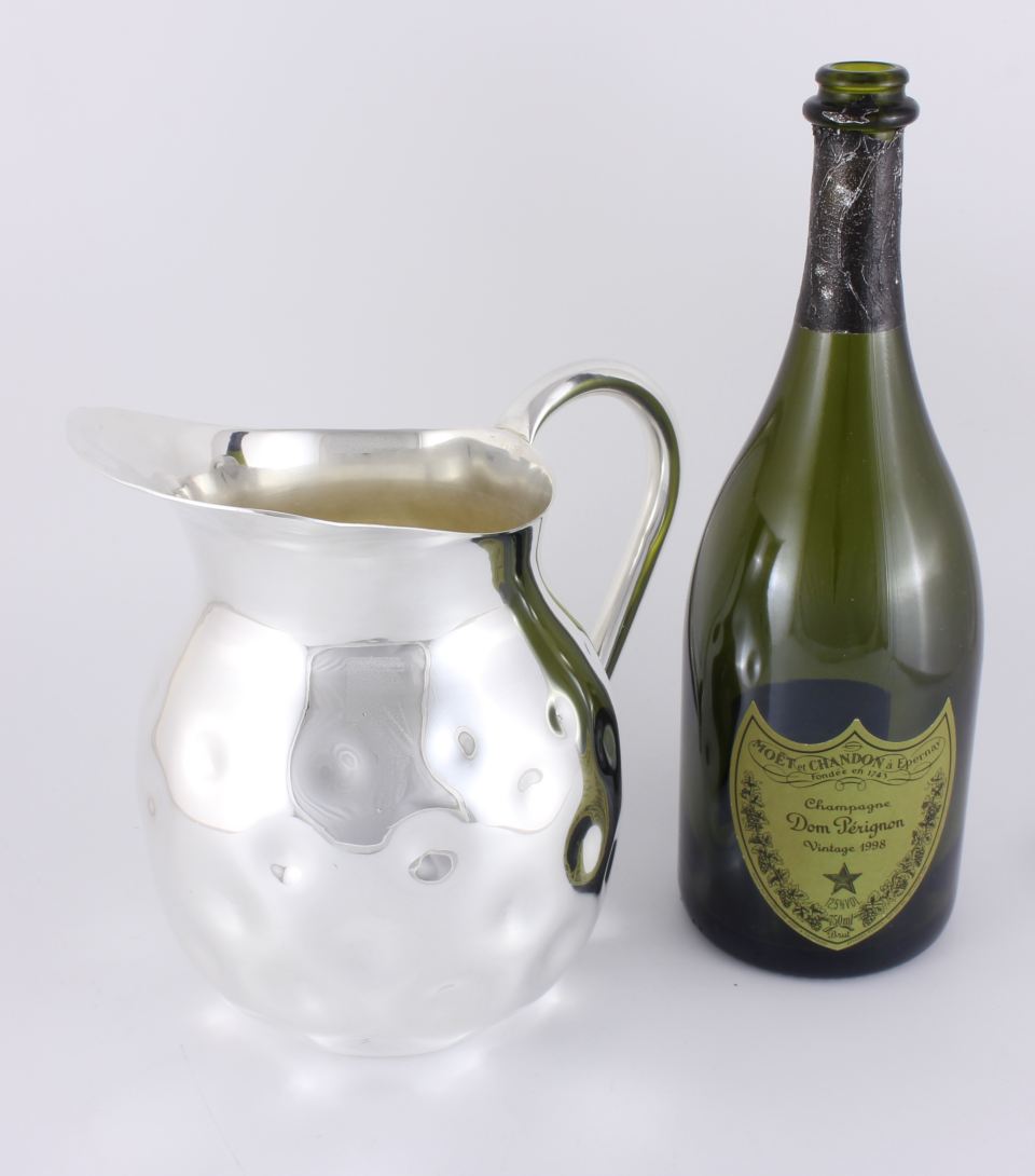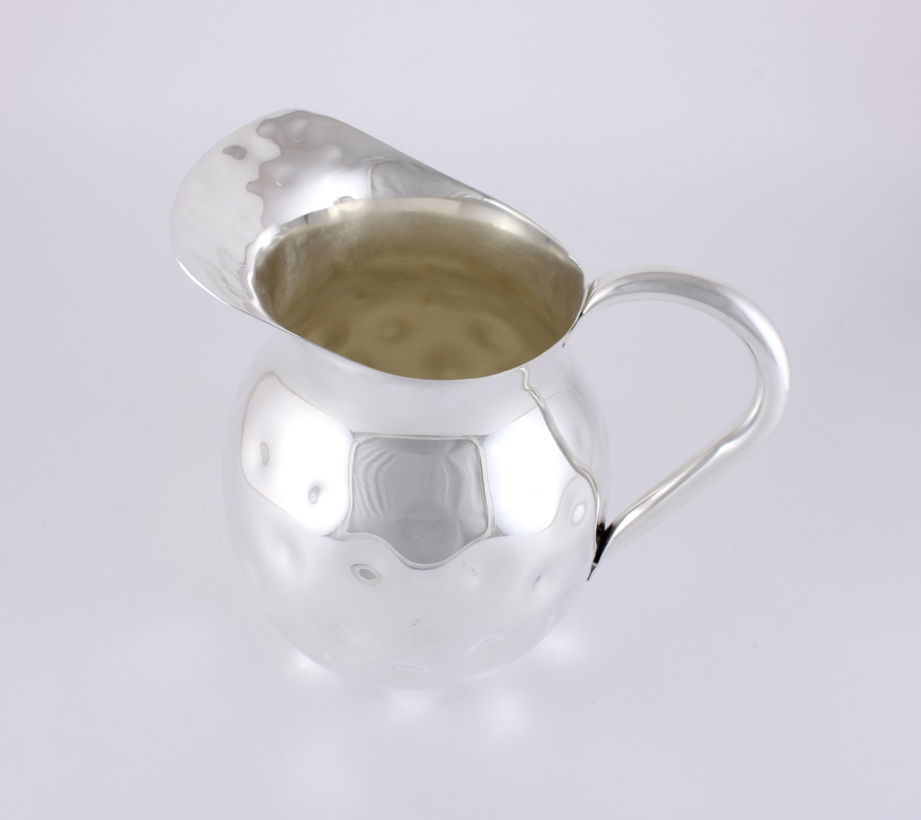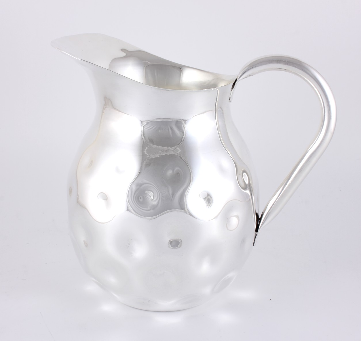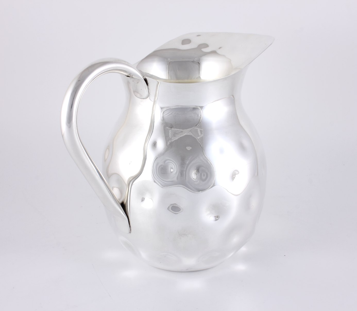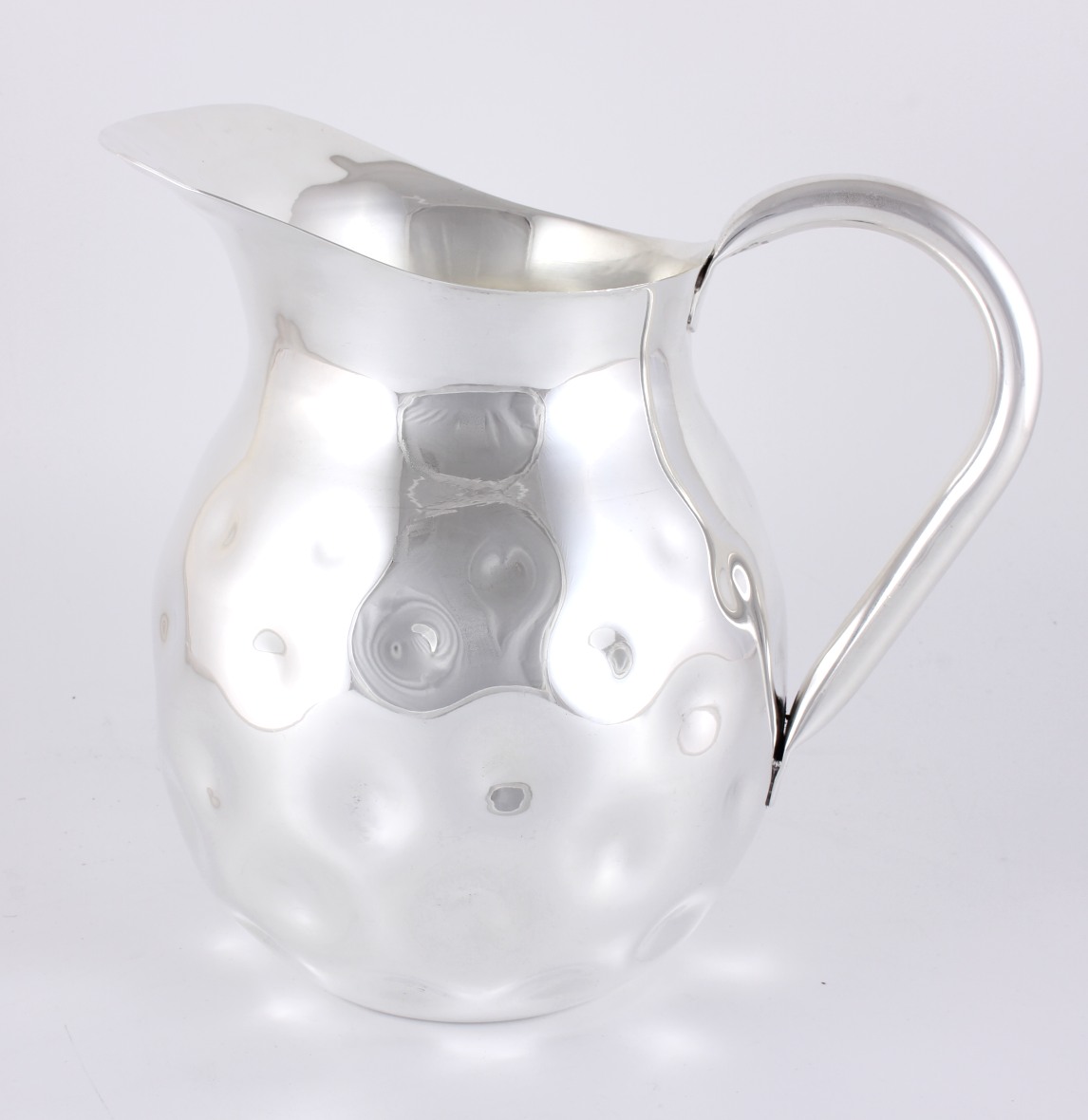 This handsome pitcher is a good size & weight, has a beautiful dimple decoration to the body, large side handle and is marked to the underside with the maker's mark.