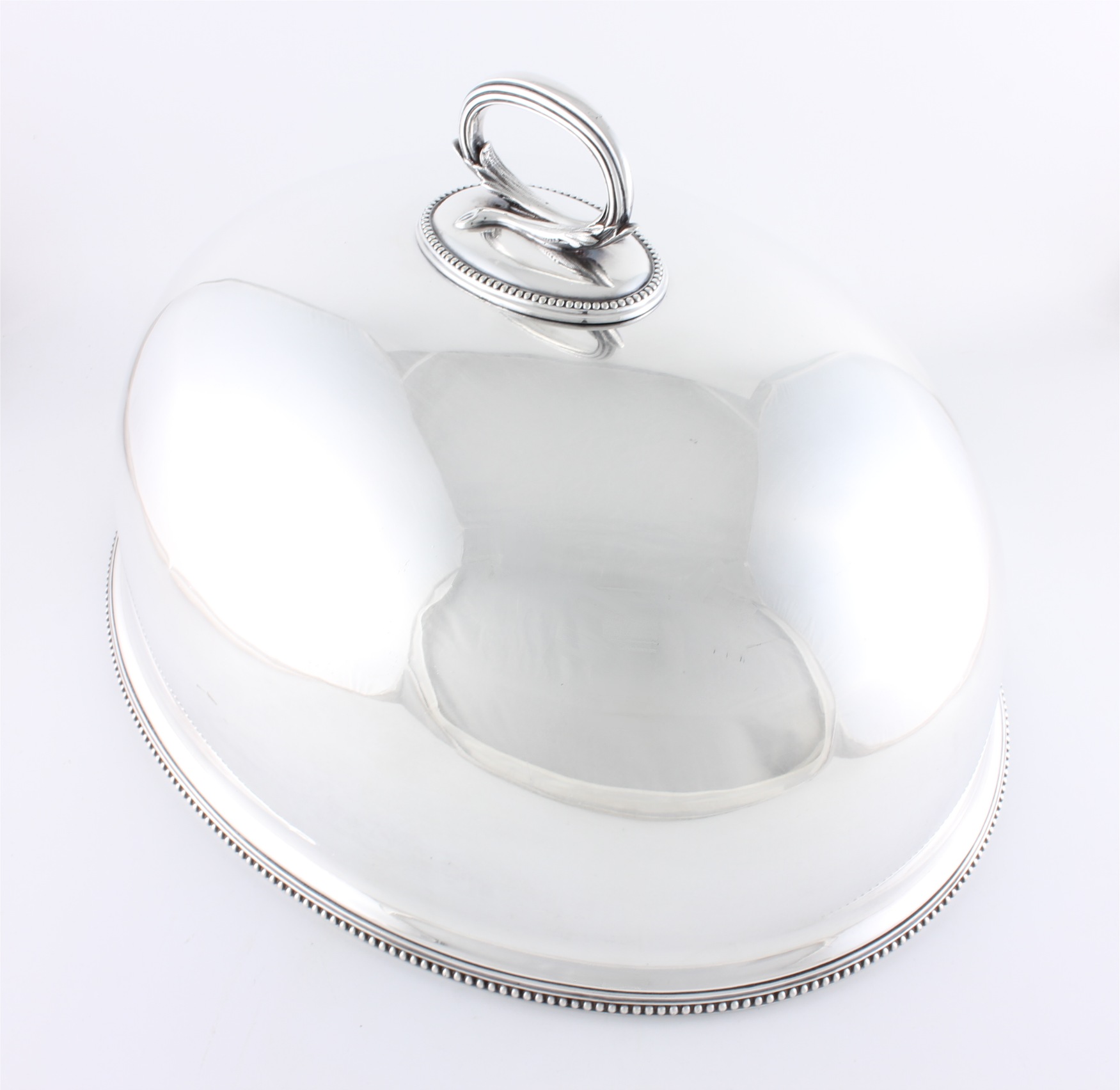 This fine quality antique meat dome which has a fabulous look with beaded edging decoration to the bottom rim and lifting handle is a heavy gauge and is the perfect size for covering your large Sunday roast or Christmas lunch.