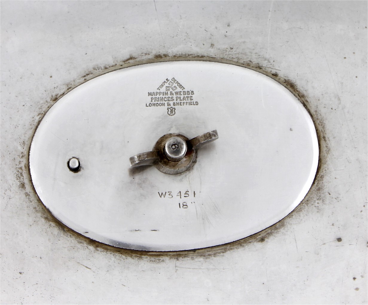 Marked: Mappin & Webb's Prince's Plate. Triple deposit. London & Sheffield. Date letter F. W3451. 18".