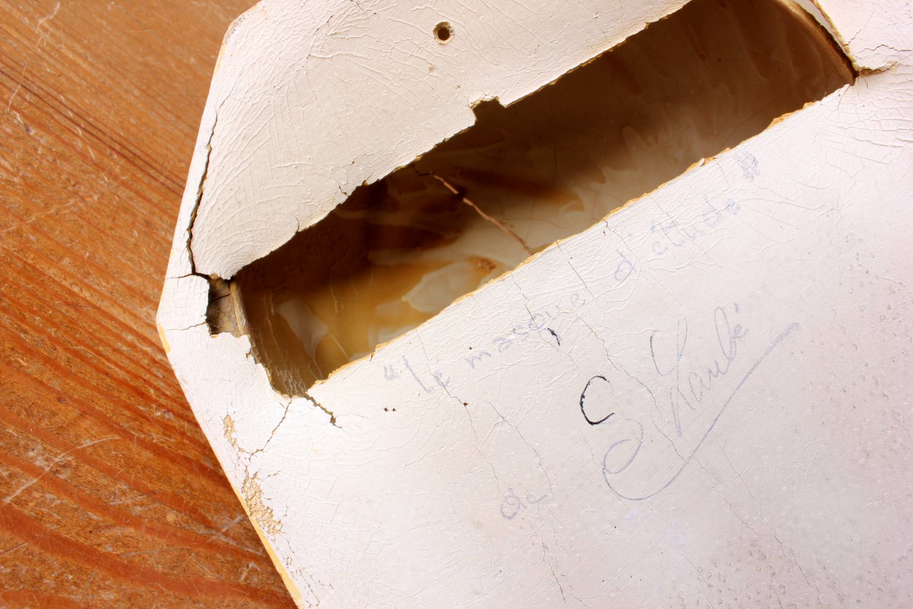 Marks: Signed to reverse with: Le Masque d'etude de S Laube and stamped with Masque et Main de etude de Simone Laube. 33 Rue Claude-Lorrain, Paris.
